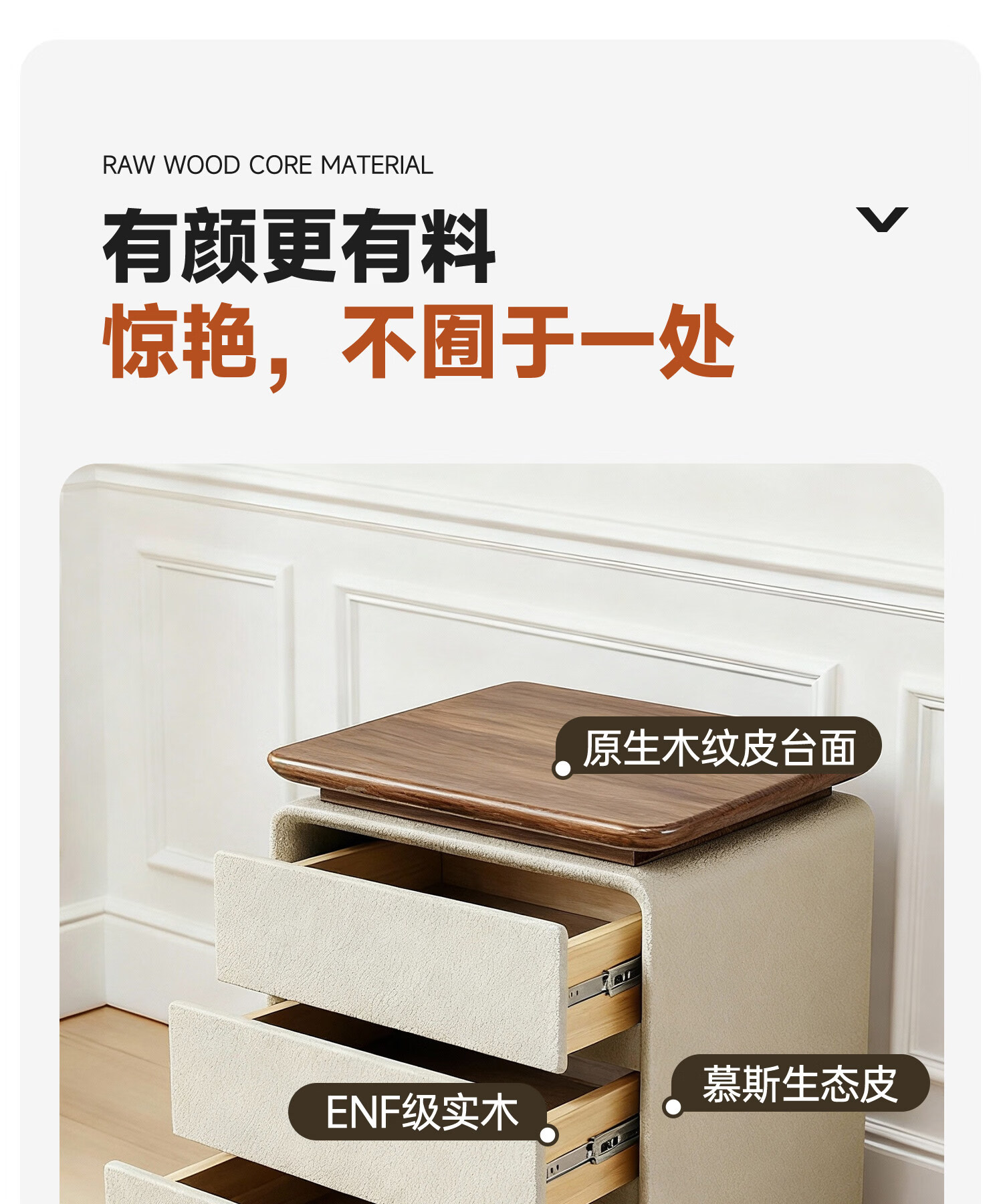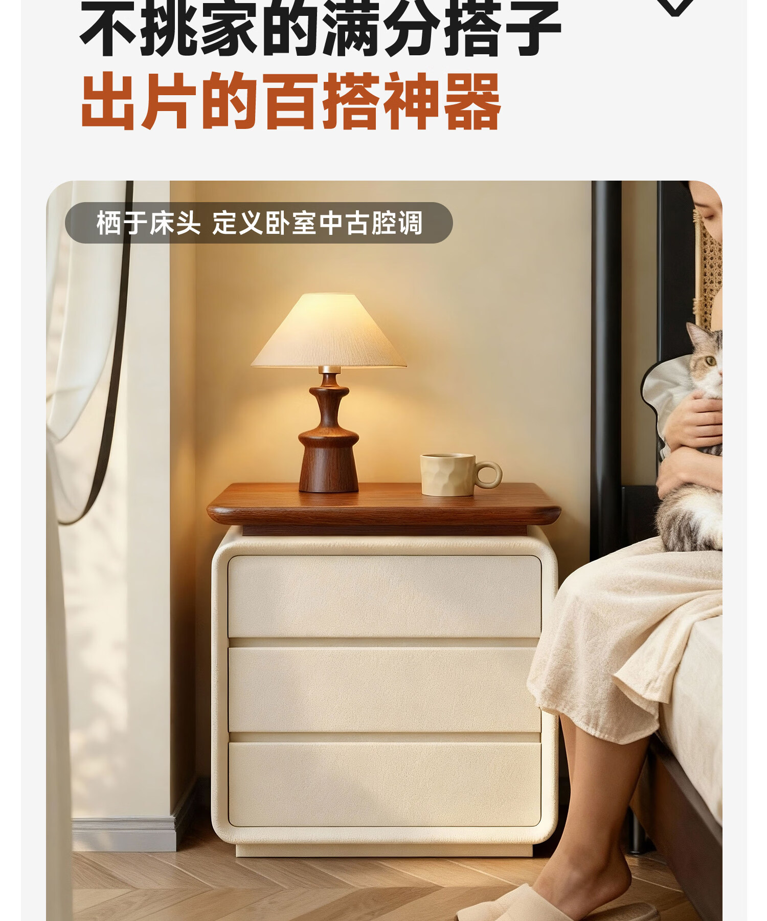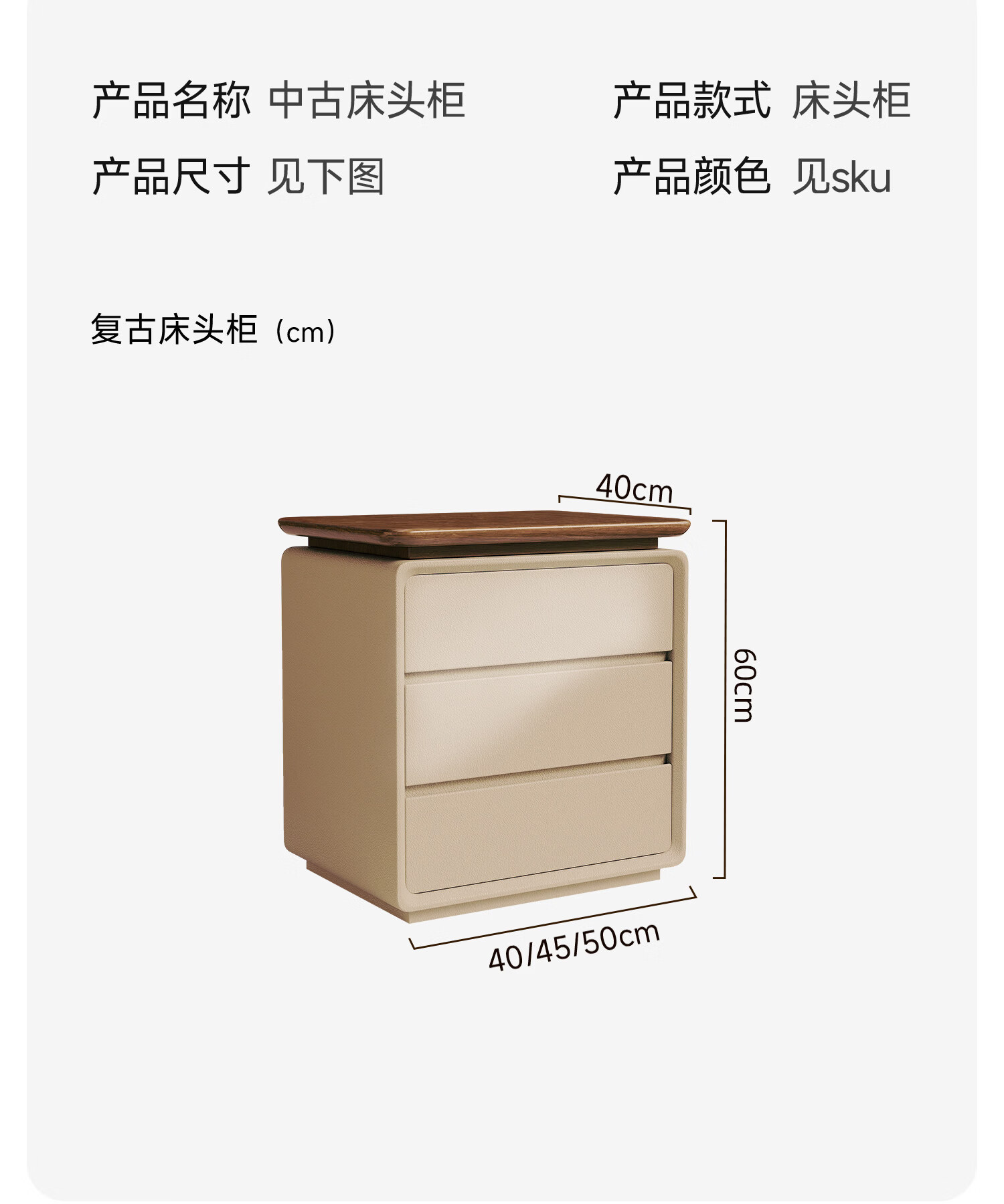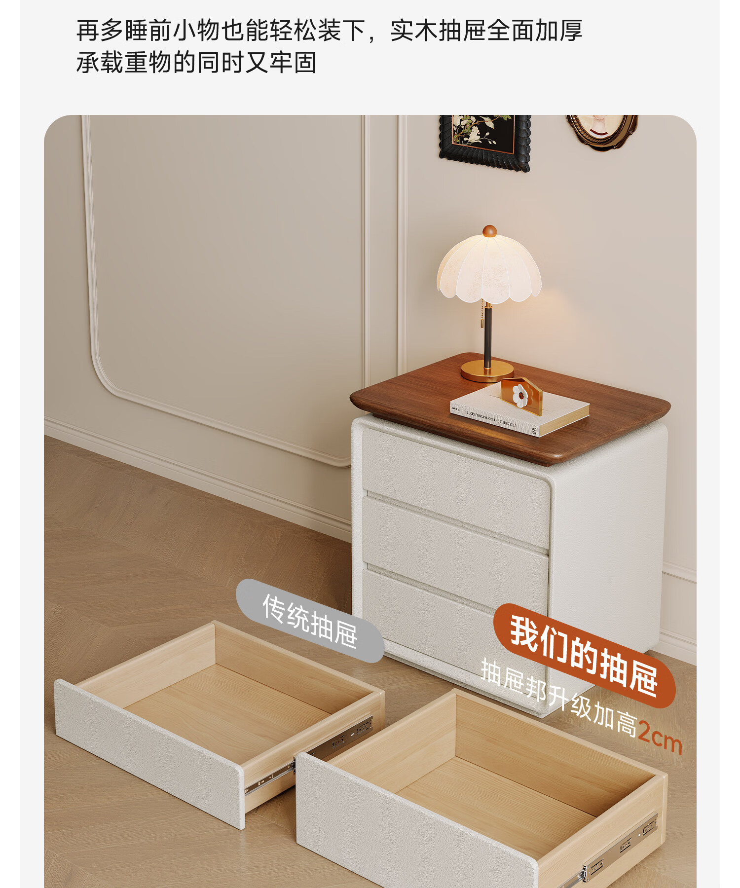 耐禾实木床头柜家用卧室2025新款小型中古奶油风斗柜床边置物收纳柜子 胡桃色台面-米白色 长50x宽40x高60cm全实木