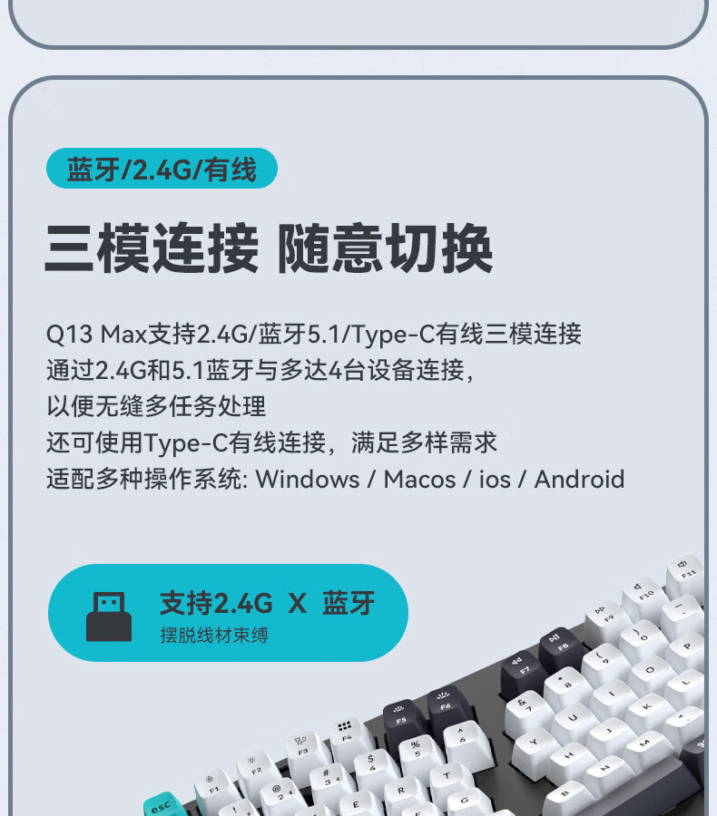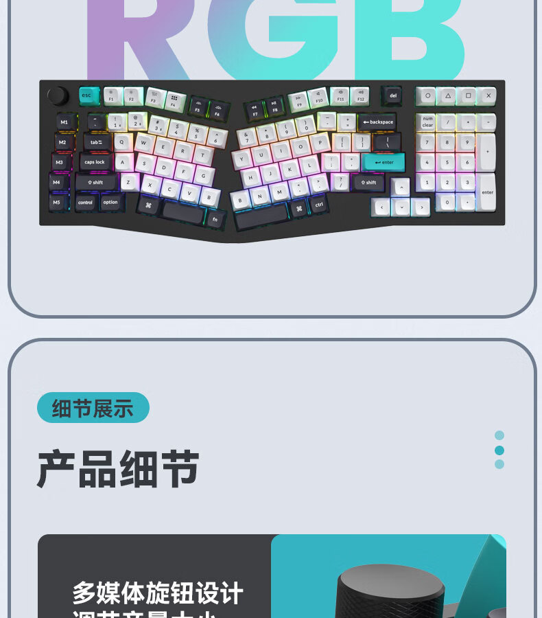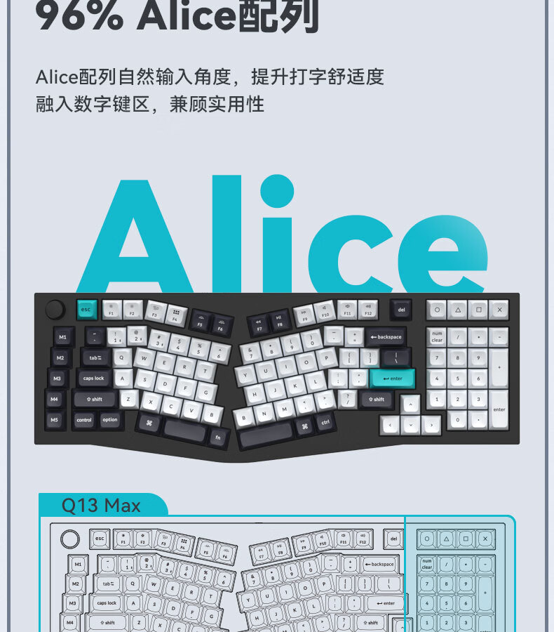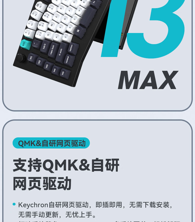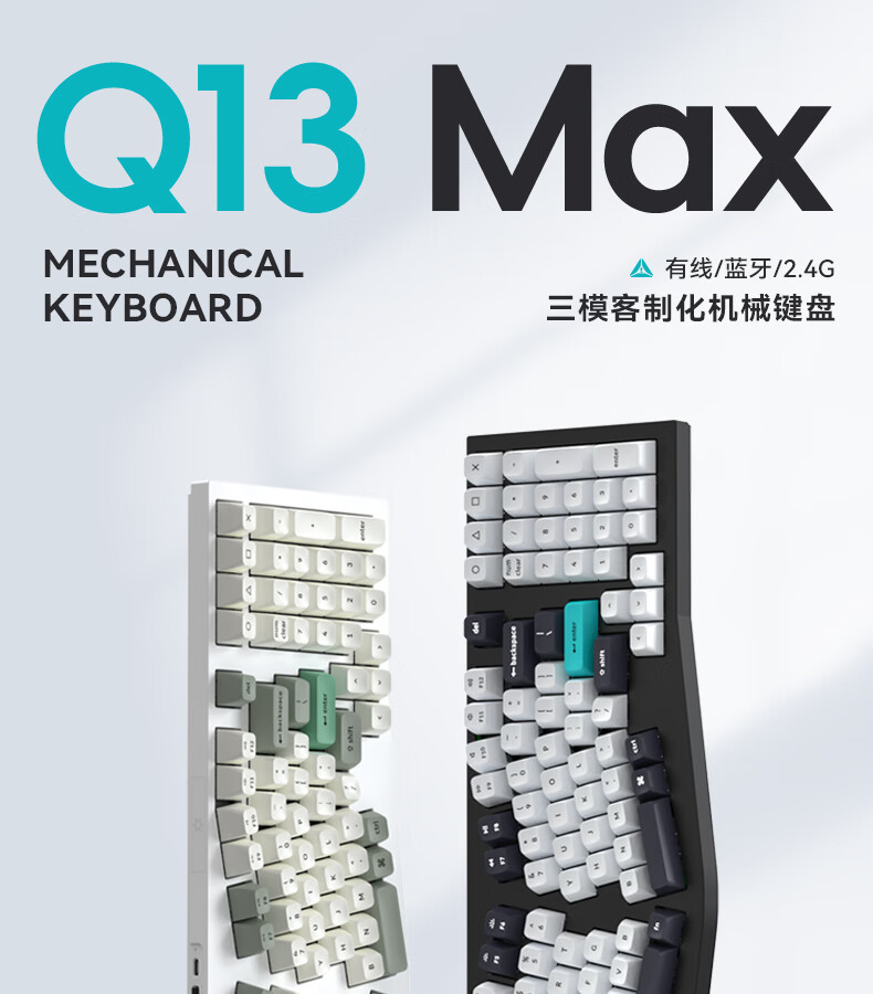 keychron渴创 Q13Max 机械键盘 无线三模键盘 异形Alice键盘 客制化键盘 QMK/VIA开源改键 CNC铝坨坨 Q13Max RGB 热插拔旋钮版 香蕉轴 白色