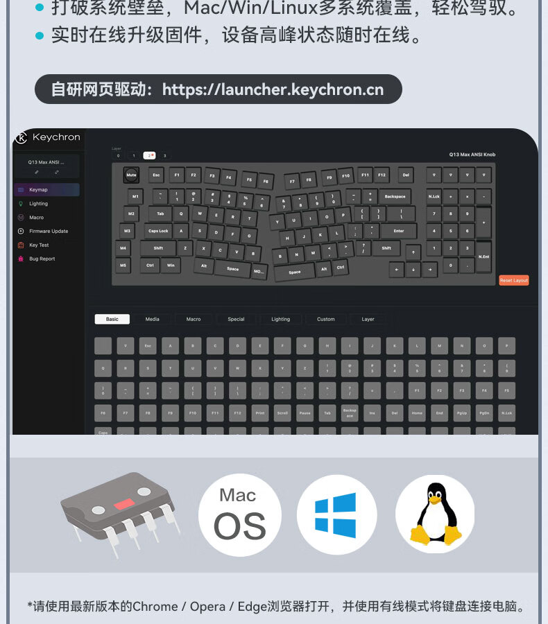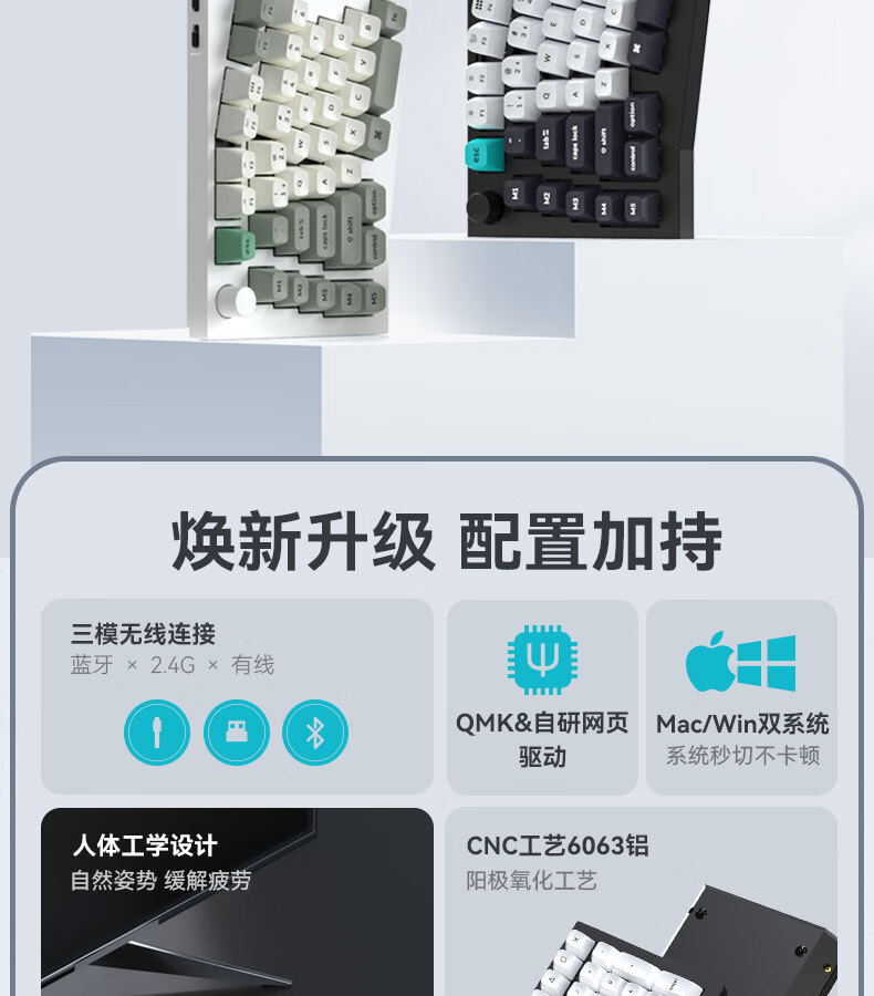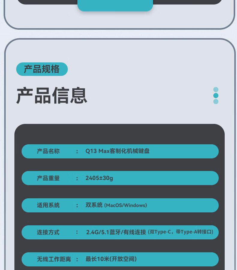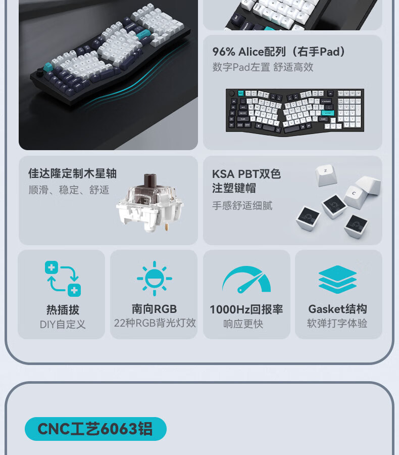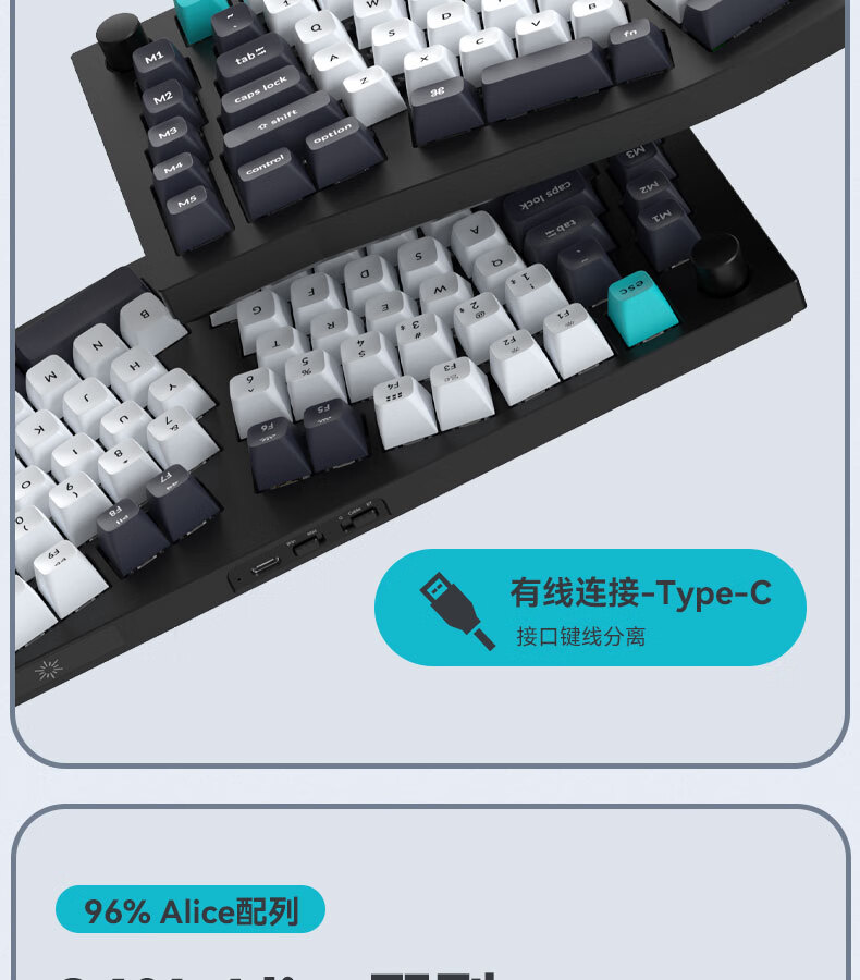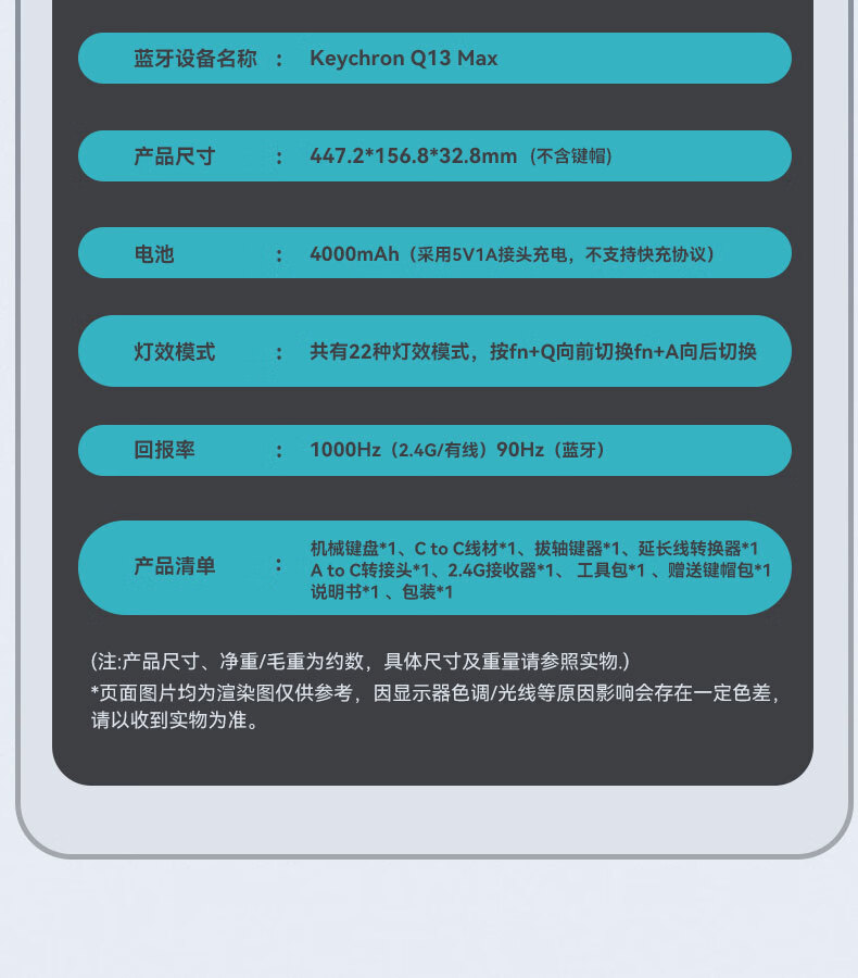 keychron渴创 Q13Max 机械键盘 无线三模键盘 异形Alice键盘 客制化键盘 QMK/VIA开源改键 CNC铝坨坨 Q13Max RGB 热插拔旋钮版 香蕉轴 白色