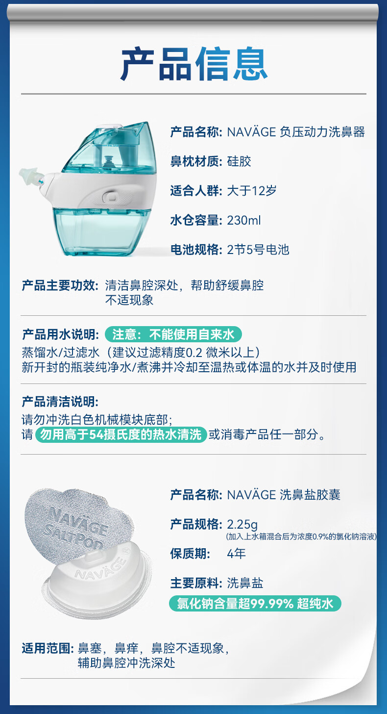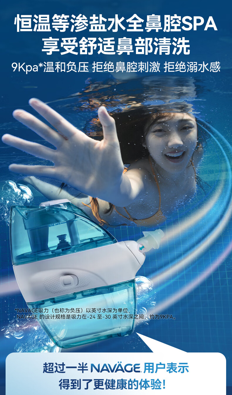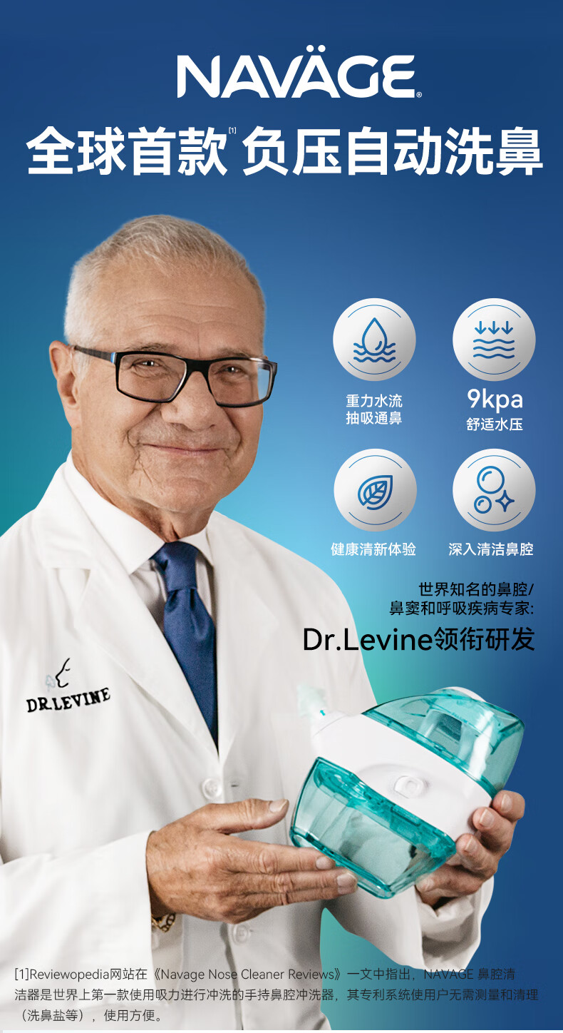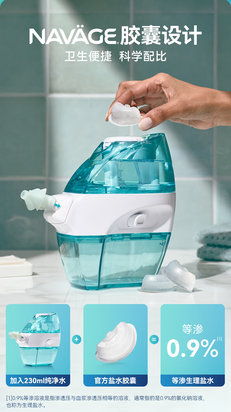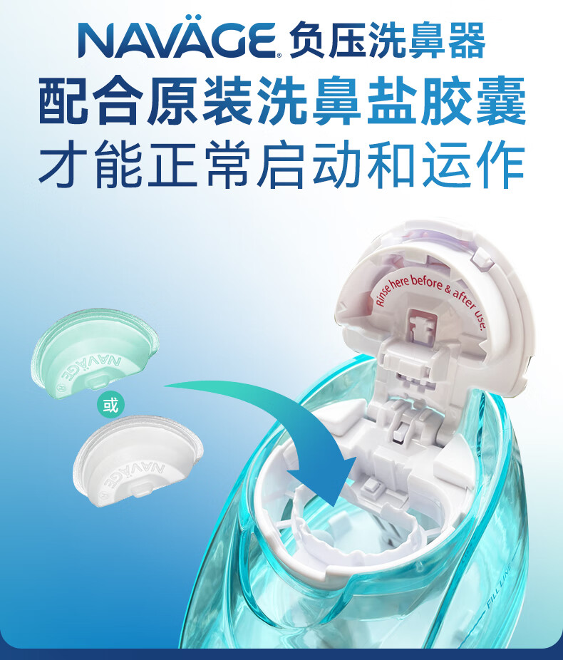NAVAGE美国负压电动洗鼻器+原味海盐水30粒鼻干鼻塞鼻腔冲洗吸鼻神器
