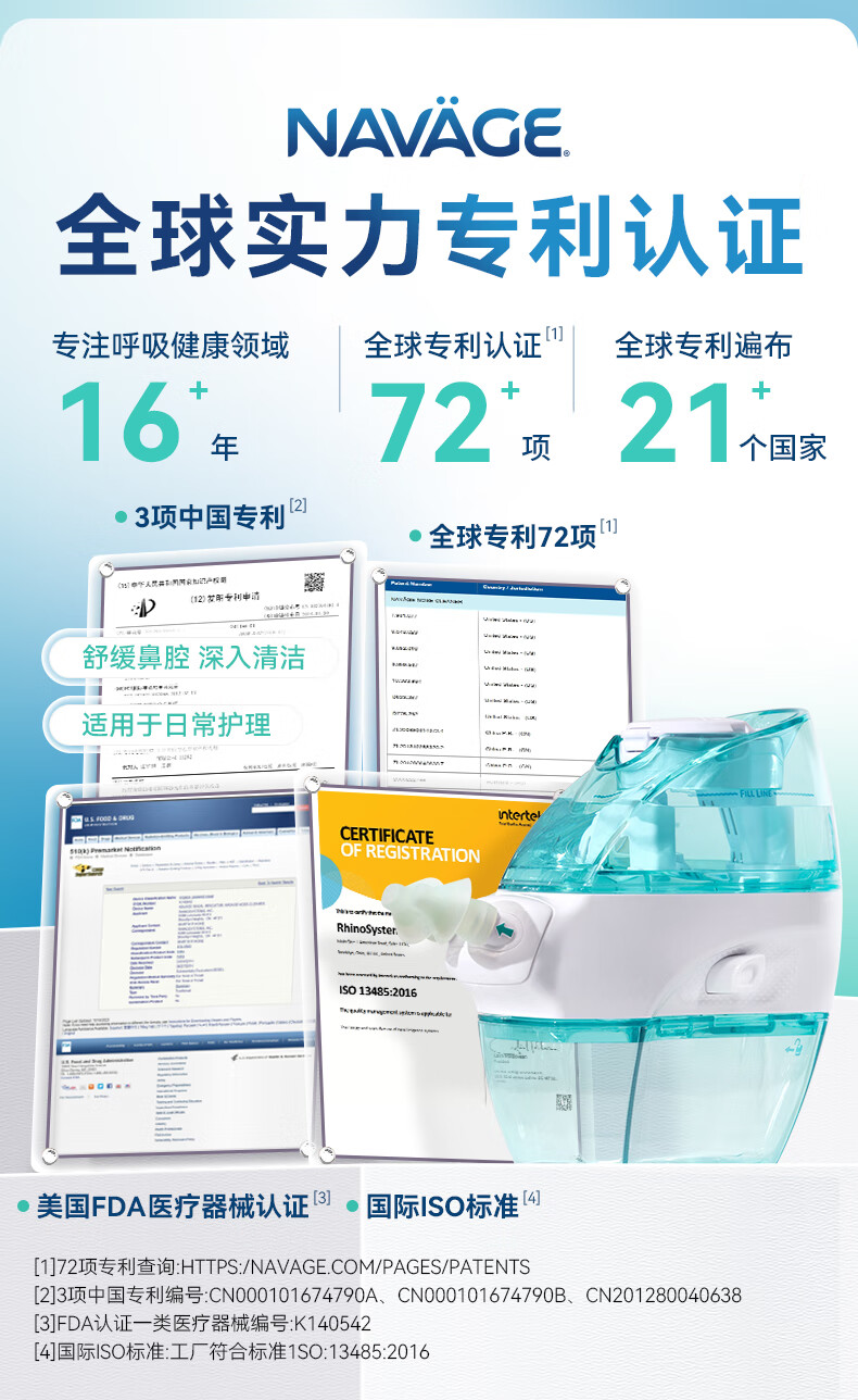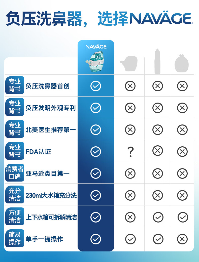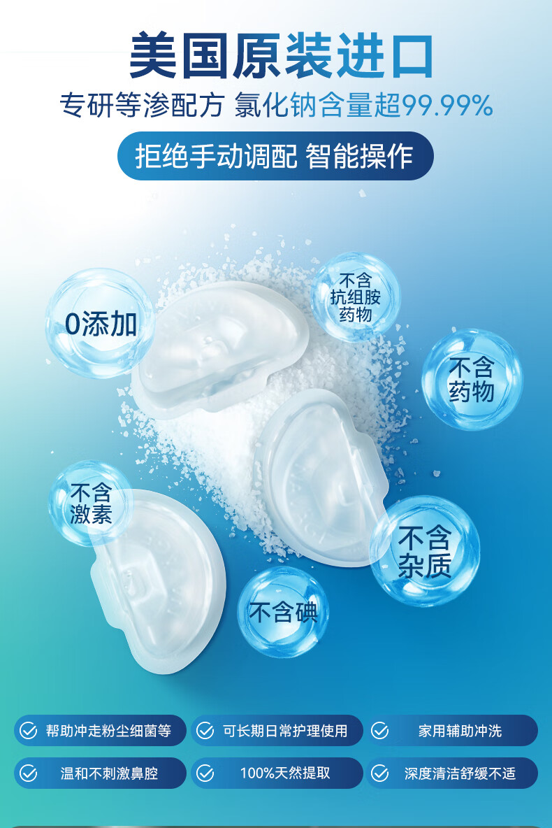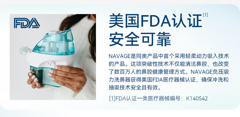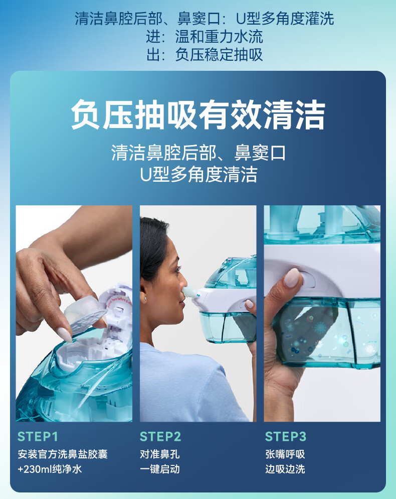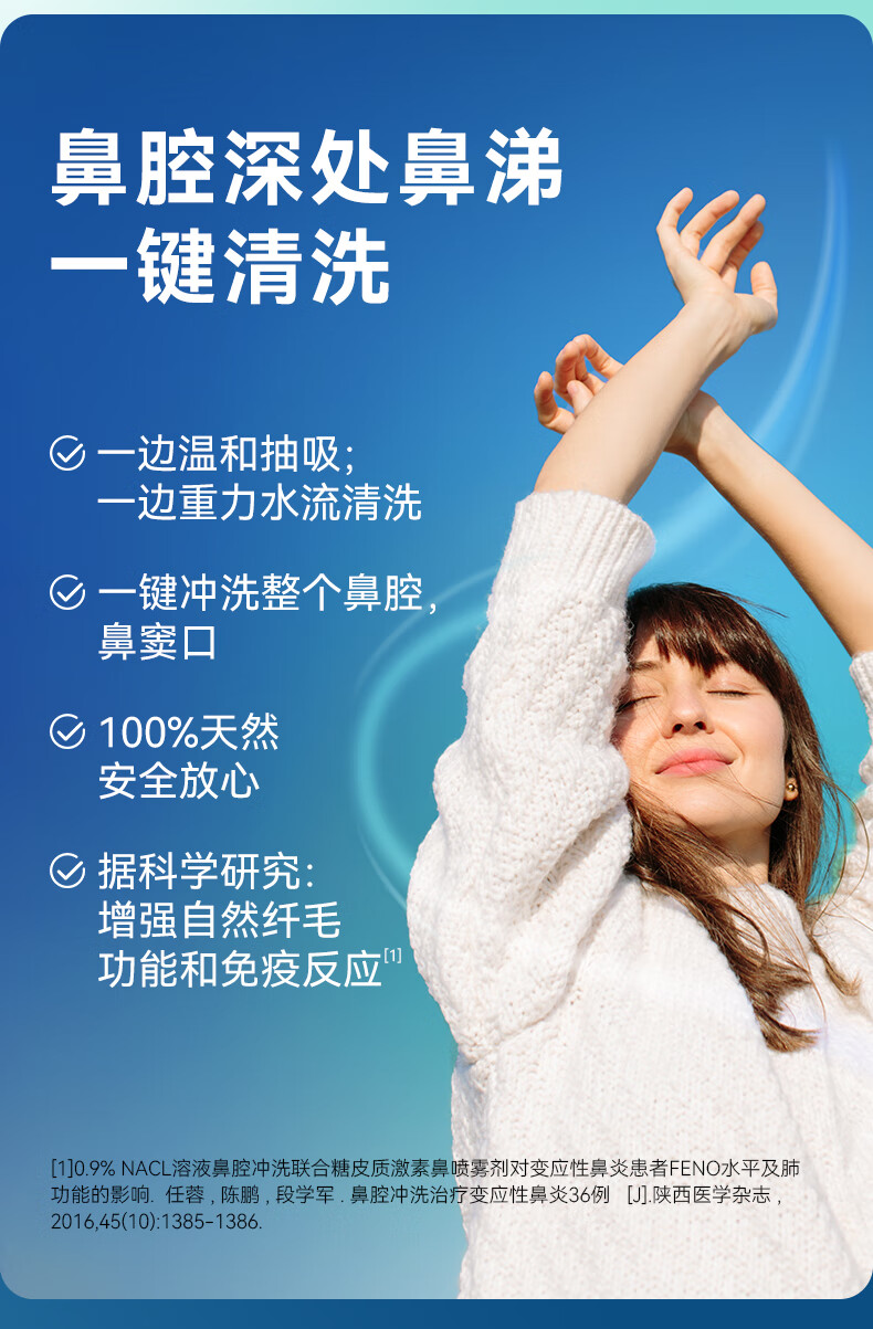NAVAGE美国负压电动洗鼻器+原味海盐水30粒鼻干鼻塞鼻腔冲洗吸鼻神器