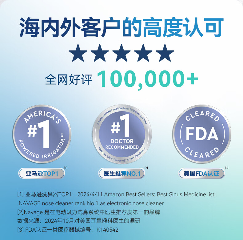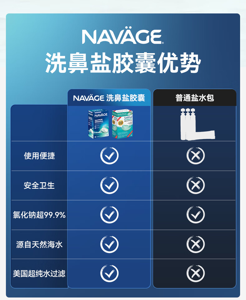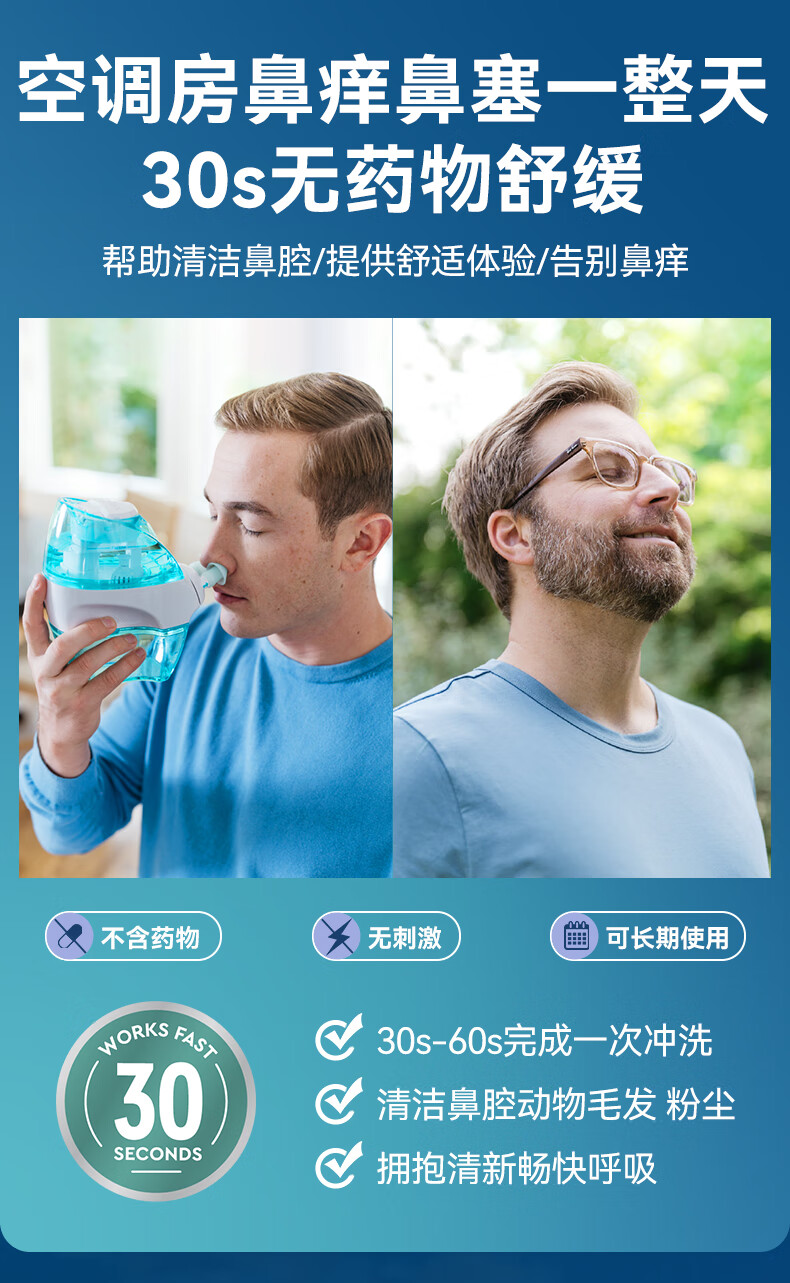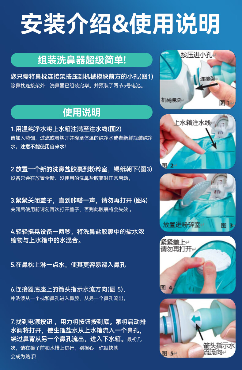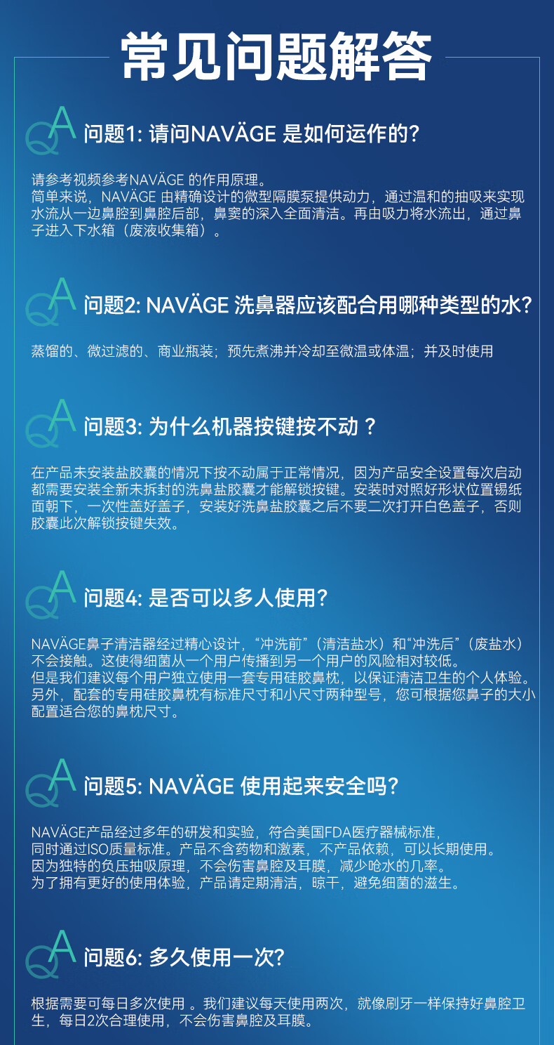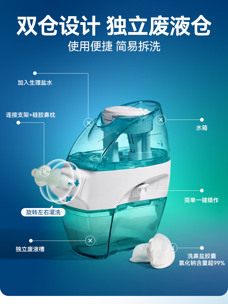 NAVAGE美国负压电动洗鼻器+原味海盐水30粒鼻干鼻塞鼻腔冲洗吸鼻神器