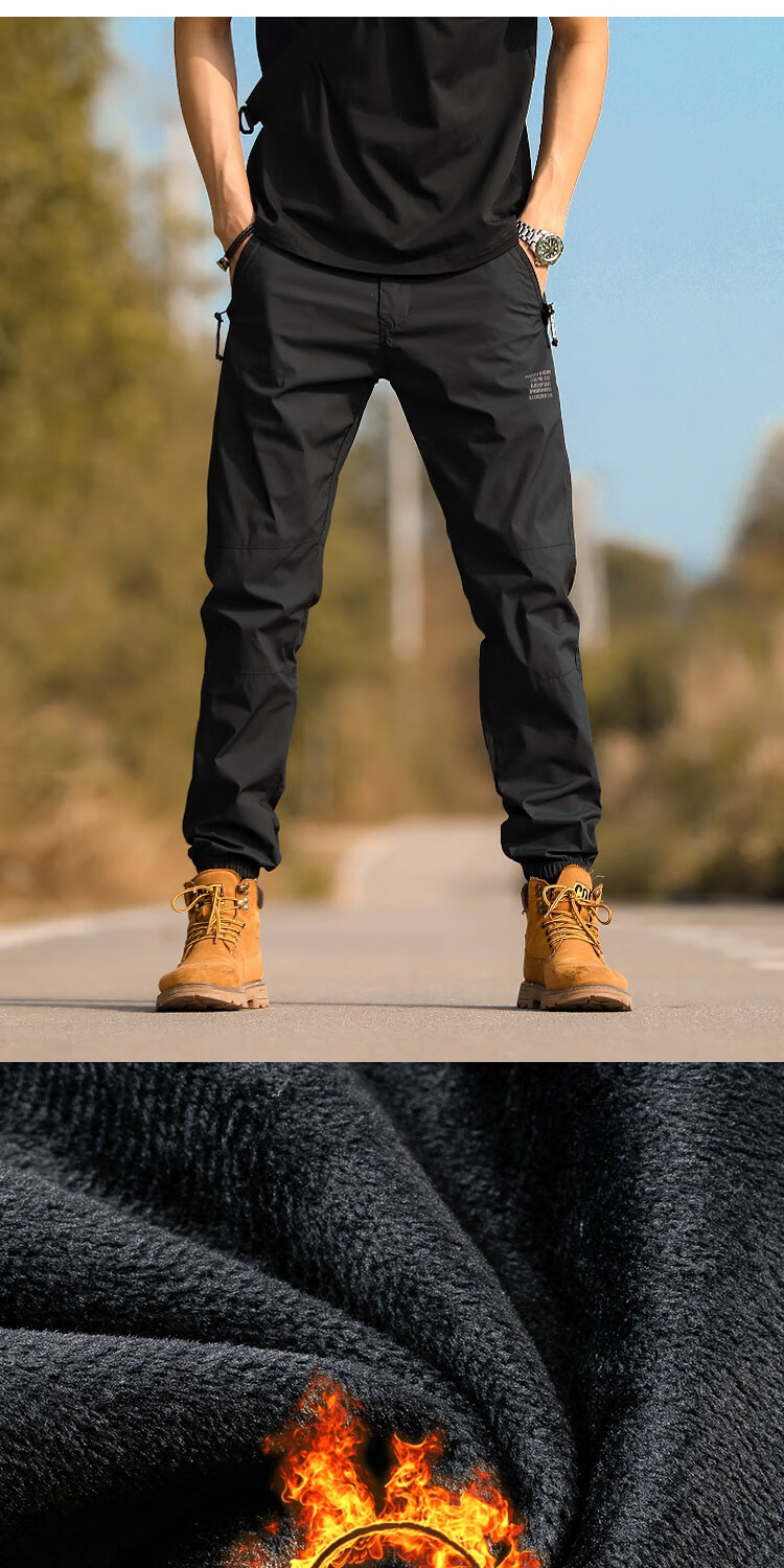 海行黑色户外加绒修身保暖休闲长裤男2025冬季新款防风冲锋裤登山 黑迷彩加绒(保暖) 32