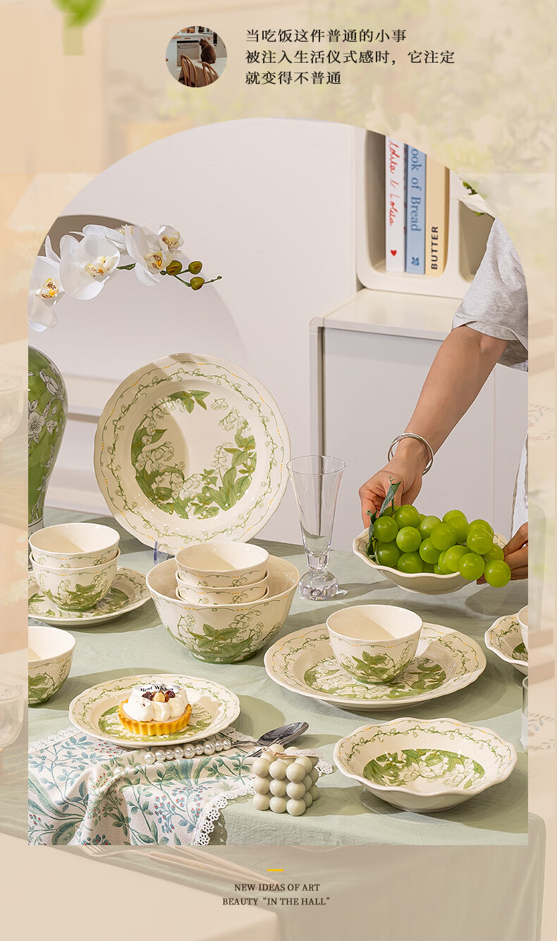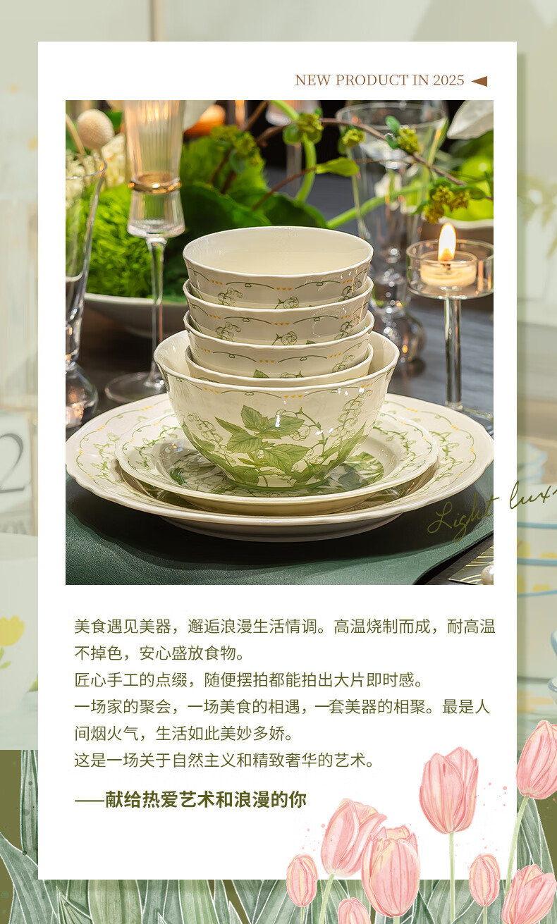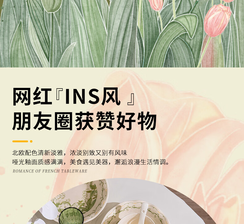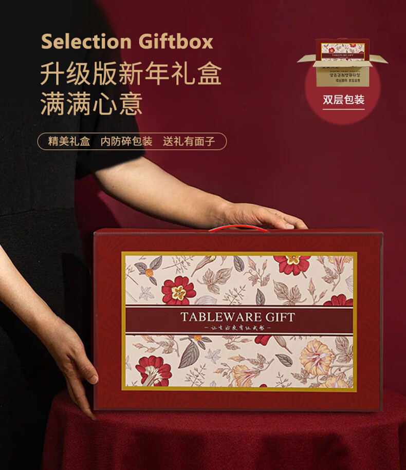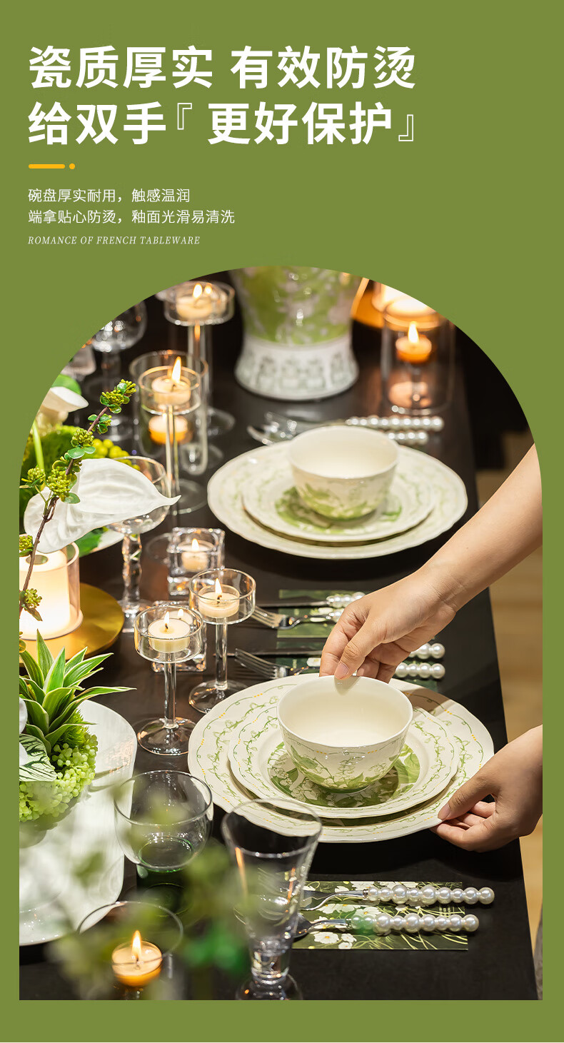 白朔碗具套装碗盘餐具整套简约高级陶瓷釉下彩餐具套装乔迁家用送礼 2人食带汤碗(不带礼盒) 9件套 【景德镇发货 胖东来同款】