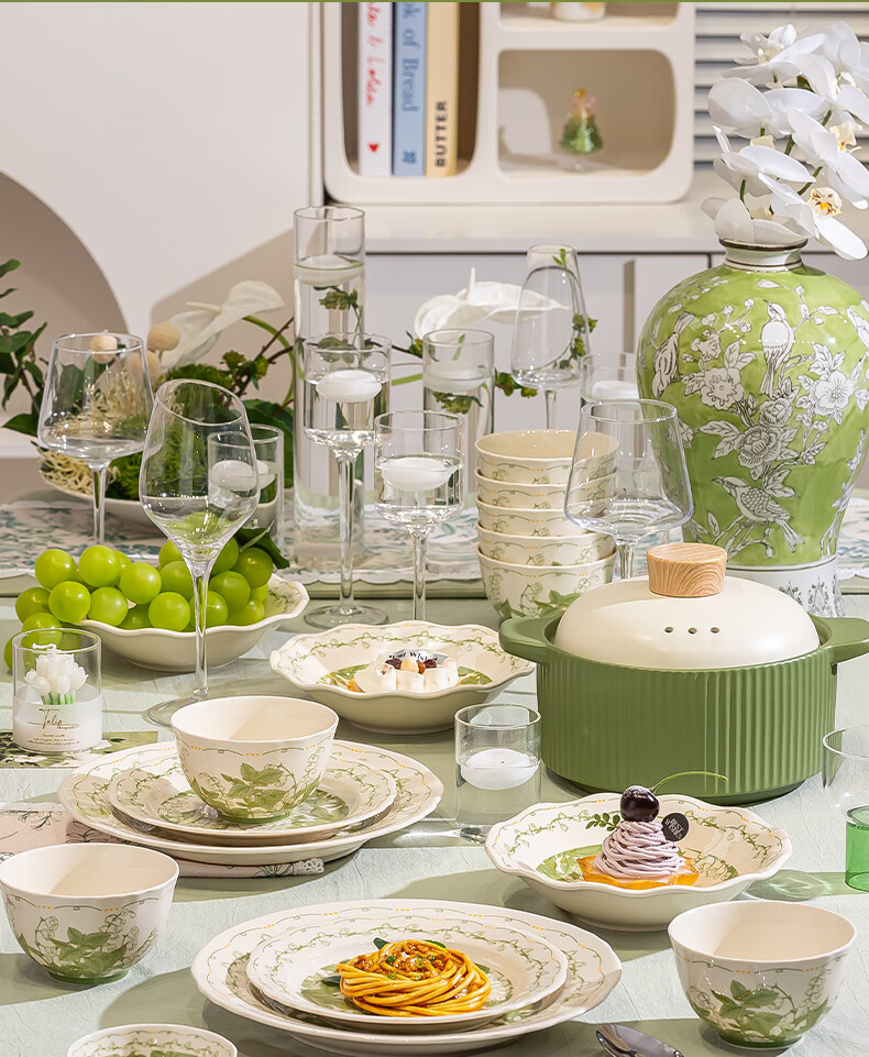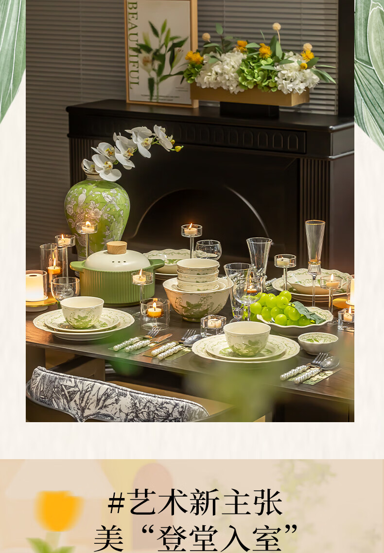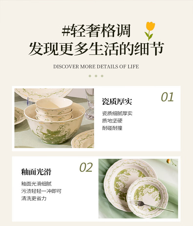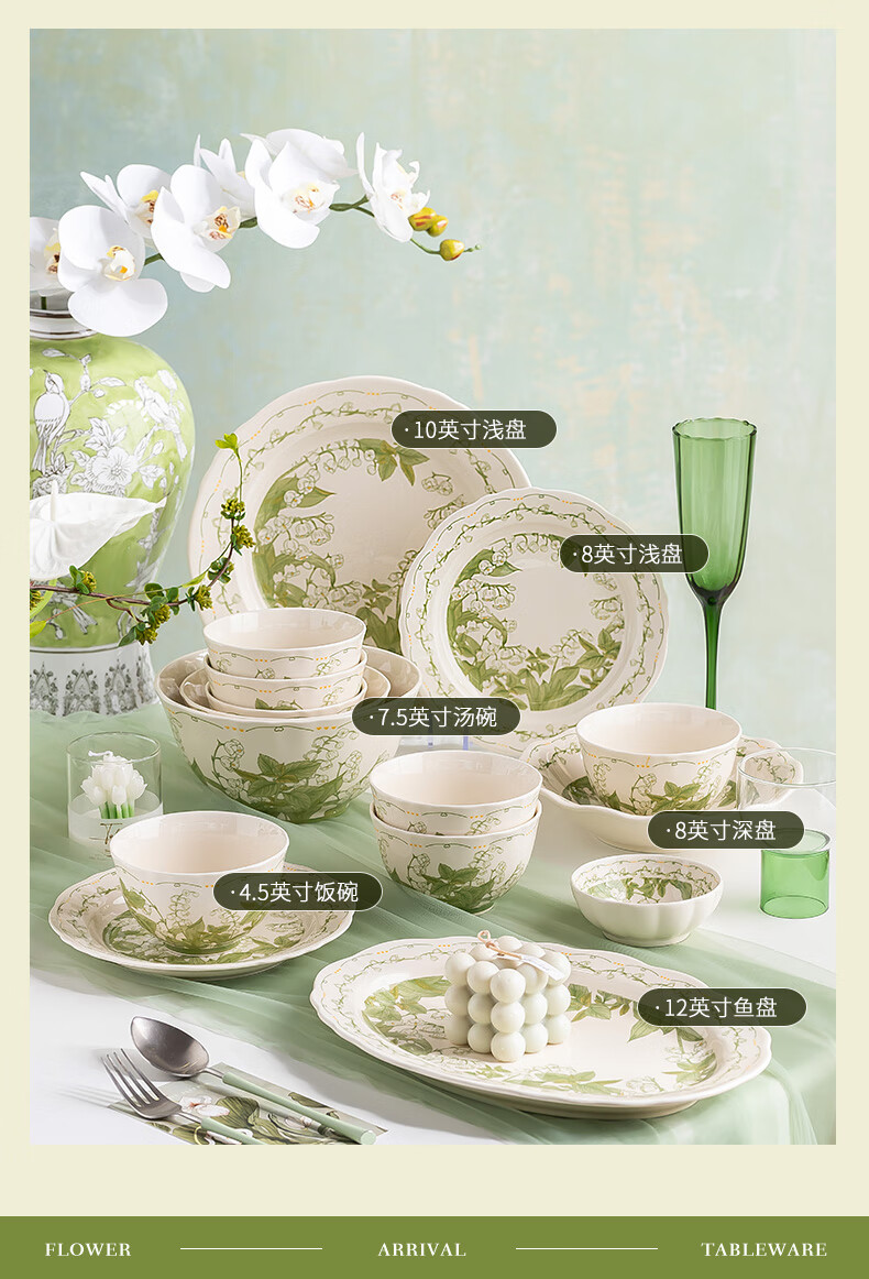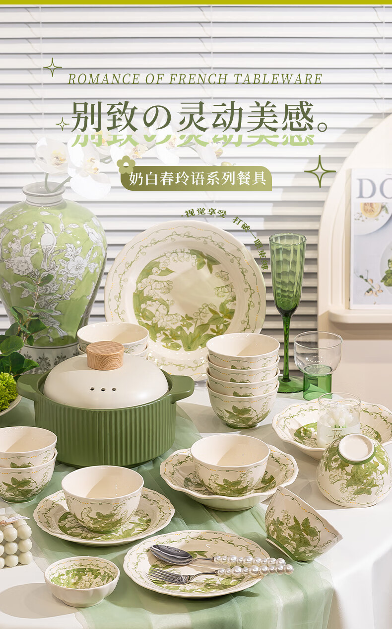 白朔碗具套装碗盘餐具整套简约高级陶瓷釉下彩餐具套装乔迁家用送礼 2人食带汤碗(不带礼盒) 9件套 【景德镇发货 胖东来同款】
