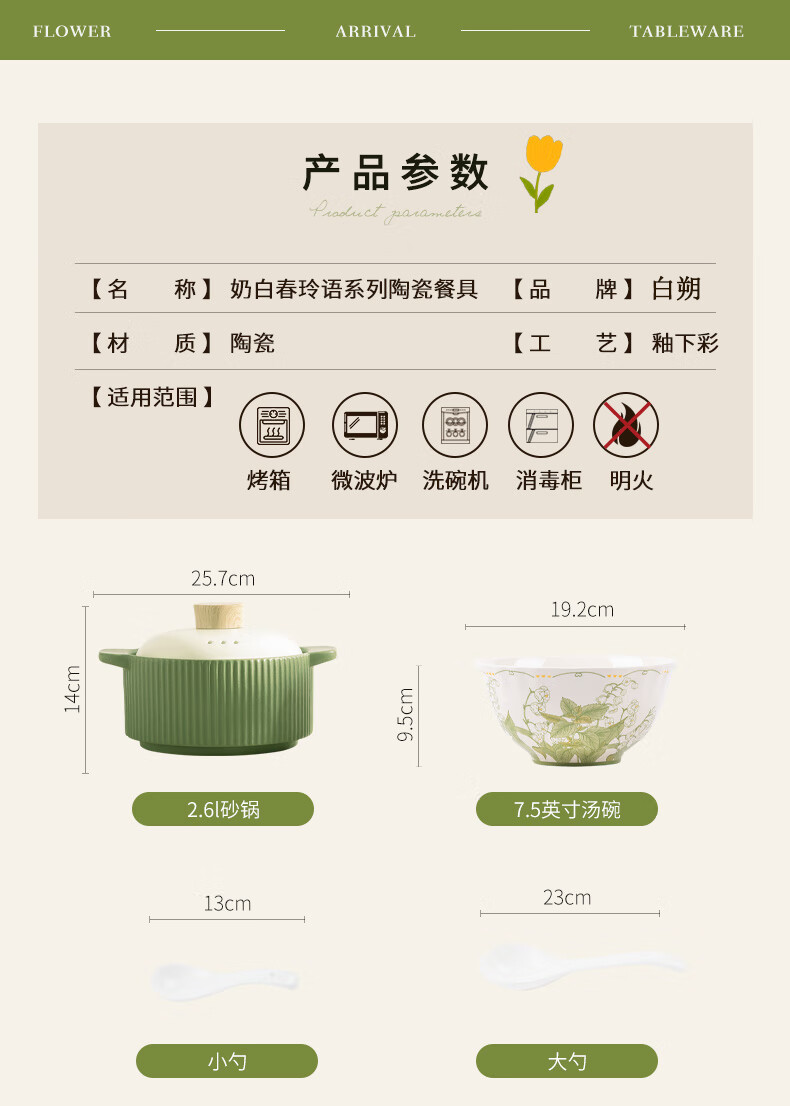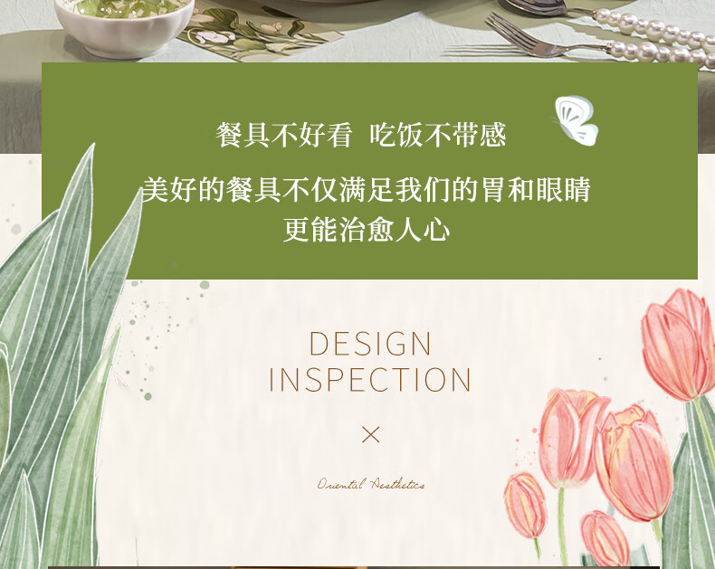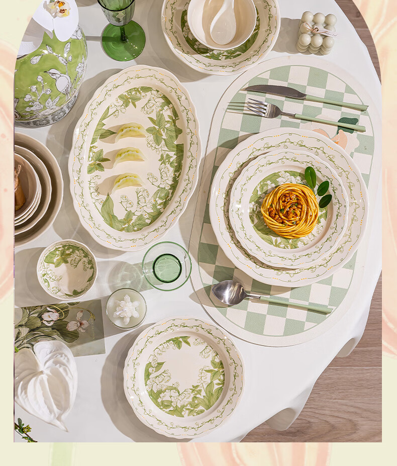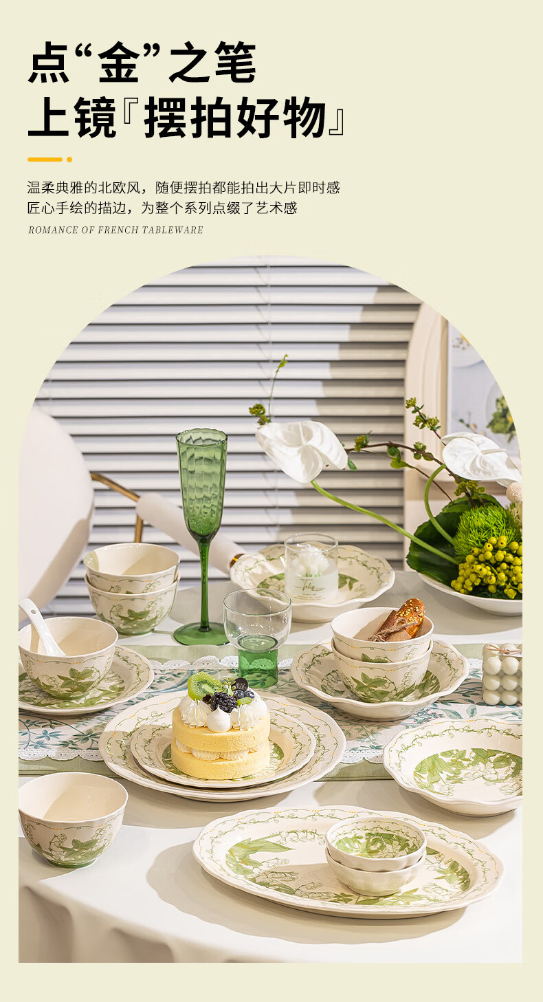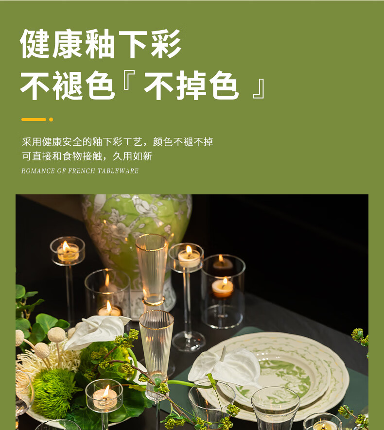 白朔碗具套装碗盘餐具整套简约高级陶瓷釉下彩餐具套装乔迁家用送礼 2人食带汤碗(不带礼盒) 9件套 【景德镇发货 胖东来同款】