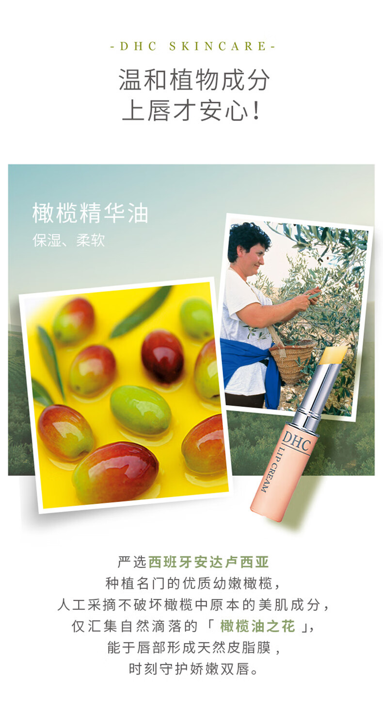 DHC日本DHC润唇膏天然橄榄油润唇膏淡化唇纹防干裂滋润保湿护唇膏 DHC橄榄护唇膏1.5g*1支