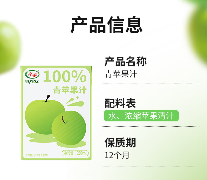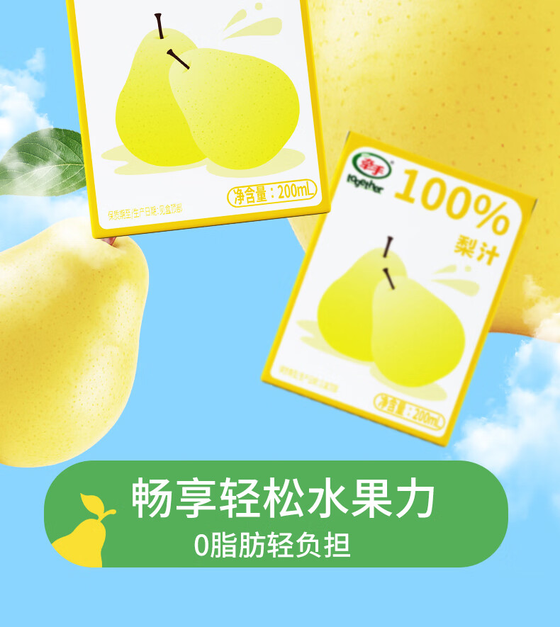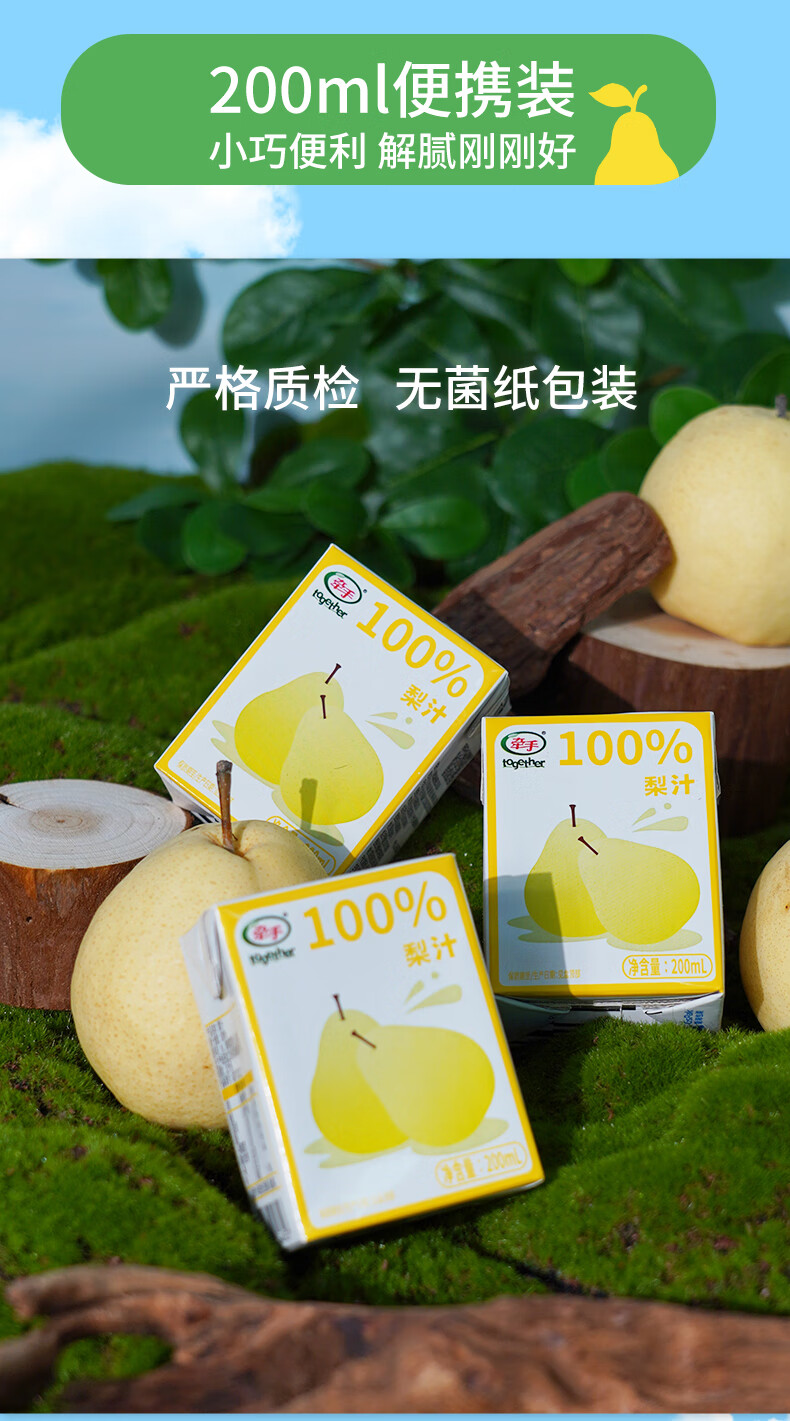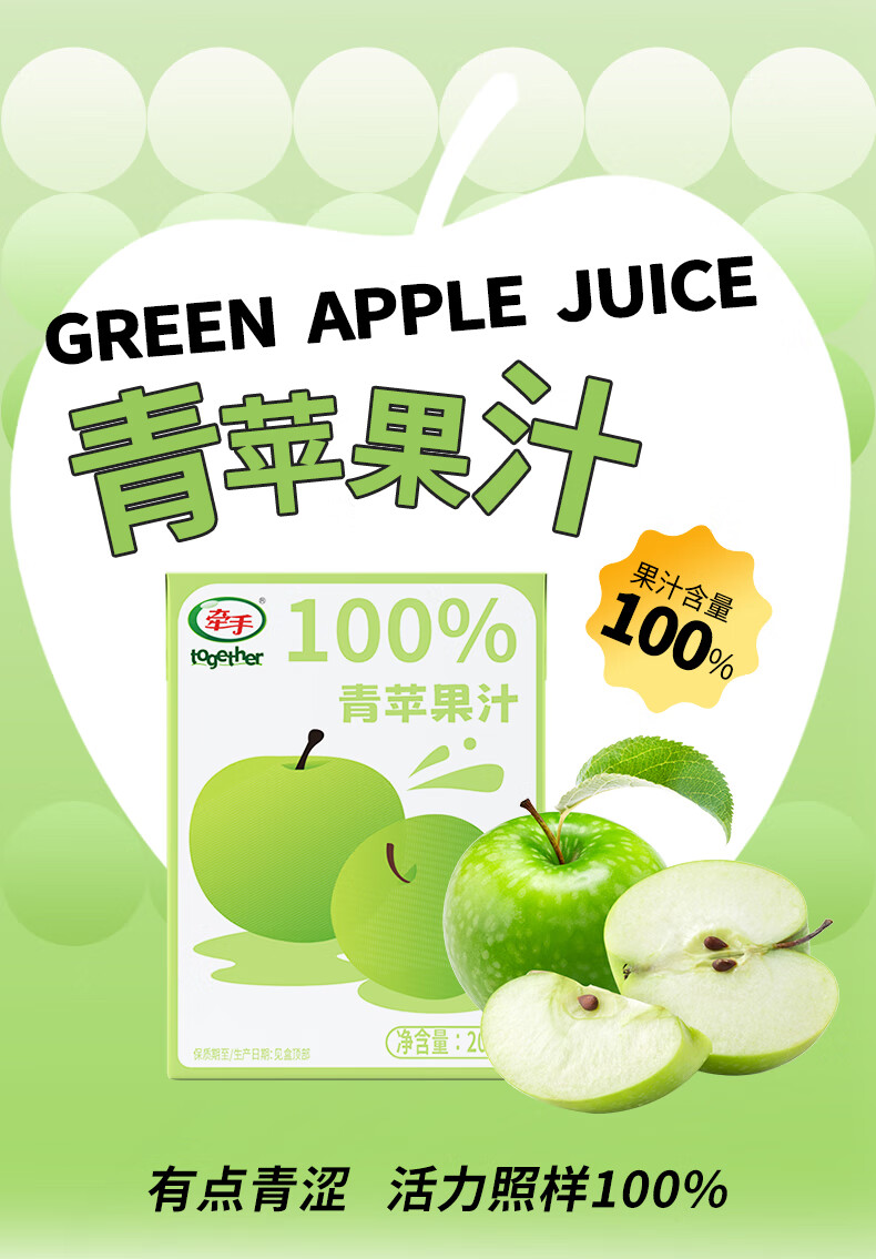 牵手【年货】100%青苹果汁/梨汁200ml 青苹果汁200ml 24盒整箱
