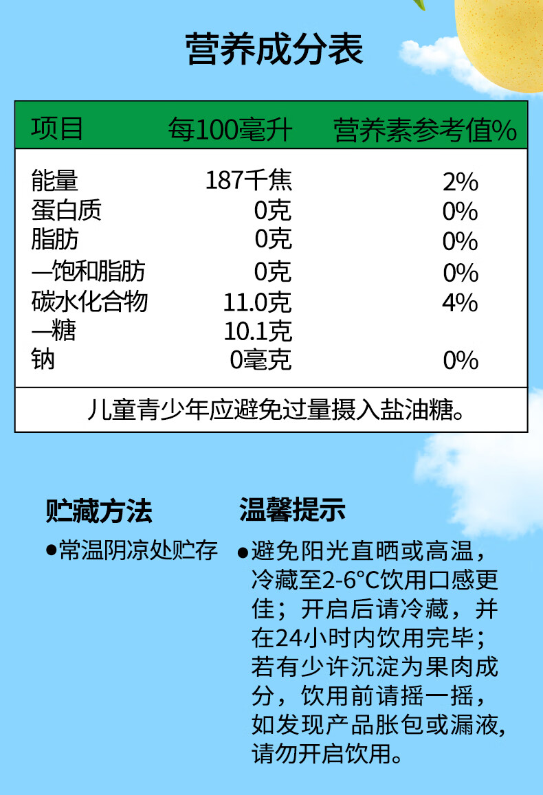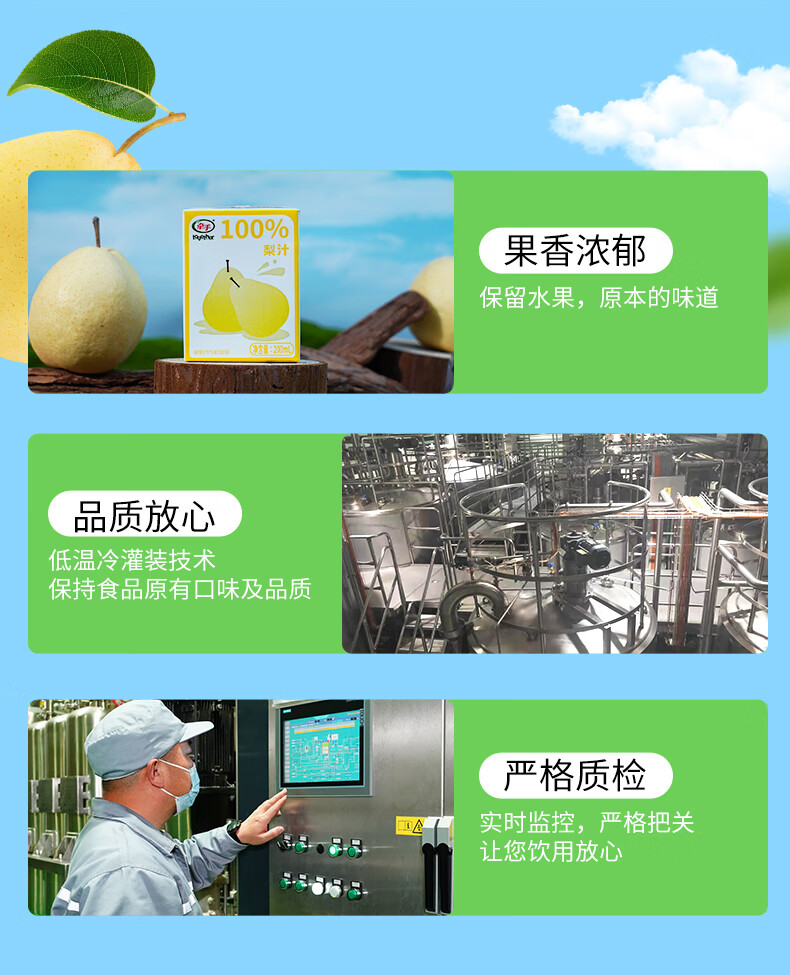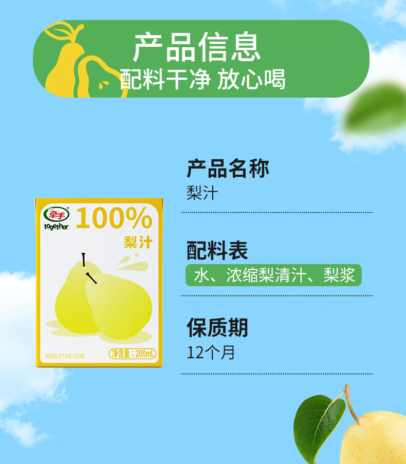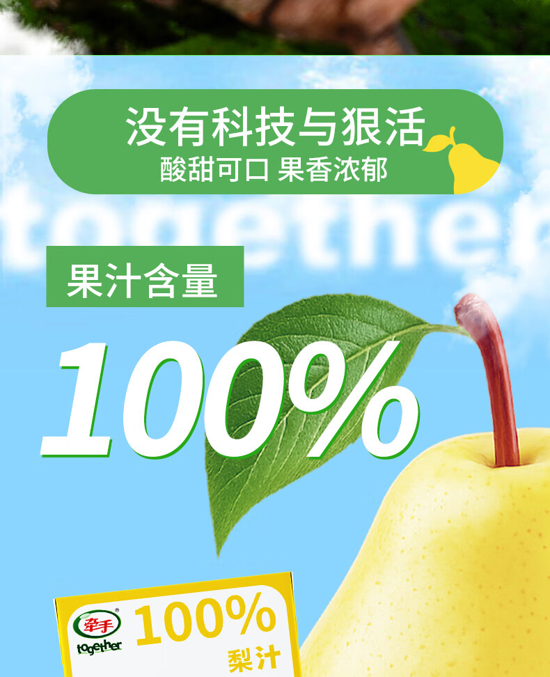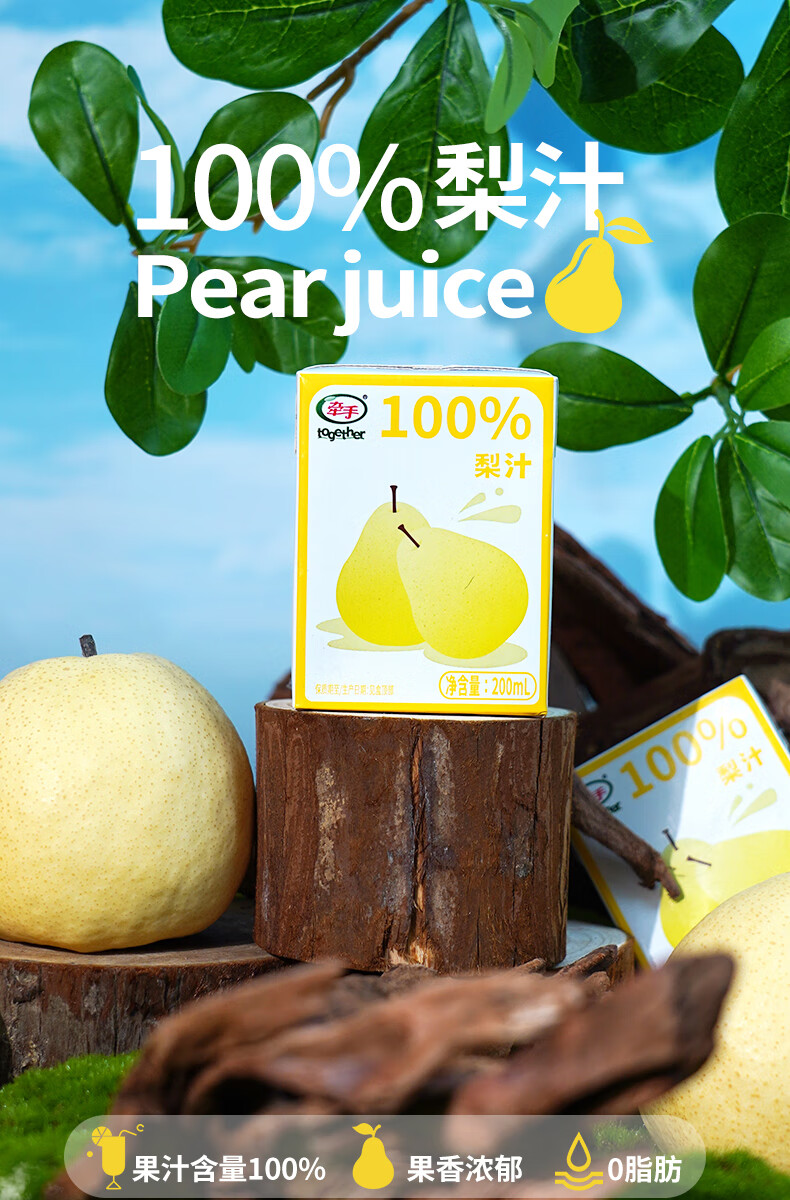 牵手【年货】100%青苹果汁/梨汁200ml 青苹果汁200ml 24盒整箱