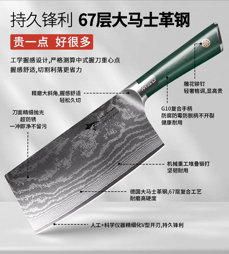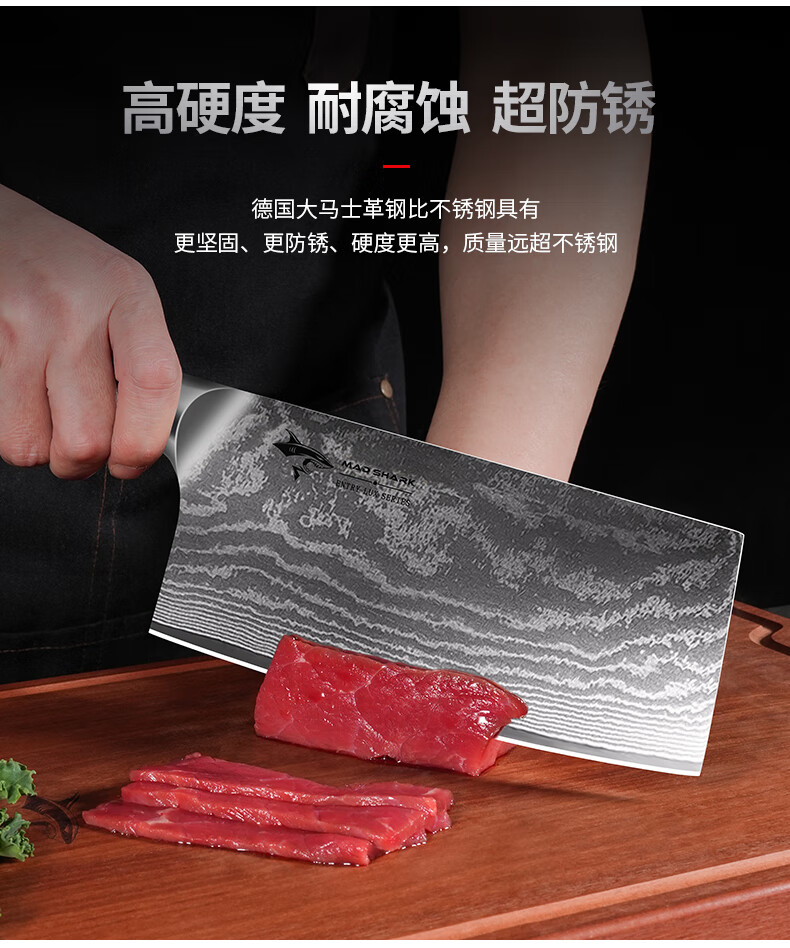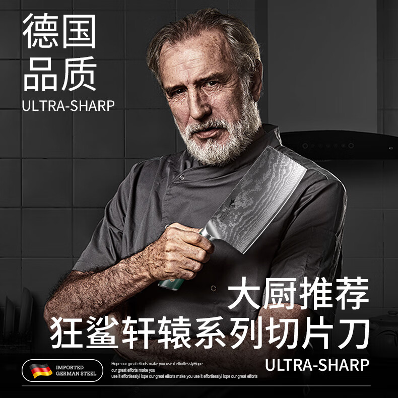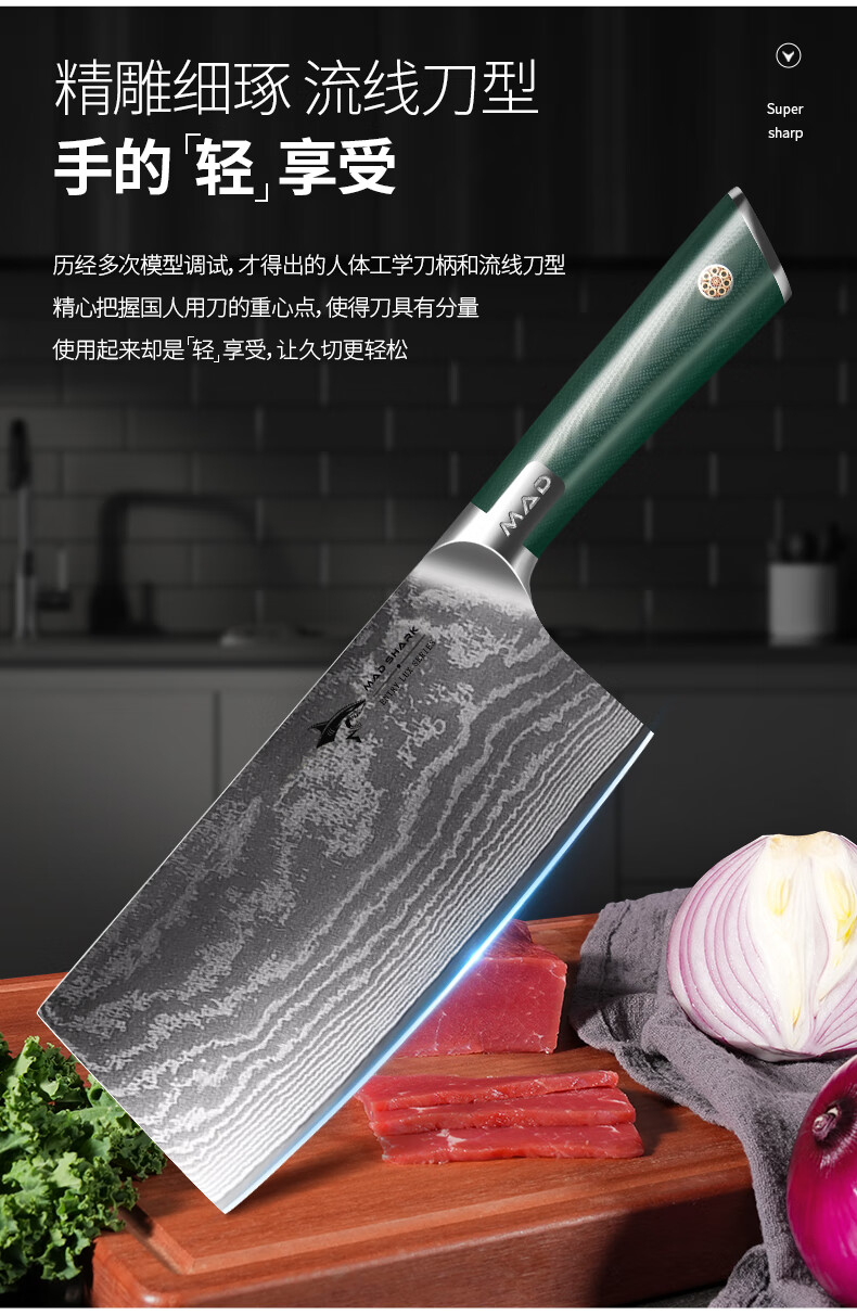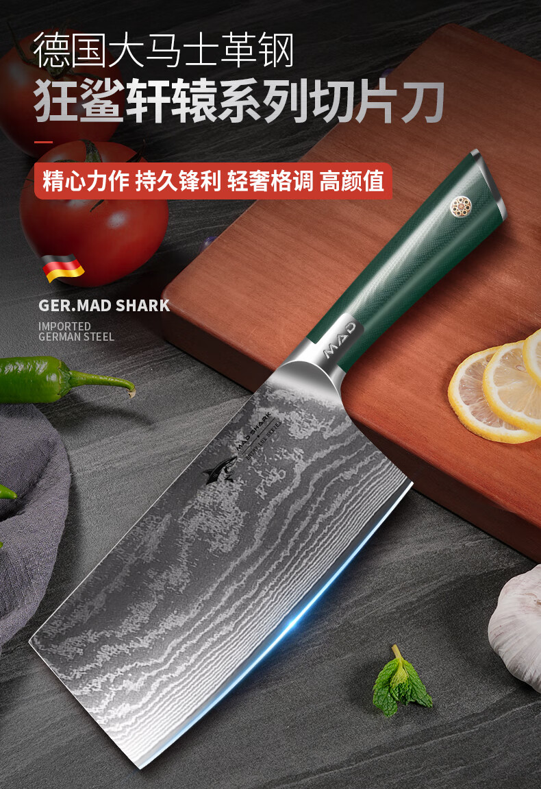 MAD SHARK德国进口大马士革钢菜刀家用三德刀厨师专用切肉切片刀具厨房套装 【店长强推】进口切片菜刀【持久锋利】 德国大马士革钢