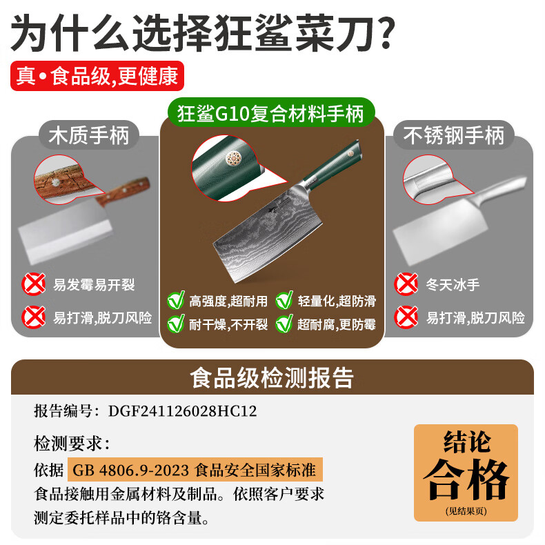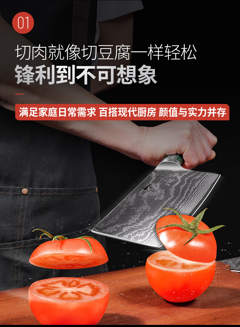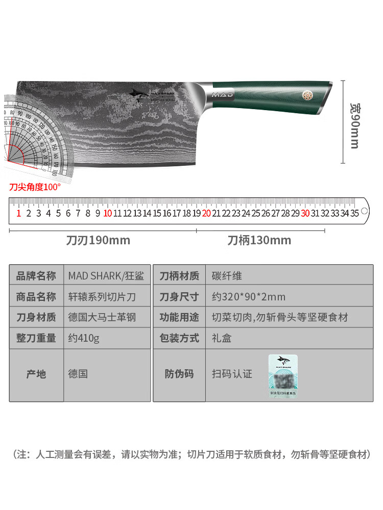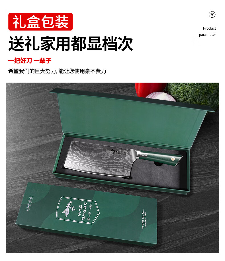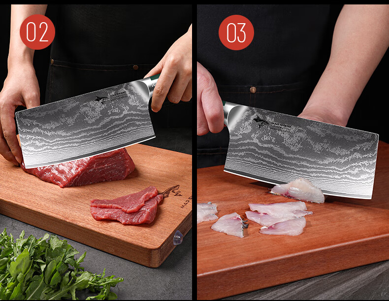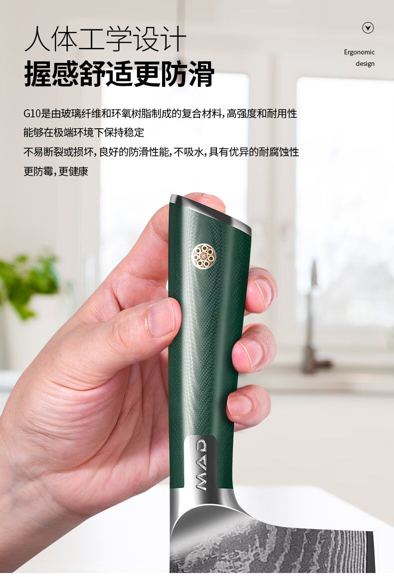 MAD SHARK德国进口大马士革钢菜刀家用三德刀厨师专用切肉切片刀具厨房套装 【店长强推】进口切片菜刀【持久锋利】 德国大马士革钢