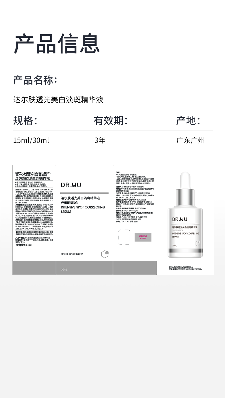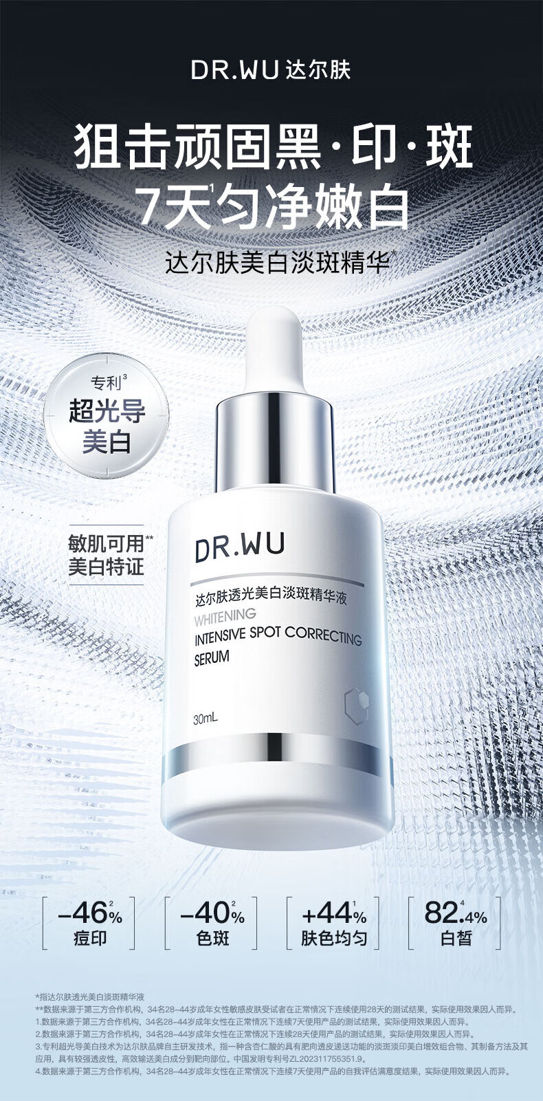达尔肤(DR.WU)透光美白淡斑精华液淡痘印色斑防反黑敏肌可用 美白精华30ml
