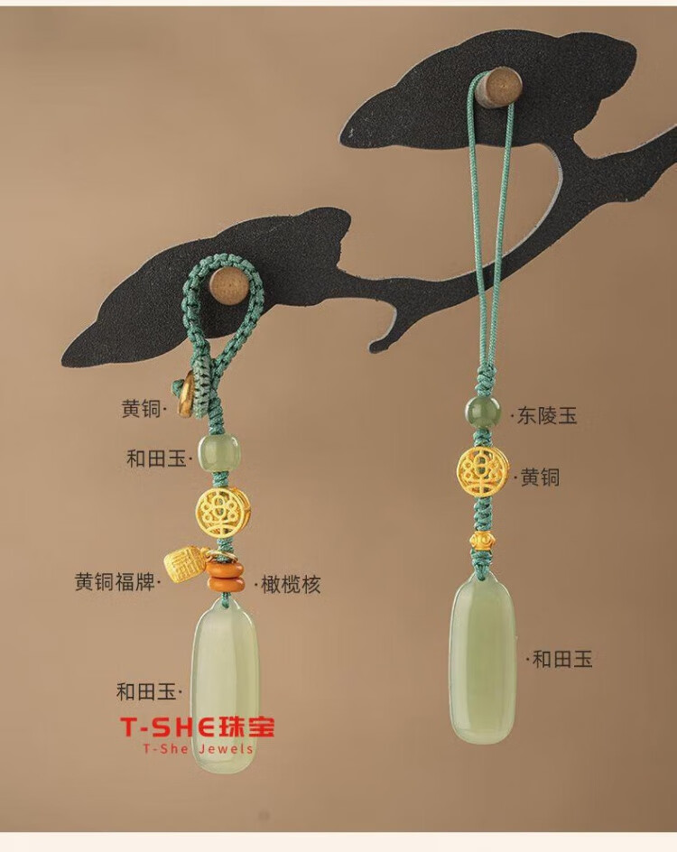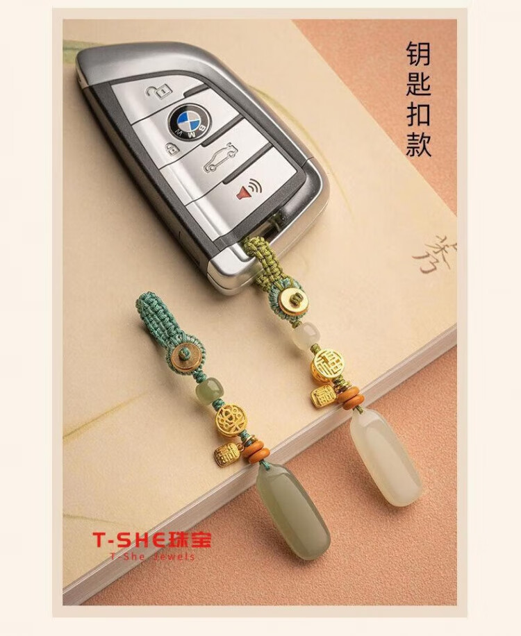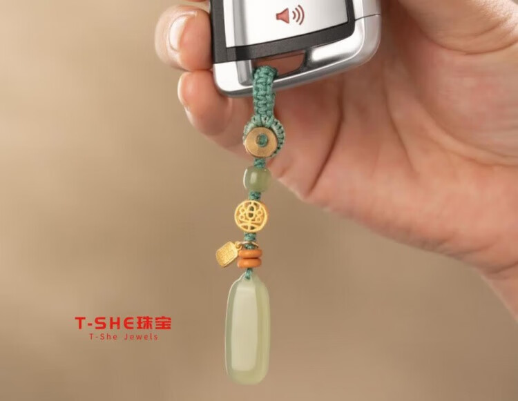 DL 1998胖东来同款和田玉钥匙扣平安无事牌挂饰优化青玉石汽车挂件男现货 无事牌钥匙扣