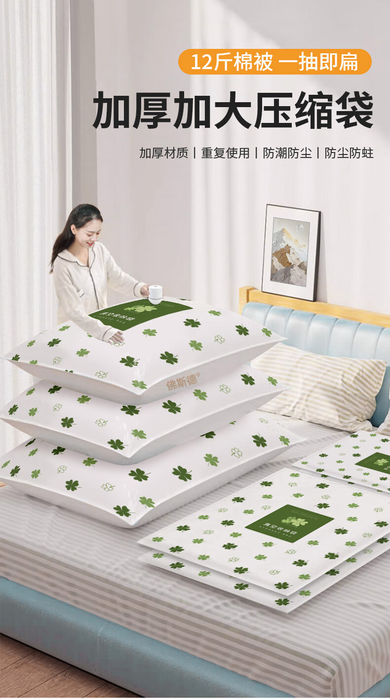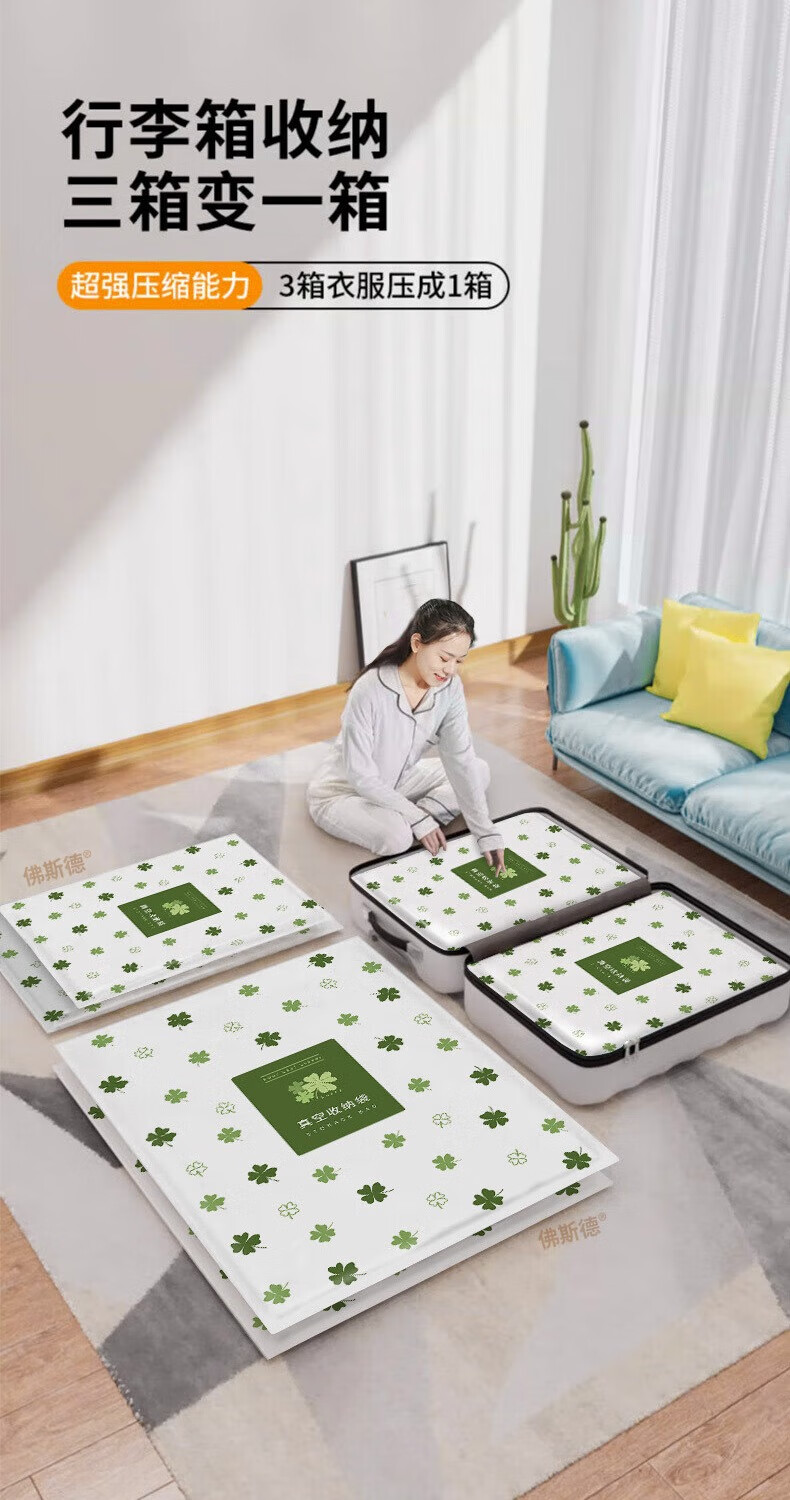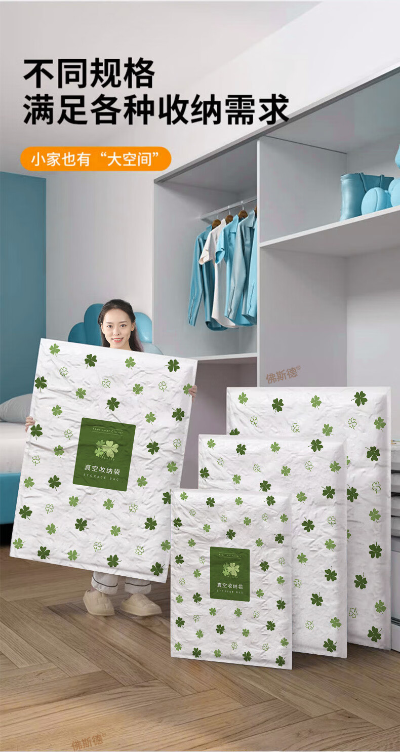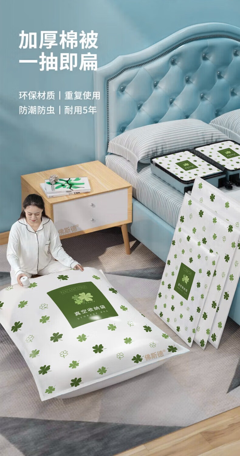 佛斯德真空压缩收纳袋被子衣服衣物整理电泵抽空气羽绒服棉被打包装袋子 无泵5件套【5个特大号90*70cm】