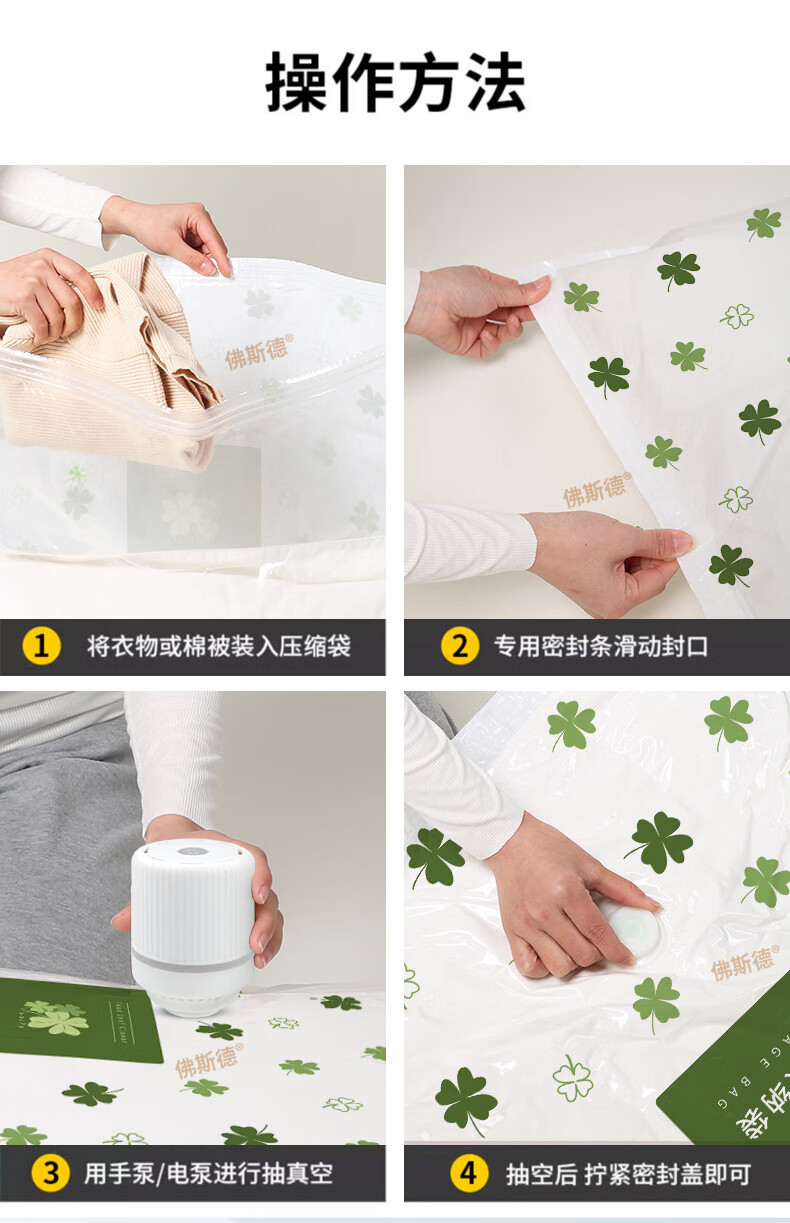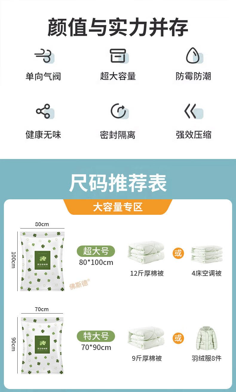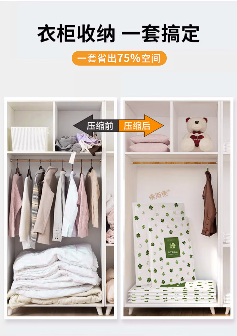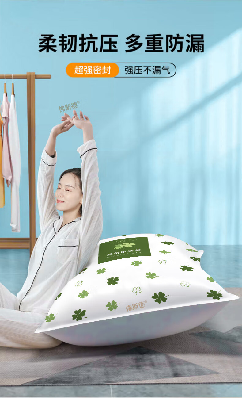 佛斯德真空压缩收纳袋被子衣服衣物整理电泵抽空气羽绒服棉被打包装袋子 无泵5件套【5个特大号90*70cm】