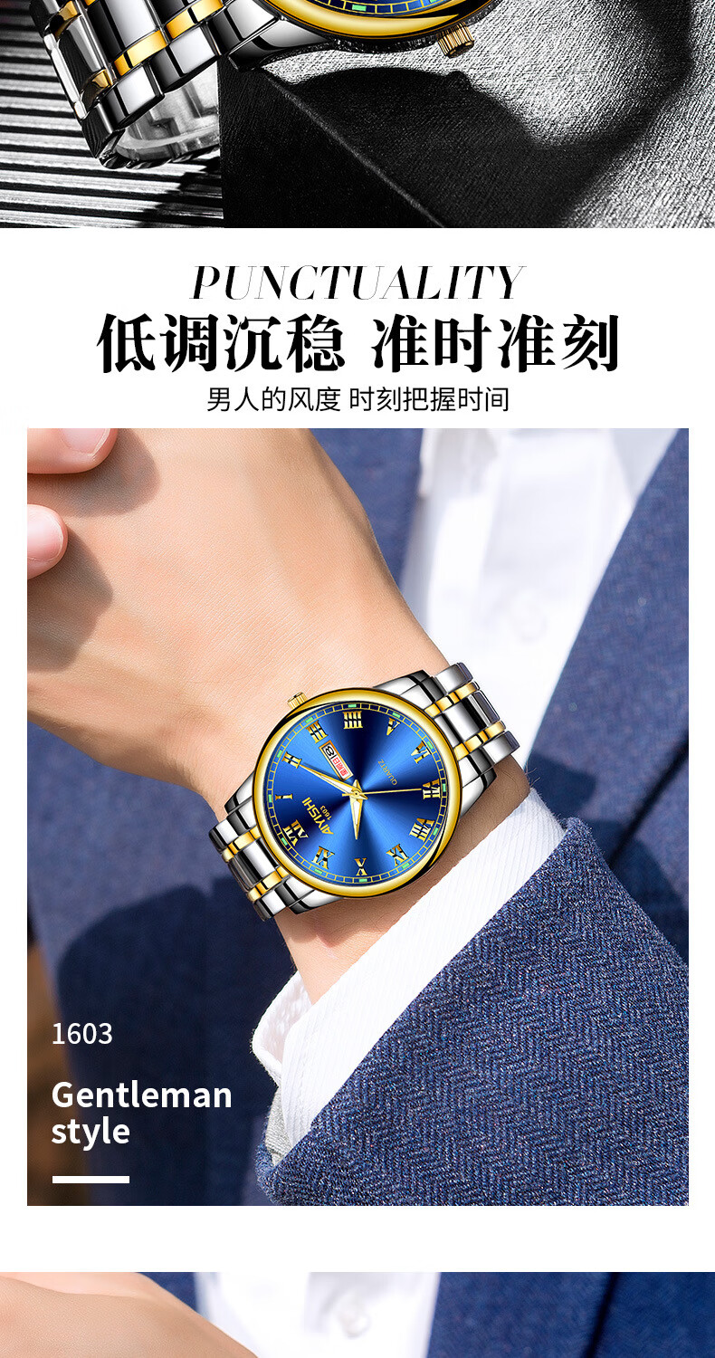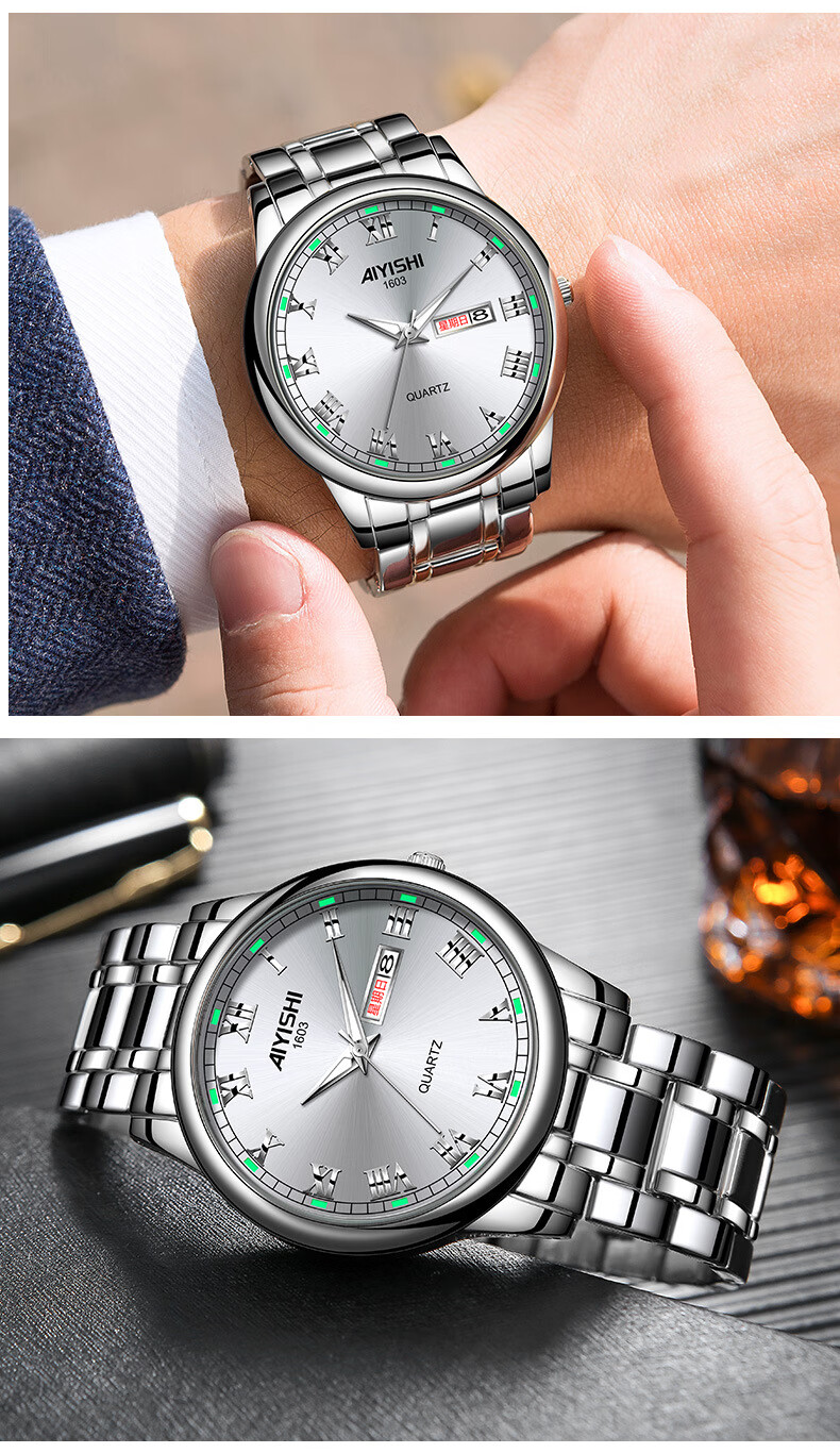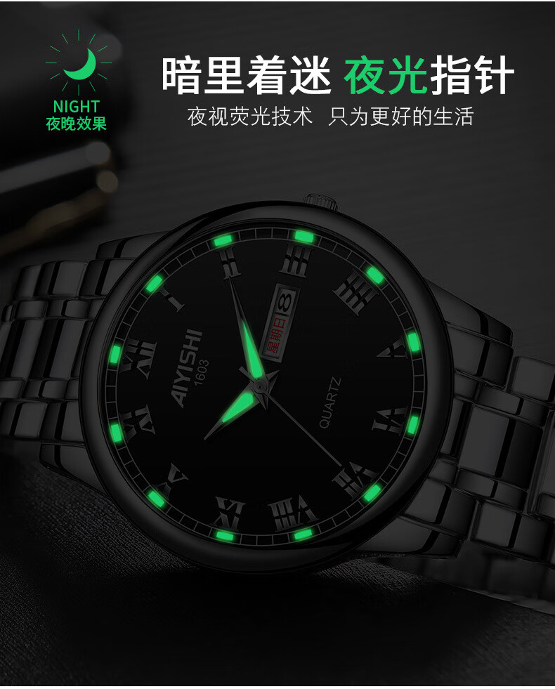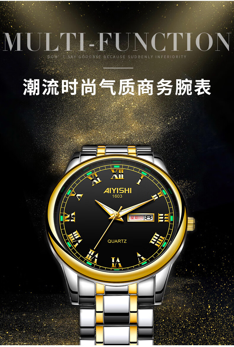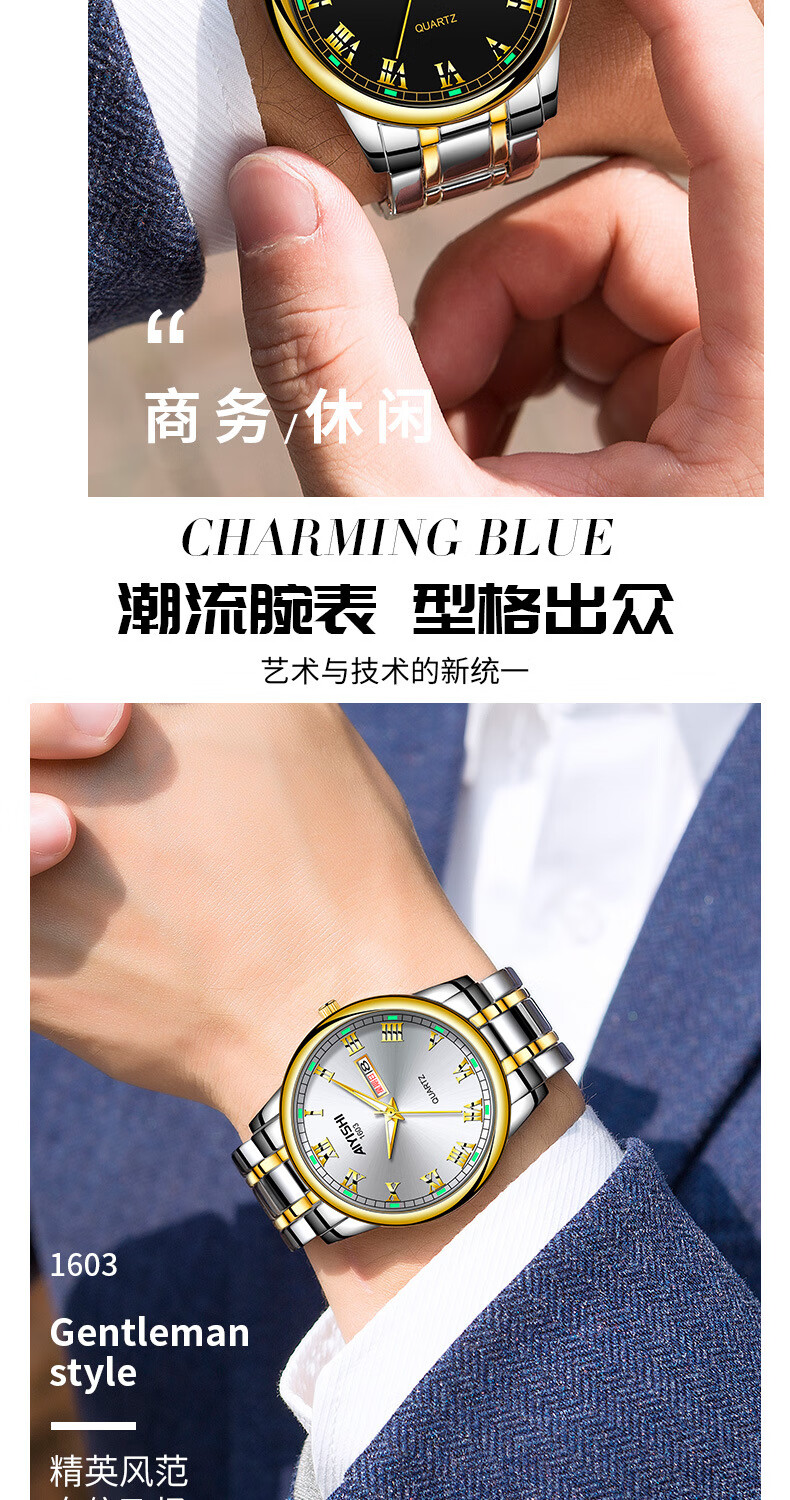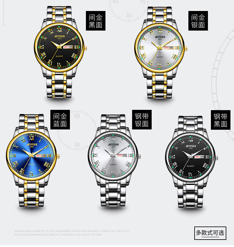 爱依士(AIYISHI)潮流时尚瑞士名表防水夜光表男款合金石英表高颜值男士商务手表 间金红面【瑞士机芯+终身质保】