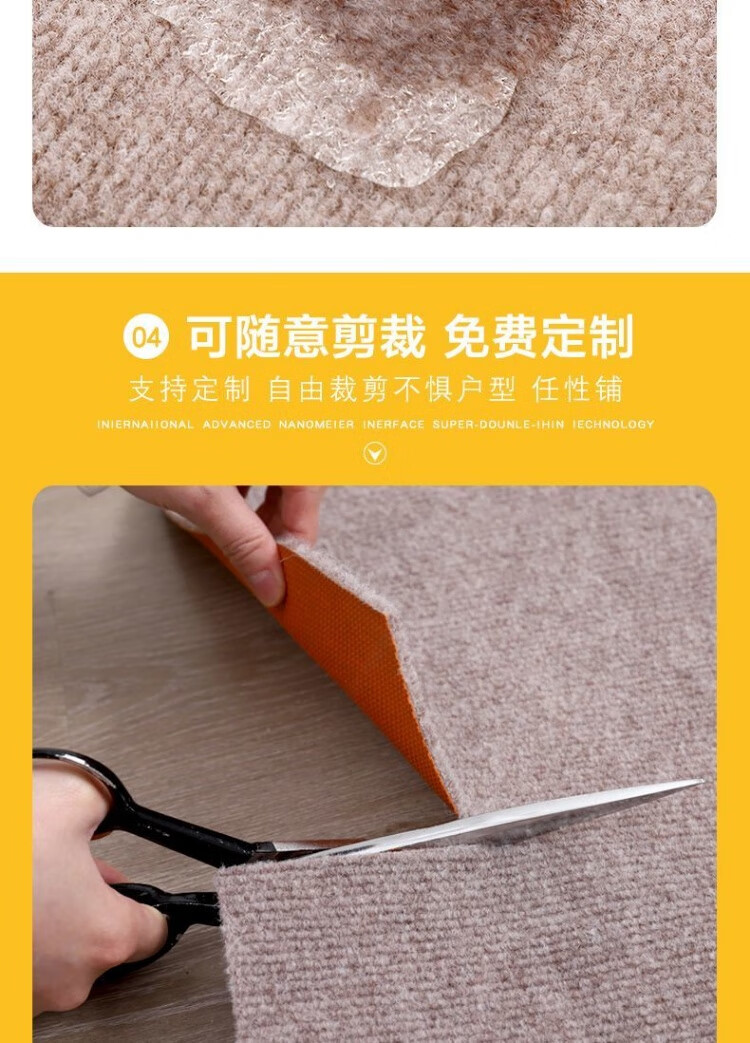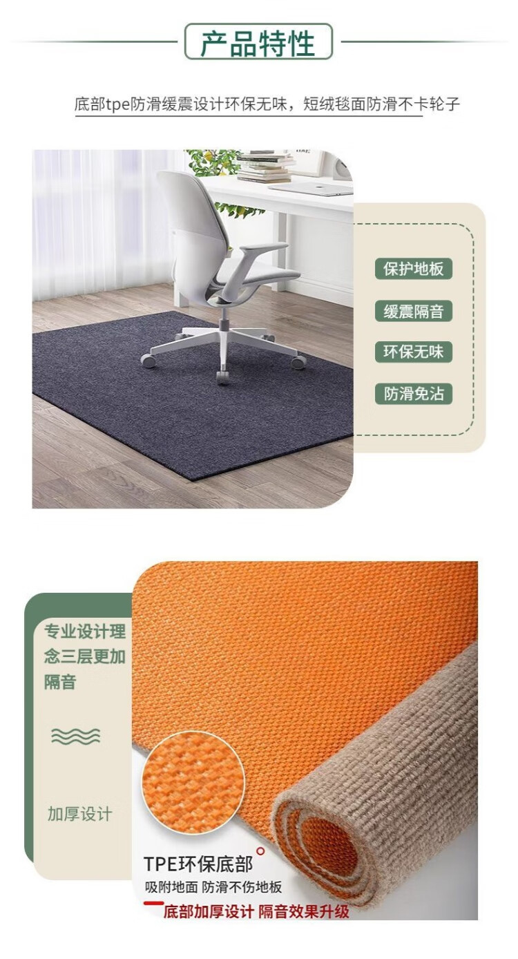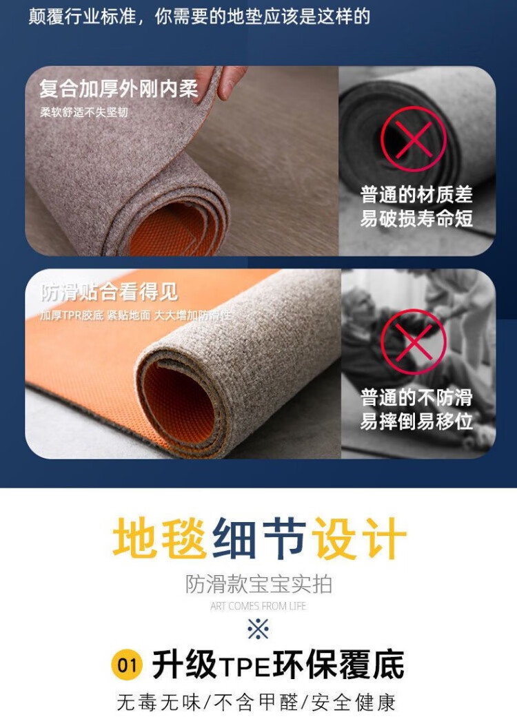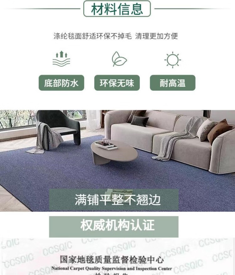 地毯房间卧室客厅大面积全铺办公室TPE防滑隔音耐脏可裁剪地毯 米驼细条纹防滑TPE加厚 2米宽*6米长