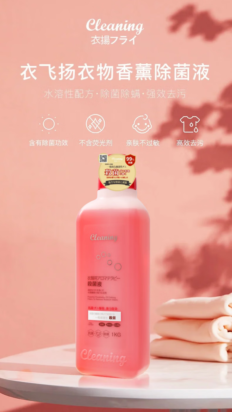 衣飞扬日本小林衣物消毒液香氛衣物除菌液除螨同洗衣液搭配孕妇宝宝可用 衣物香氛除菌液1kg*1瓶