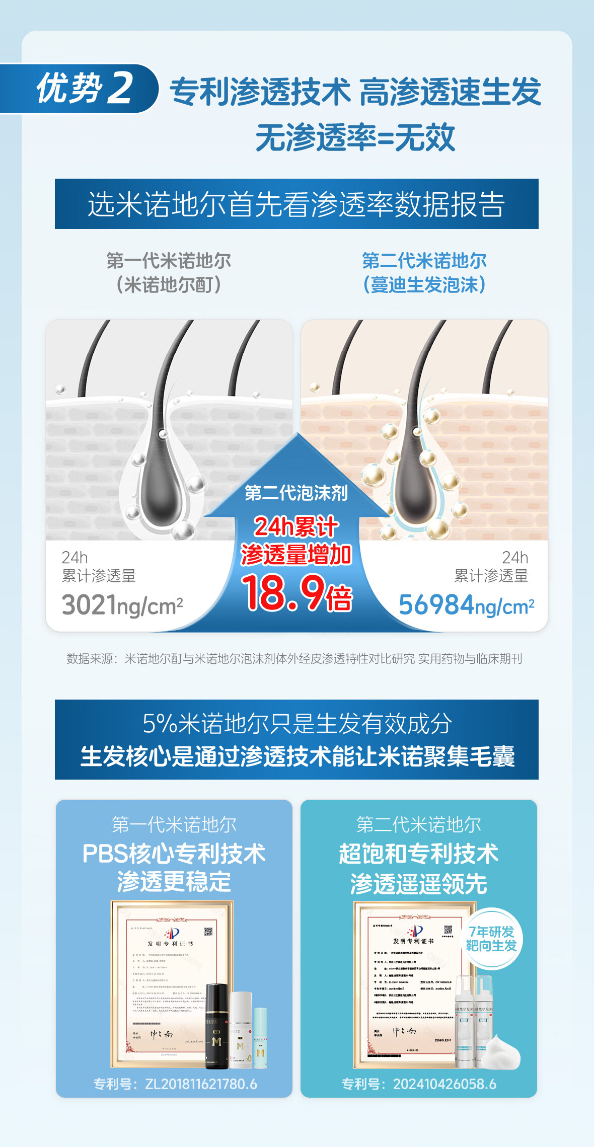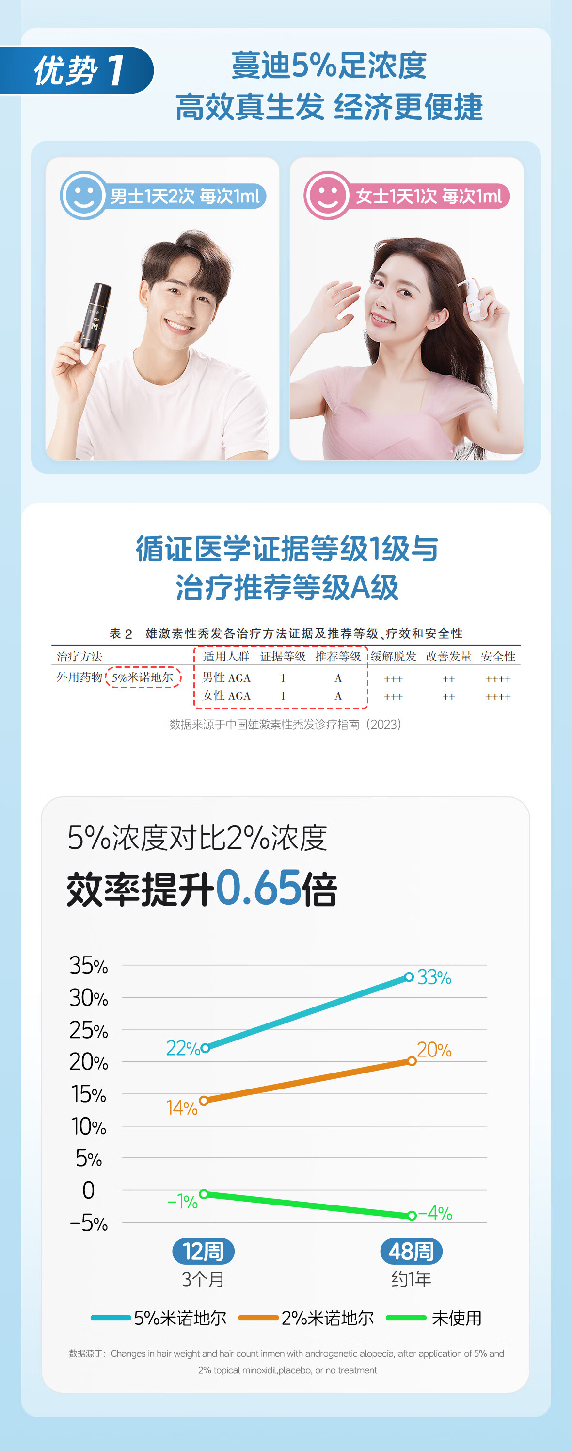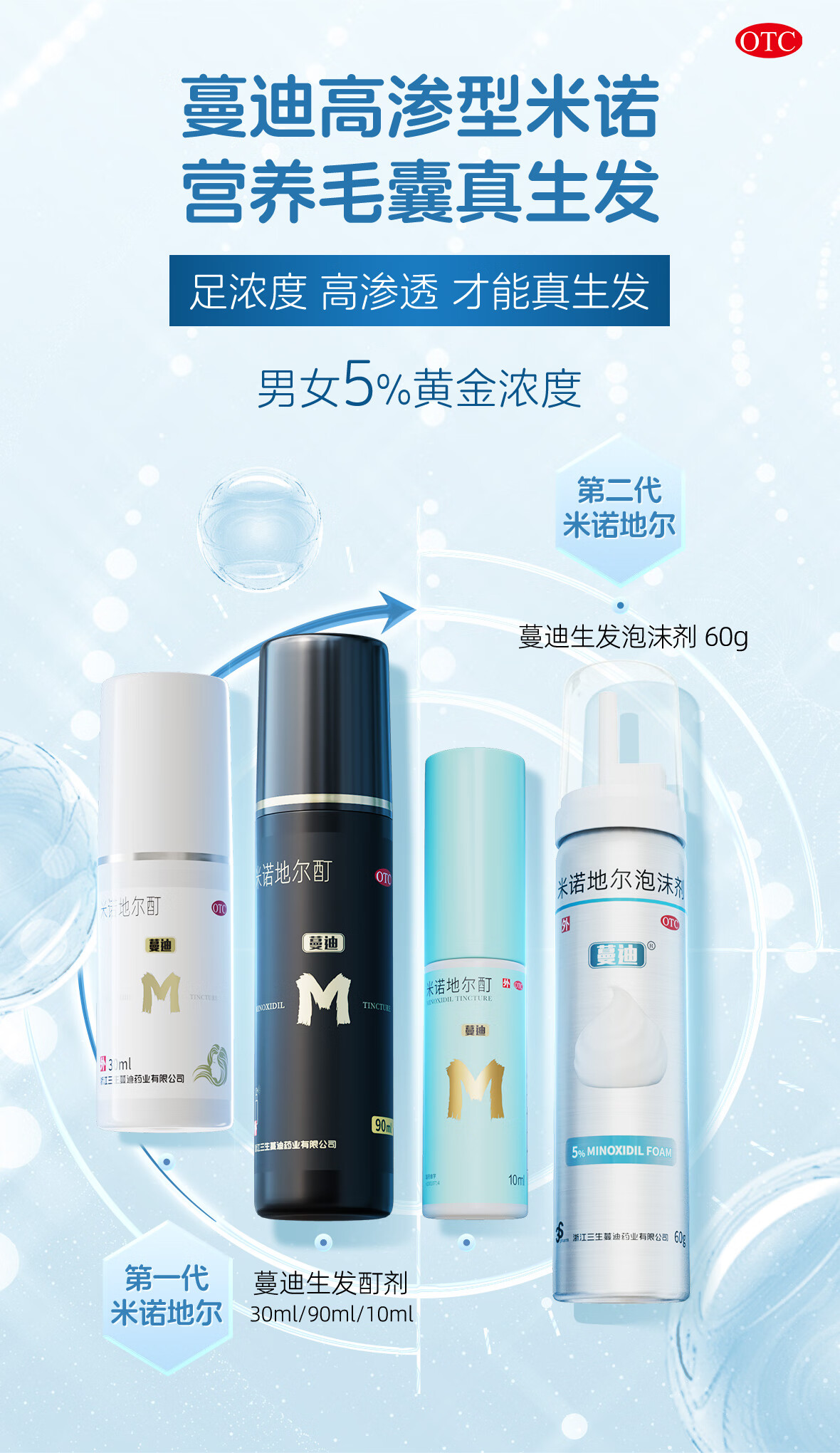[蔓迪]米诺地尔酊 5%*90ml*2瓶 1盒装 5%浓度治脱生发增发液喷雾男女士曼迪防脱发严重脱发秃发育发液治疗脱发斑秃防脱育发 男士3个月用量