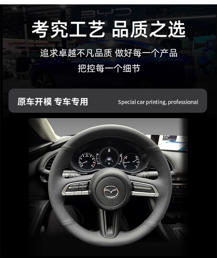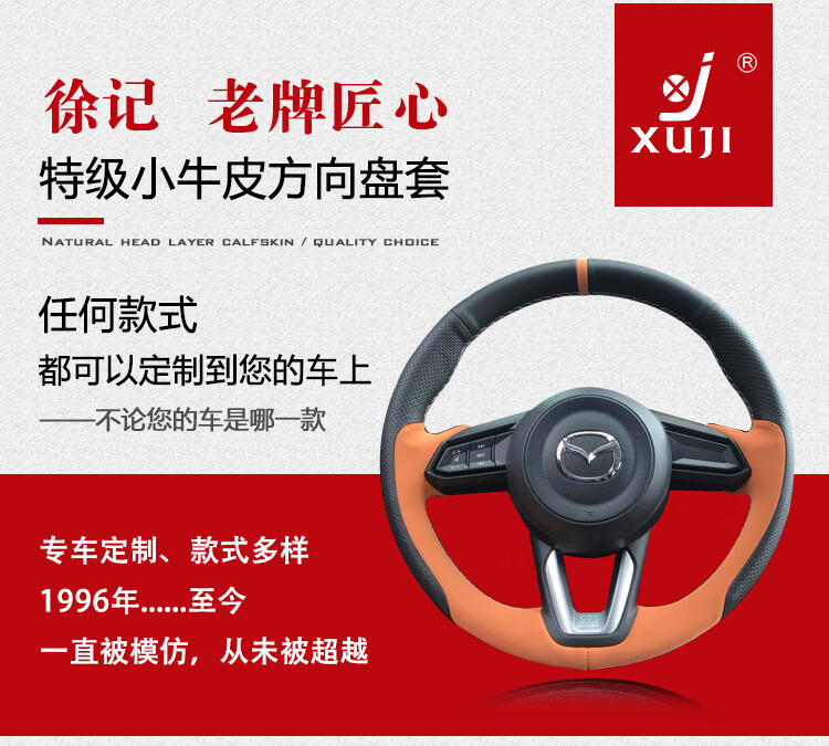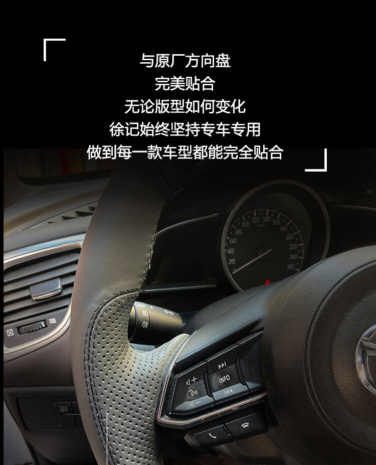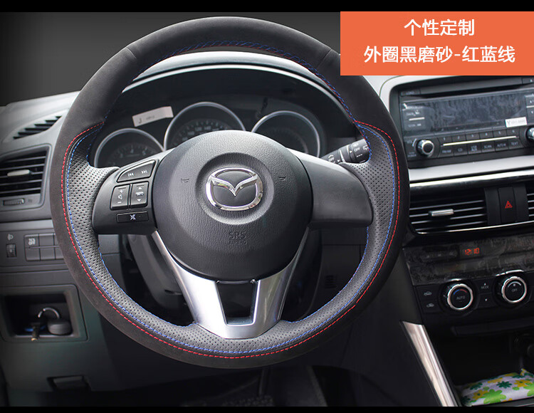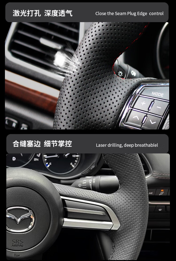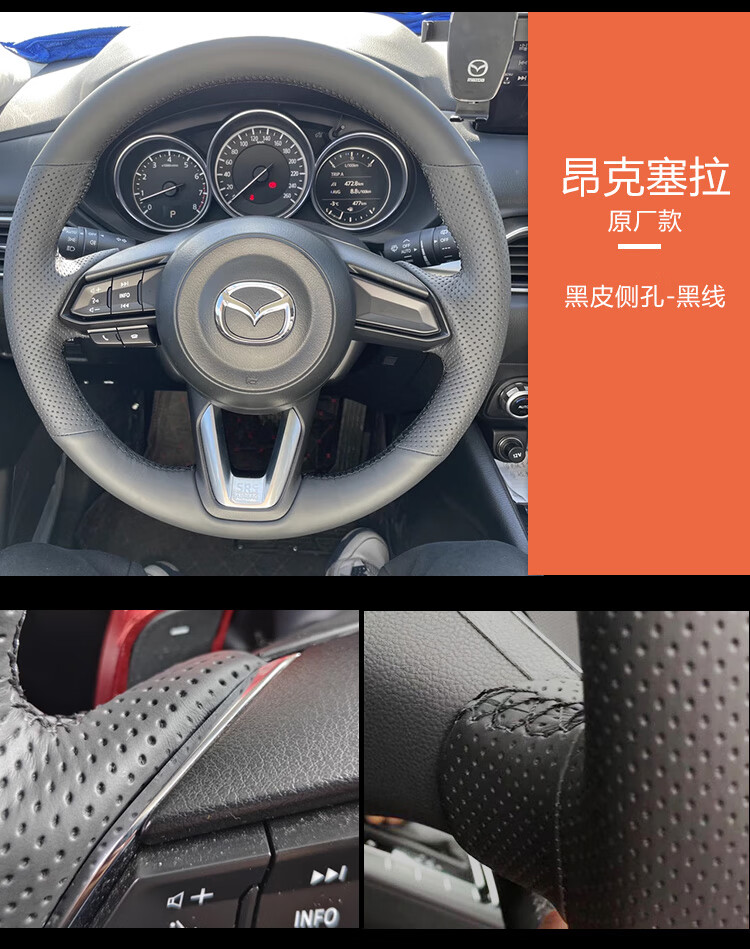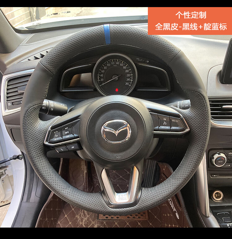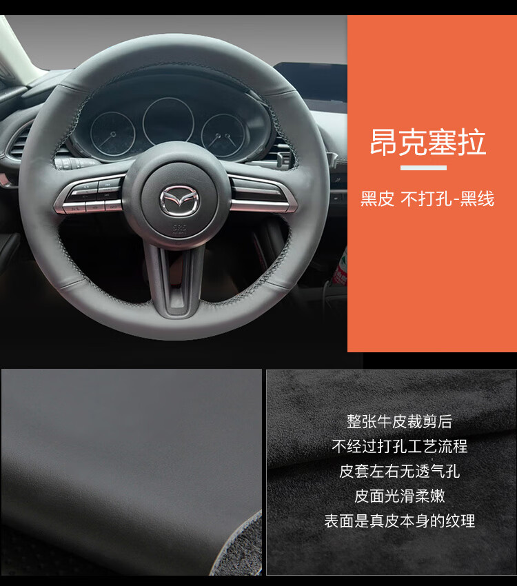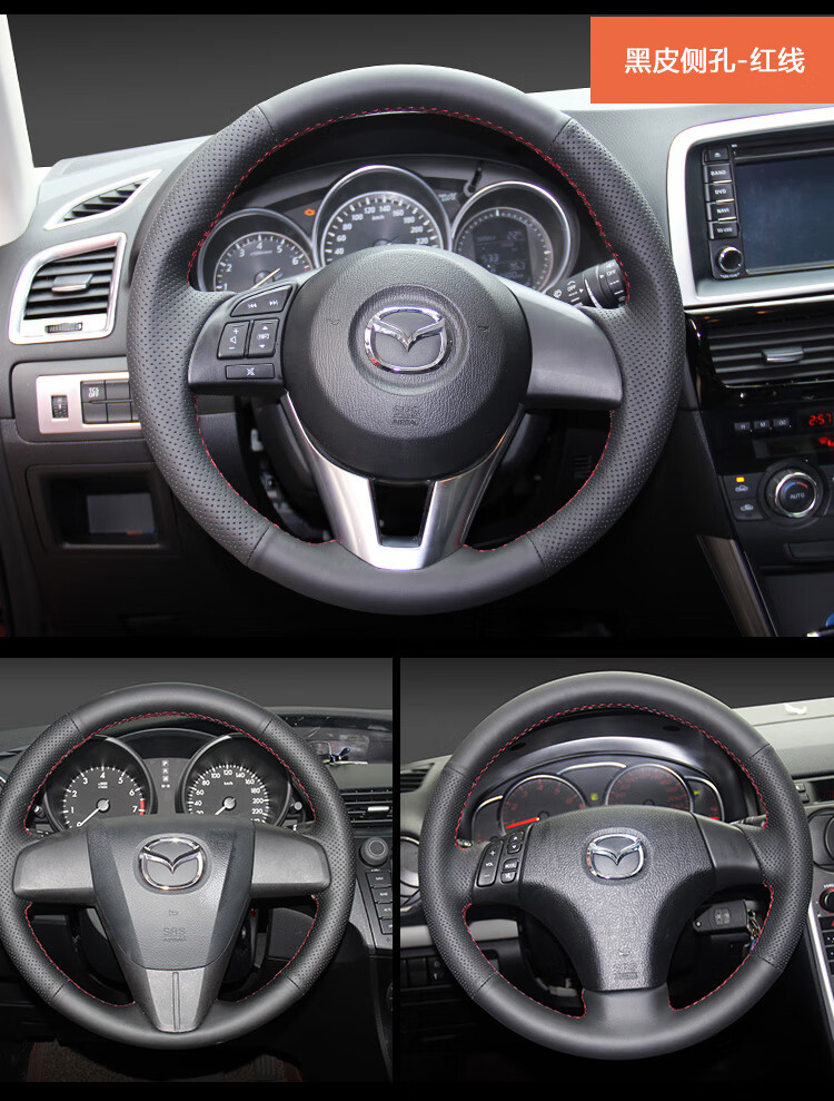 徐记方向盘套适用马自达3 昂克赛拉CX-4阿特兹CX-50 CX-8手缝真皮EZ-6 黑皮侧孔-黑线 马自达所有车型可购买