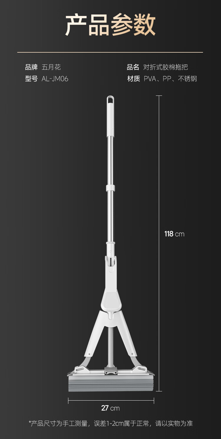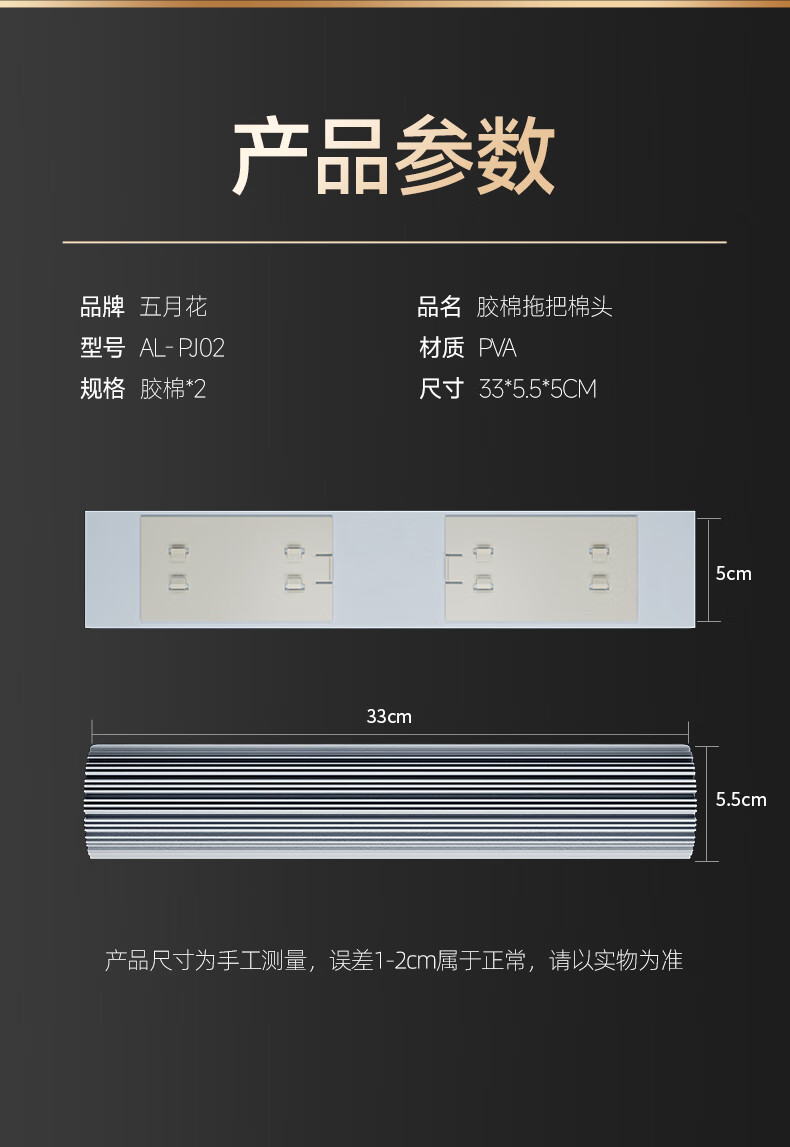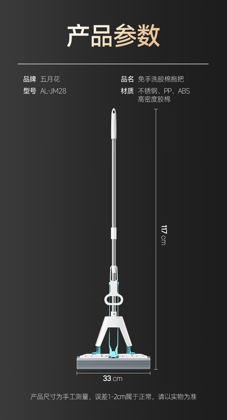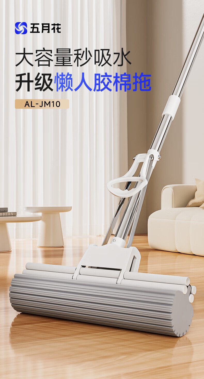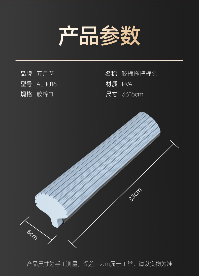 五月花【甄选厂家】(原尔蓝)拖把胶棉滚轮拖把海绵拖把拖布家用对折式二 AL-PJ02对折胶棉头2个33cm