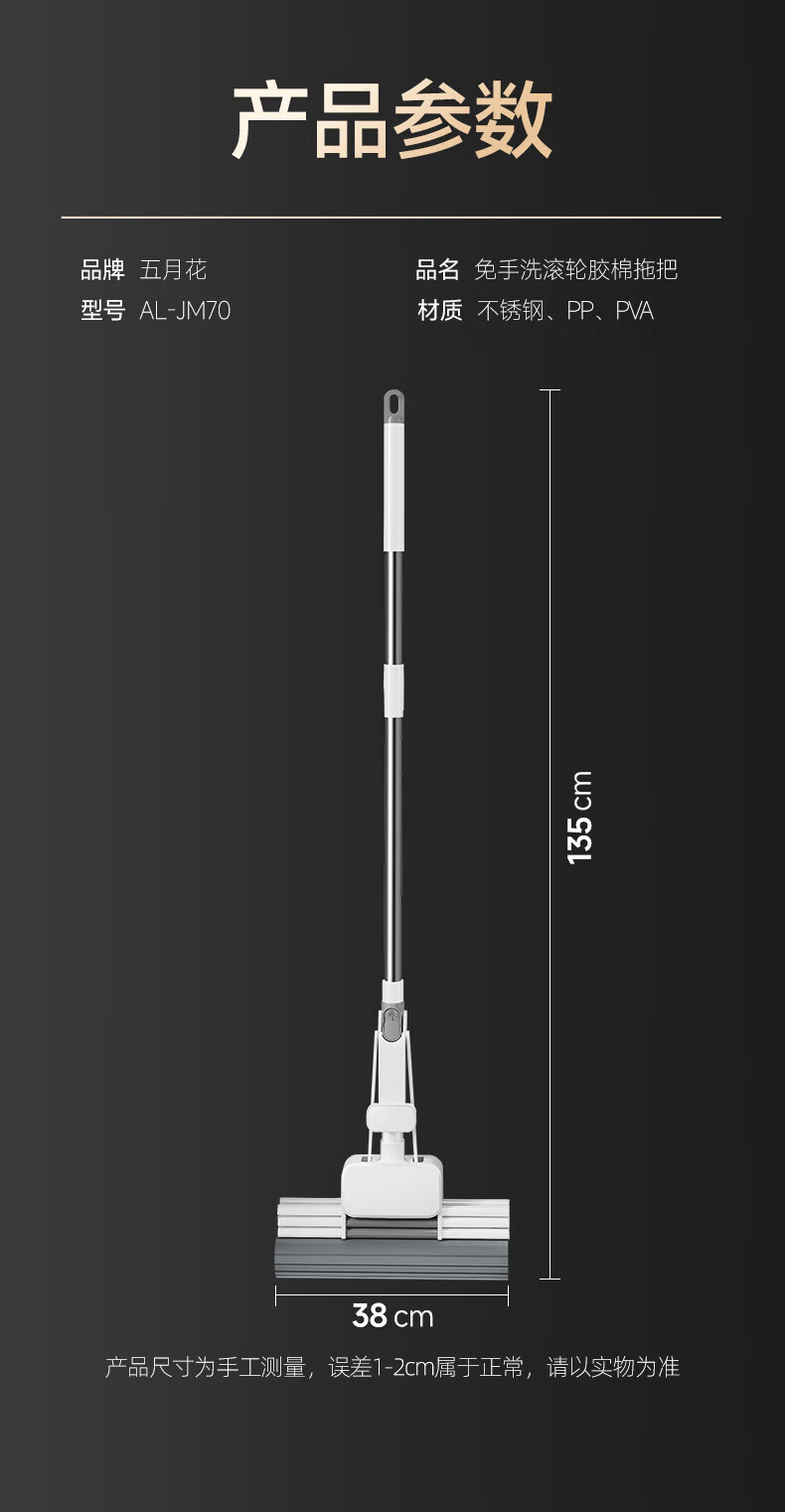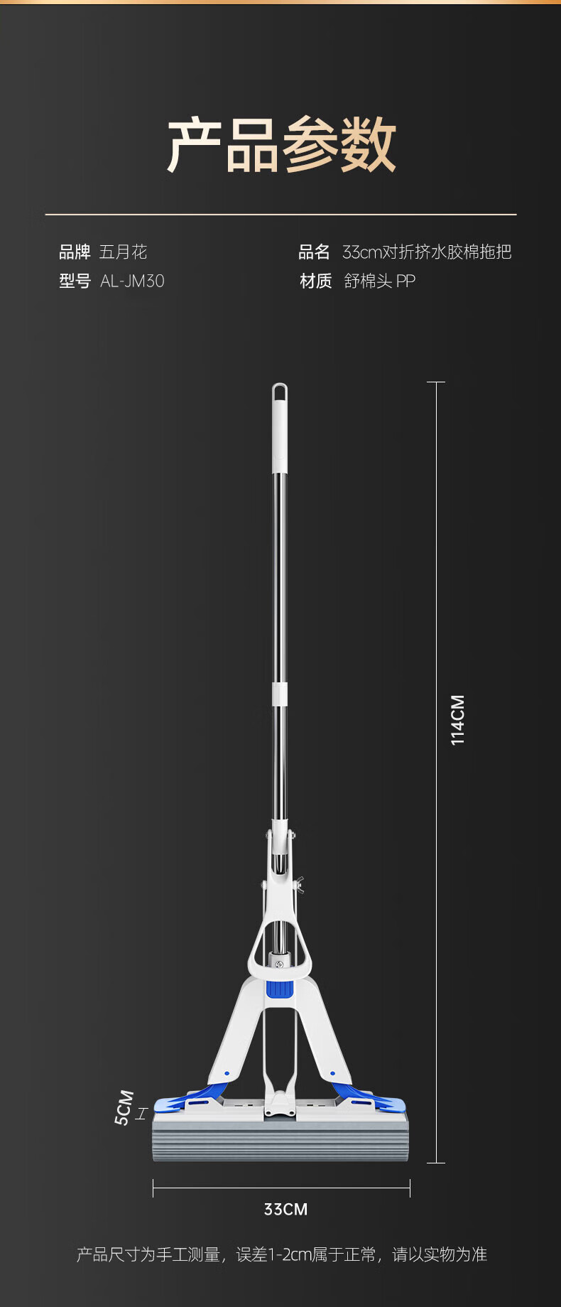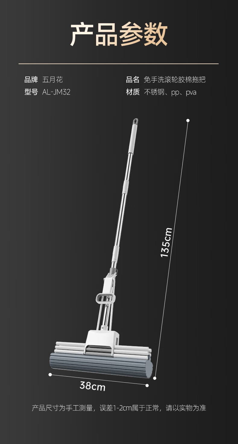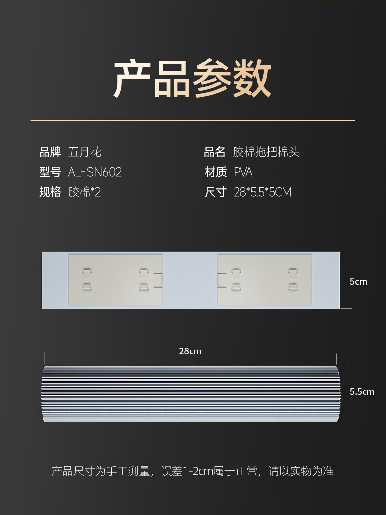 五月花【甄选厂家】(原尔蓝)拖把胶棉滚轮拖把海绵拖把拖布家用对折式二 AL-PJ02对折胶棉头2个33cm