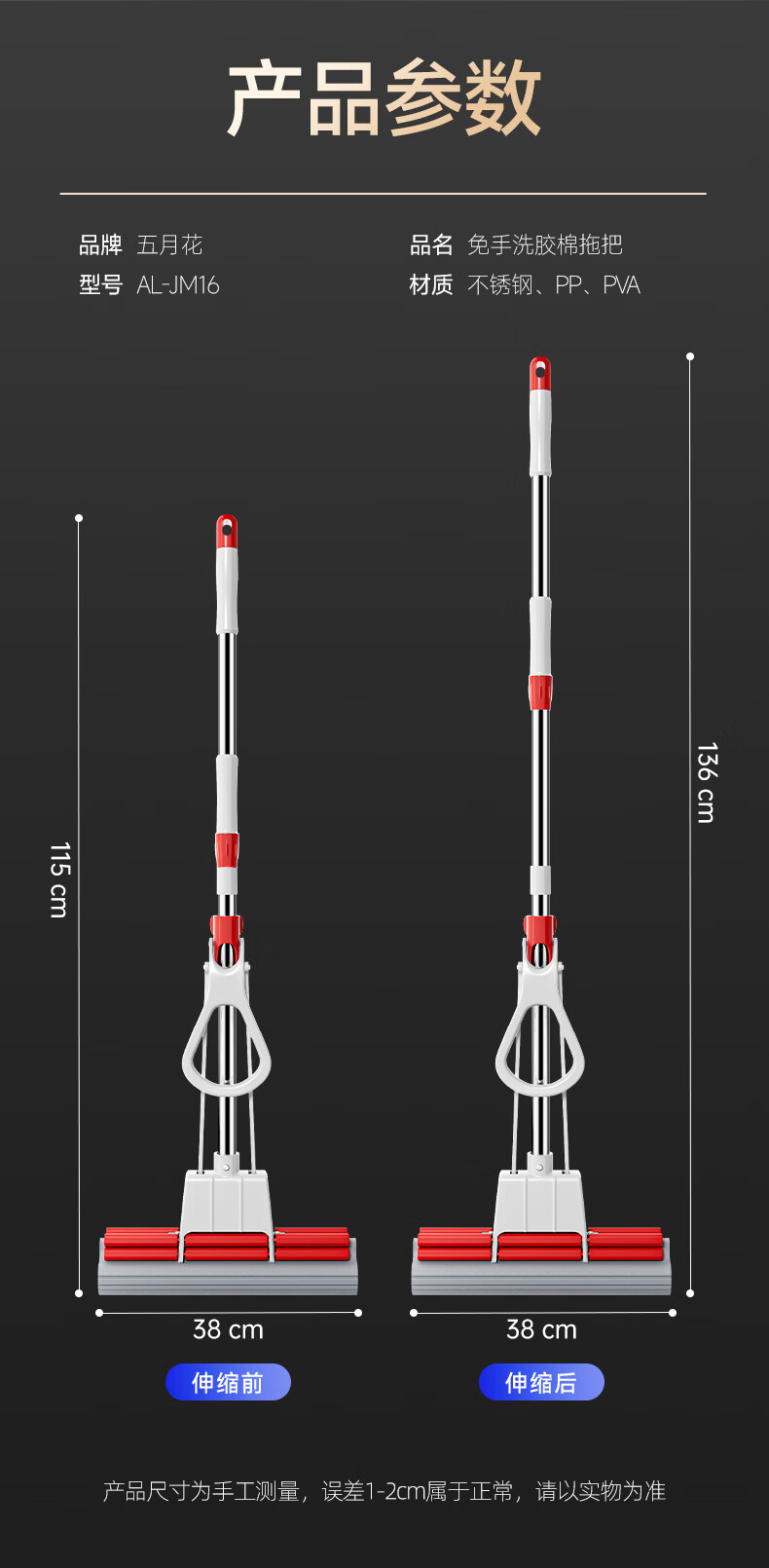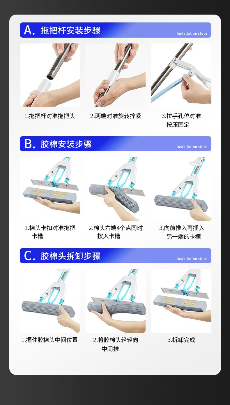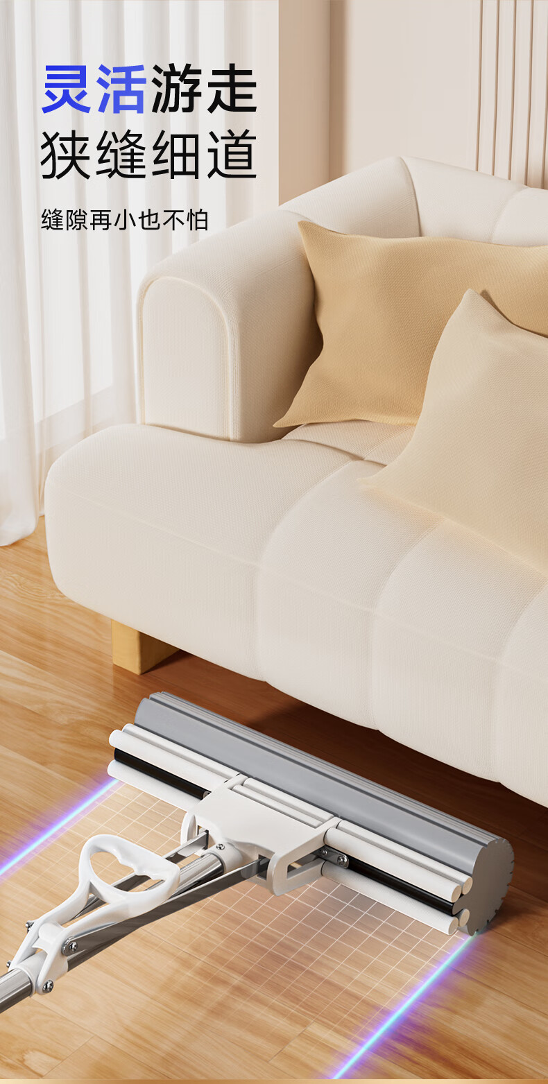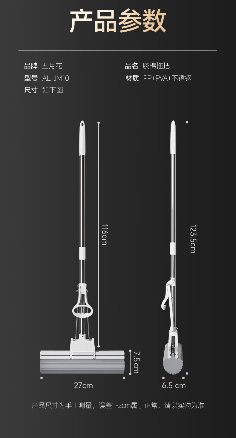 五月花【甄选厂家】(原尔蓝)拖把胶棉滚轮拖把海绵拖把拖布家用对折式二 AL-PJ02对折胶棉头2个33cm