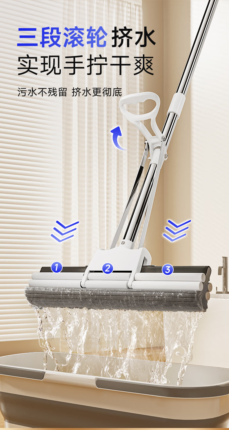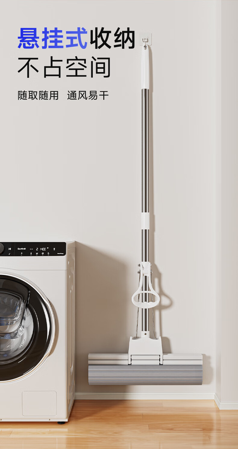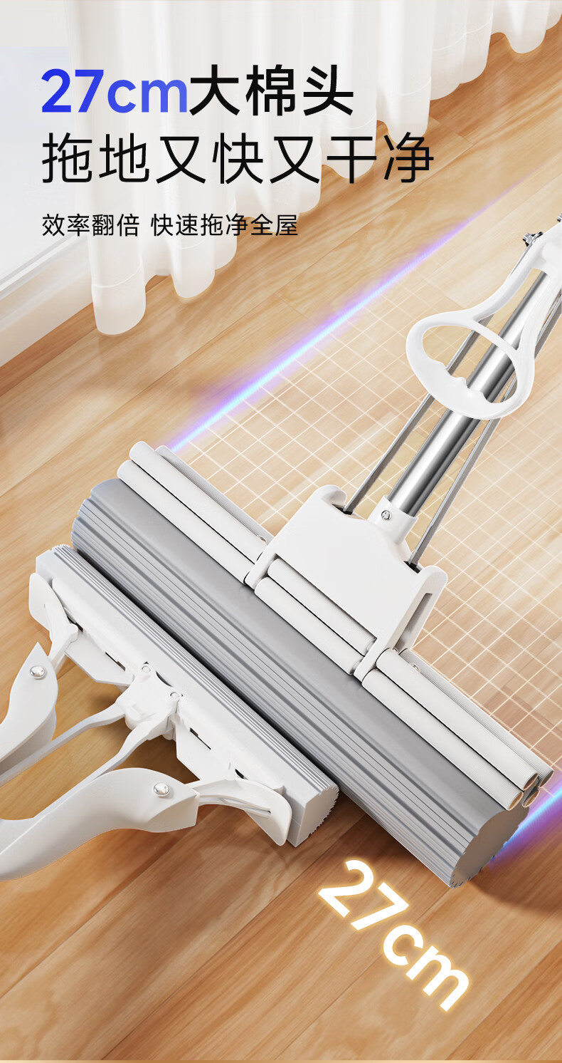 美丽雅胶棉拖把 家用免手洗对折挤水吸水懒人拖地神器海绵拖把 黑金刚胶棉拖把28CM【共1拖头】