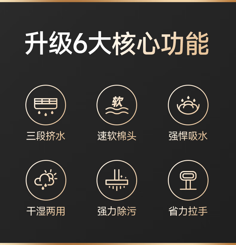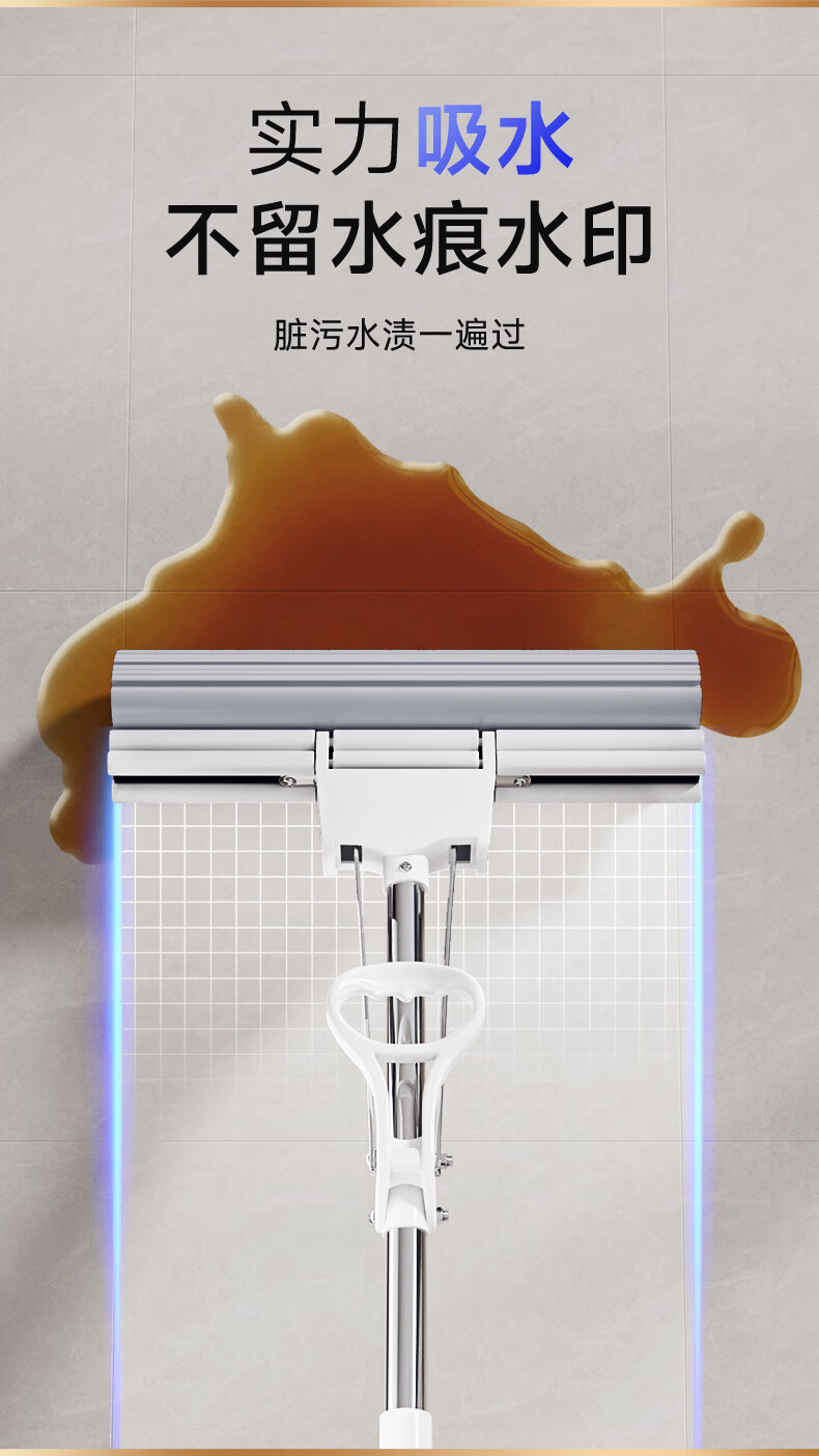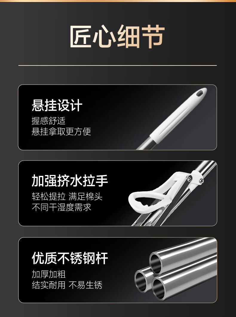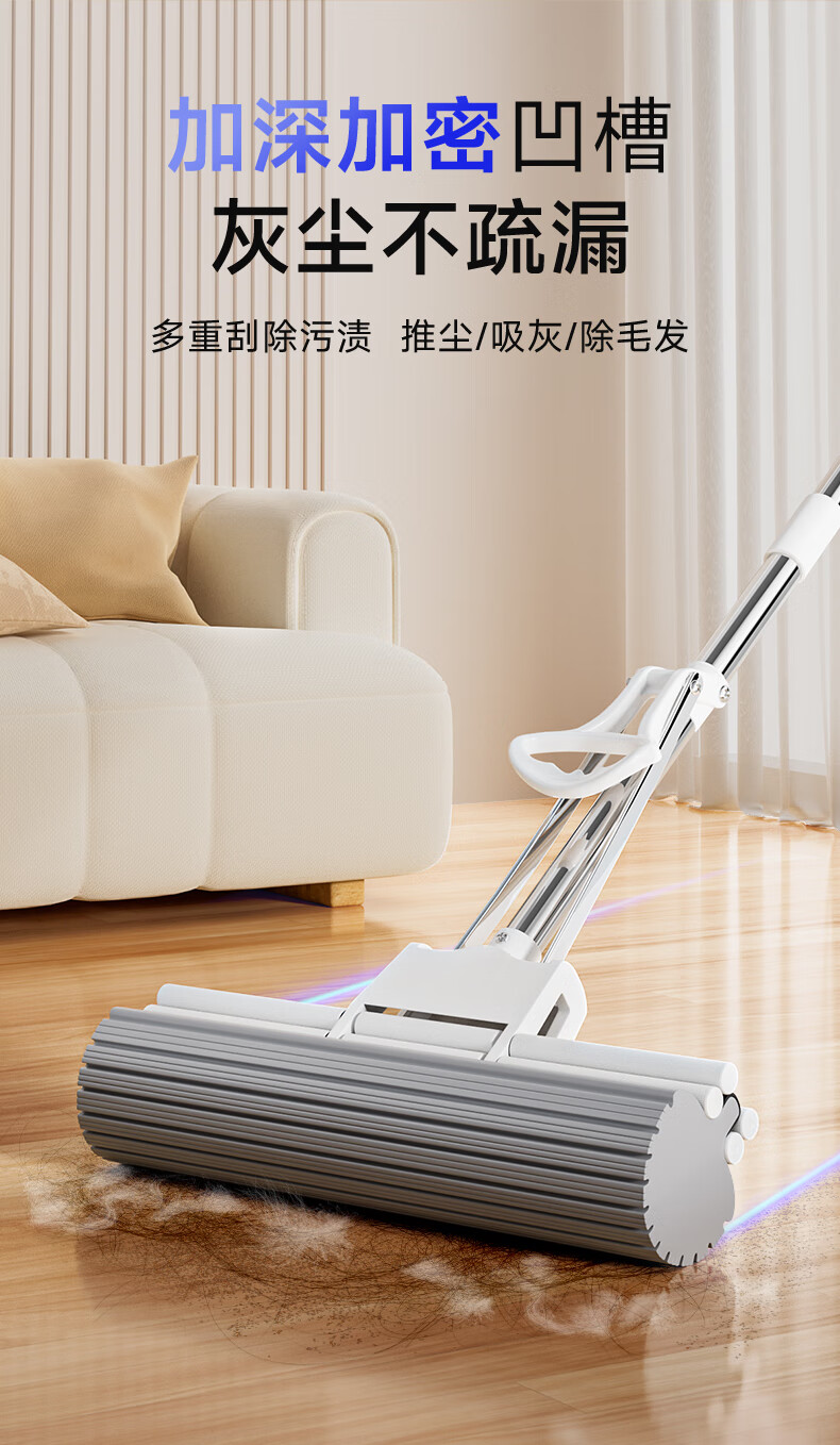 美丽雅胶棉拖把 家用免手洗对折挤水吸水懒人拖地神器海绵拖把 黑金刚胶棉拖把28CM【共1拖头】