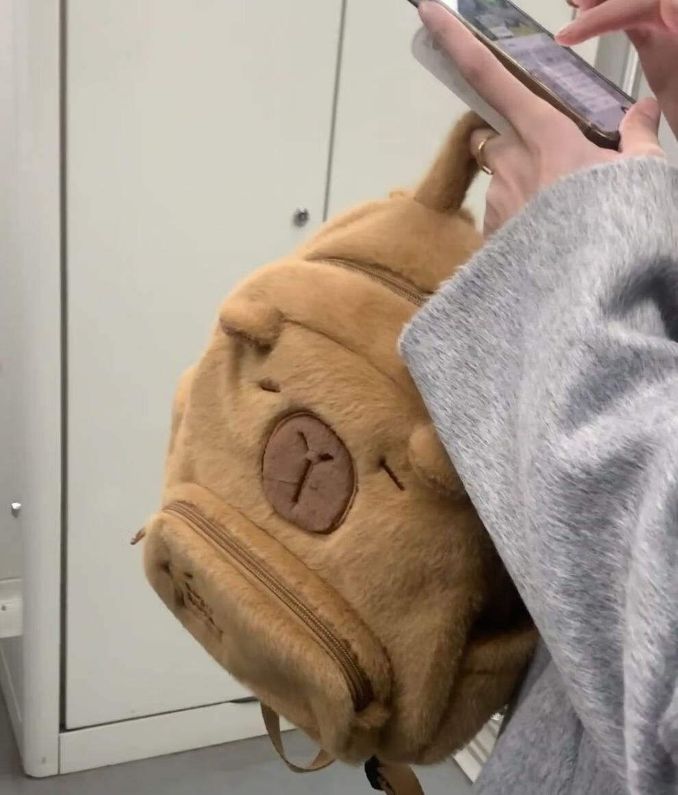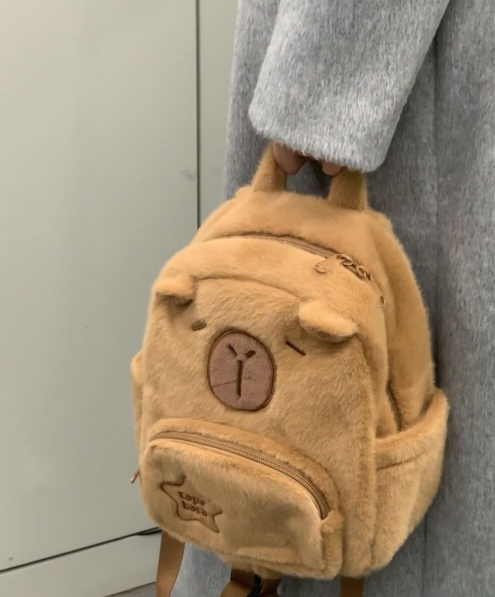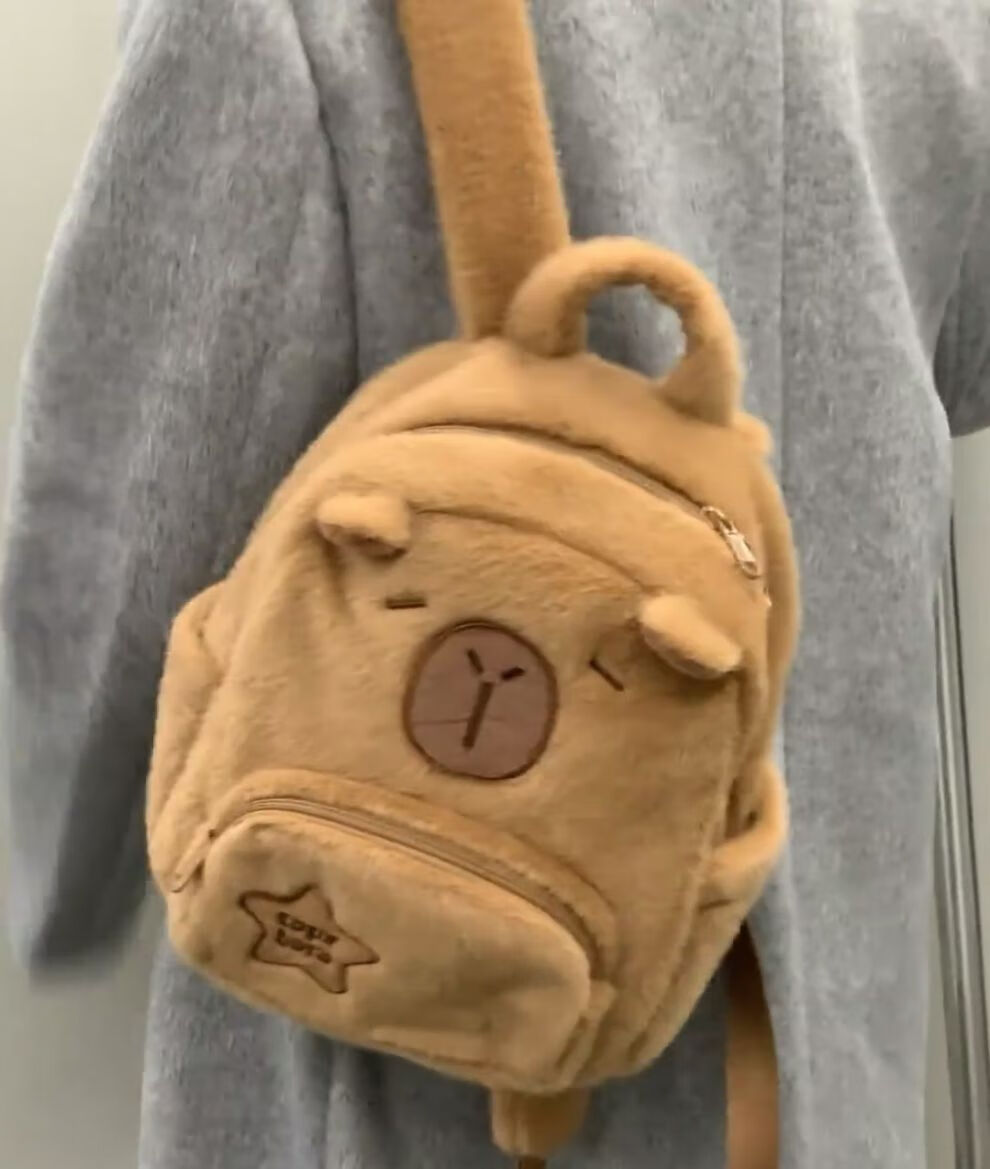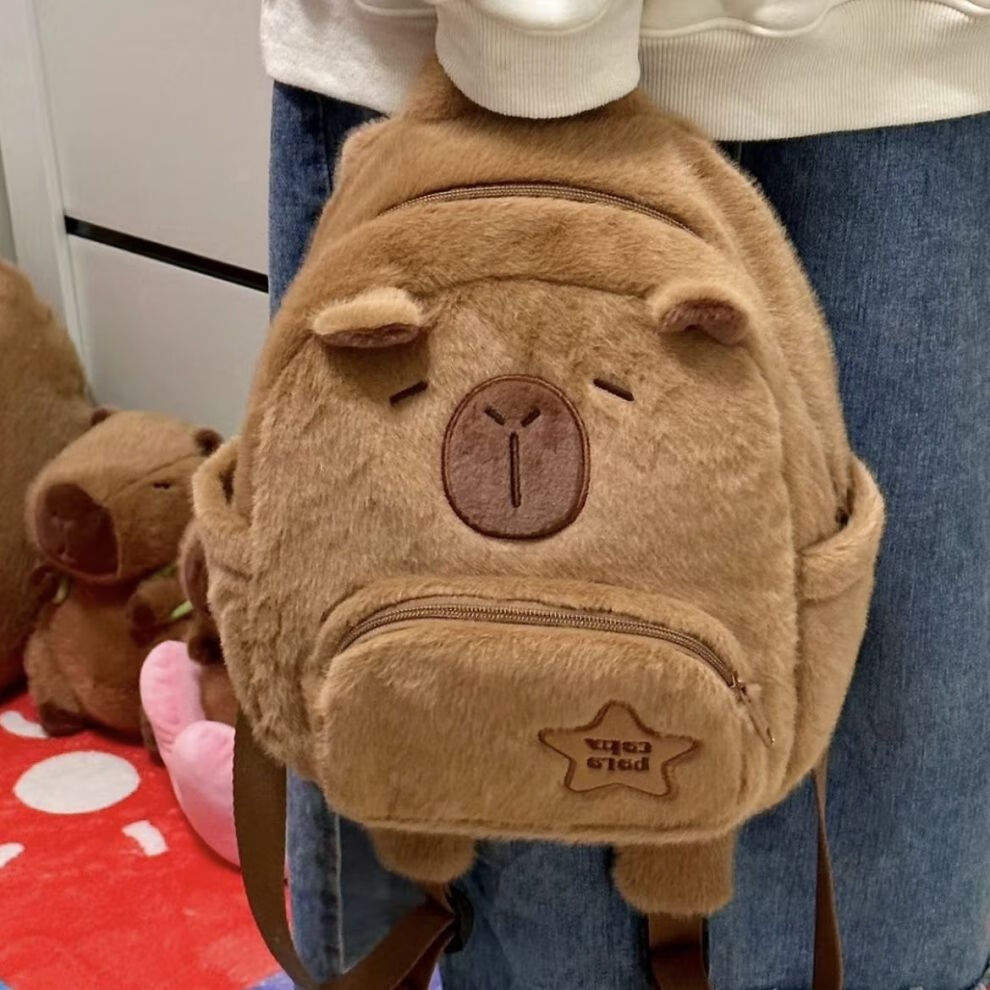 迪士尼(Disney)减负护脊卡皮巴拉毛绒水豚包包双肩女大容量新款2023秋冬可爱书包 水豚背包 35x30