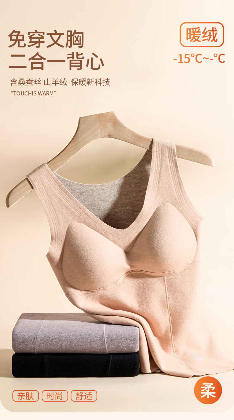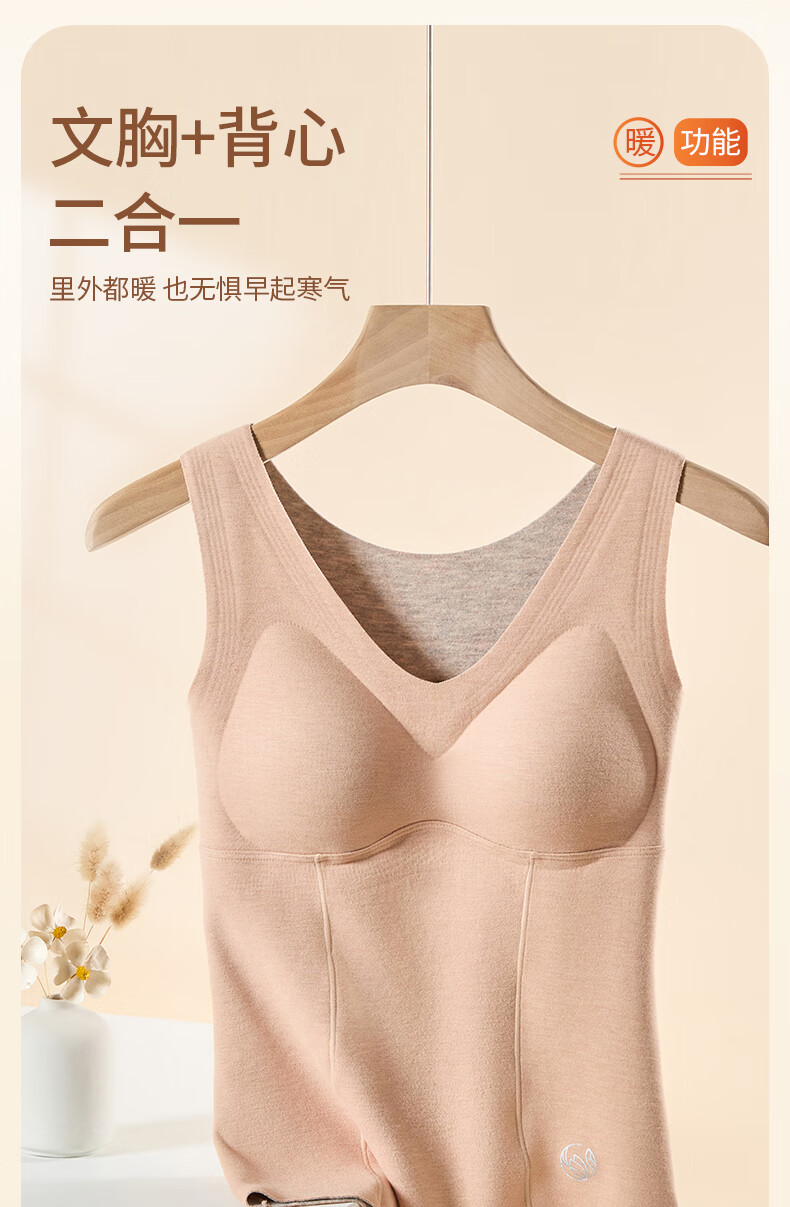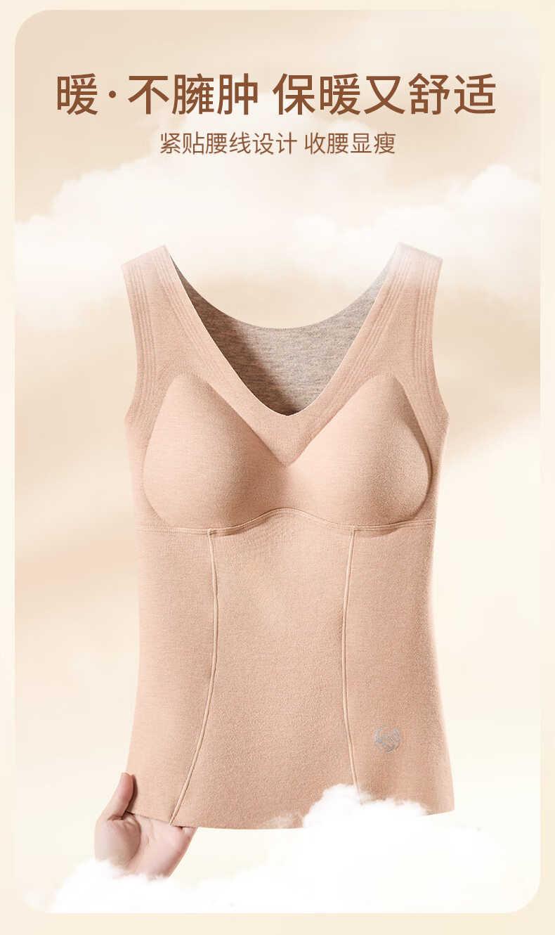 古今(GUJIN)保暖背心女内搭带胸垫秋冬高级感短款打底无痕遮肚子可外穿修身 肤色【胸垫可拆】 含羊绒蚕丝 XL 建议体重120-135斤