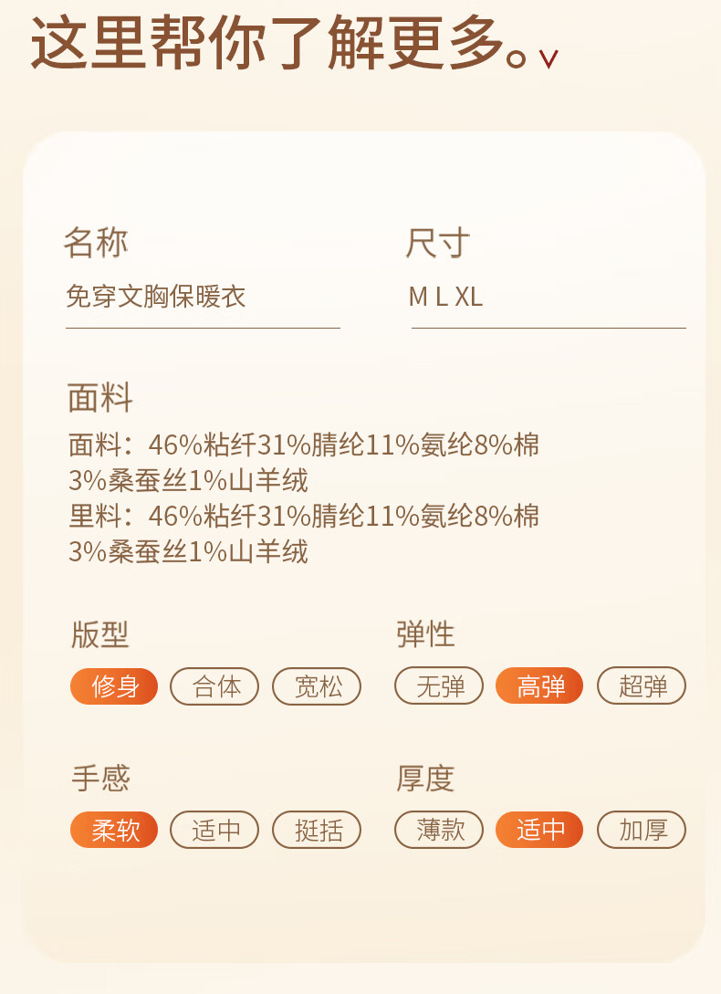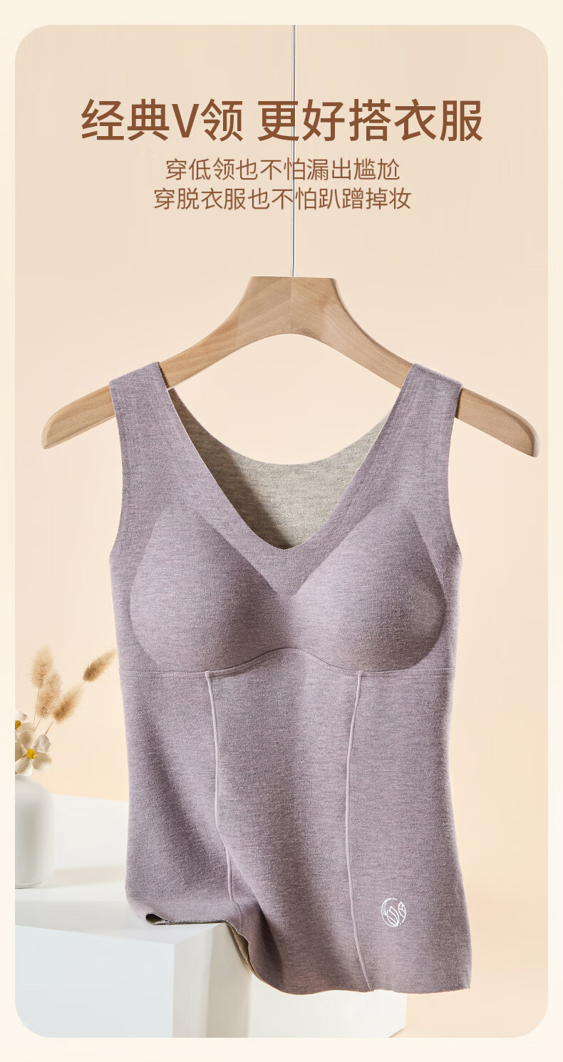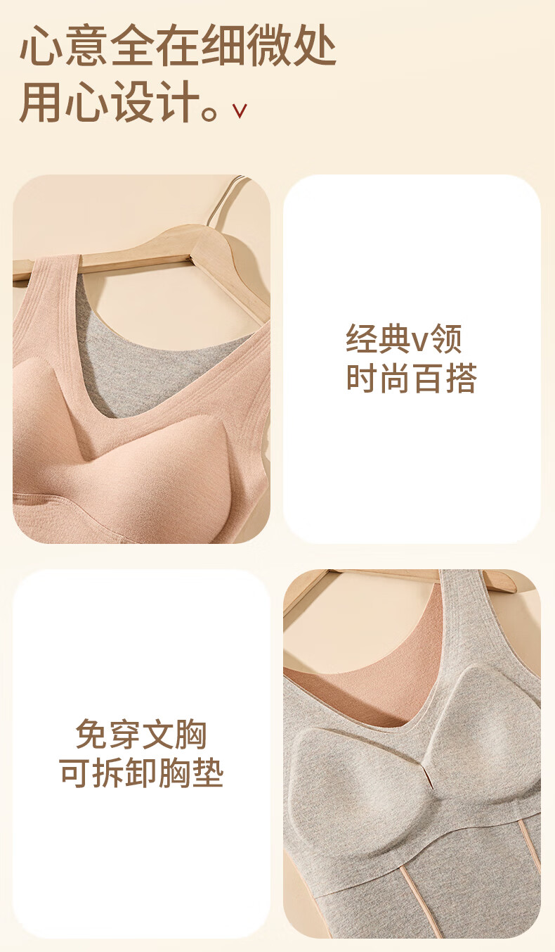 古今(GUJIN)保暖背心女内搭带胸垫秋冬高级感短款打底无痕遮肚子可外穿修身 肤色【胸垫可拆】 含羊绒蚕丝 XL 建议体重120-135斤