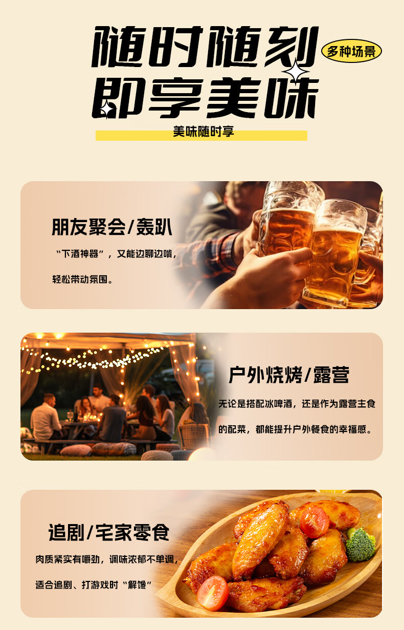 禾豊风味烤翅奥尔良空气炸锅鸡翅中翅根解馋追剧美食半成品顺丰 风味烤翅3袋装(共840g)