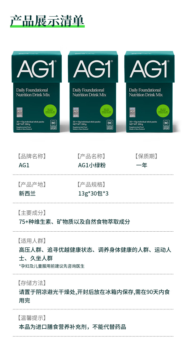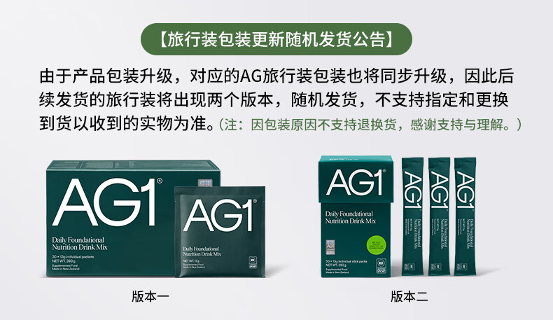 Athletic Greens新升级新西兰AG1小绿粉多合一基底营养维生素益生菌送礼礼品礼盒 新升级30天旅行装礼盒