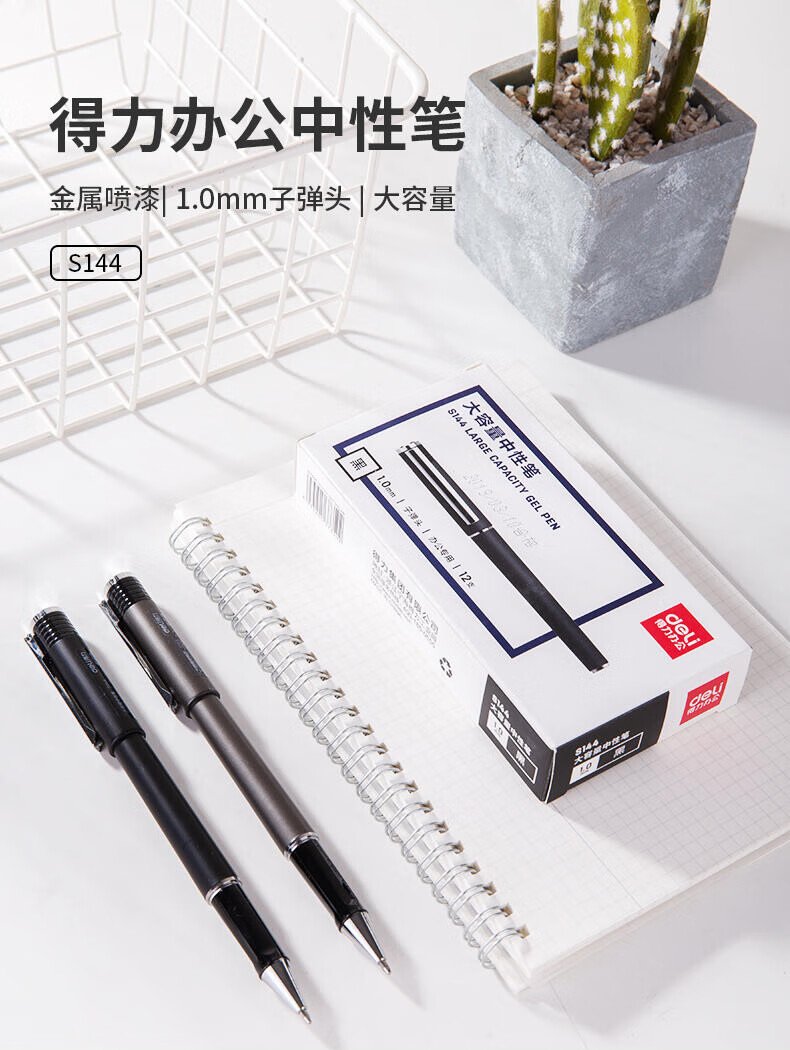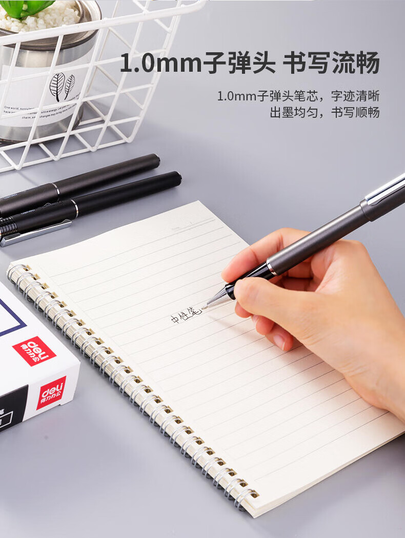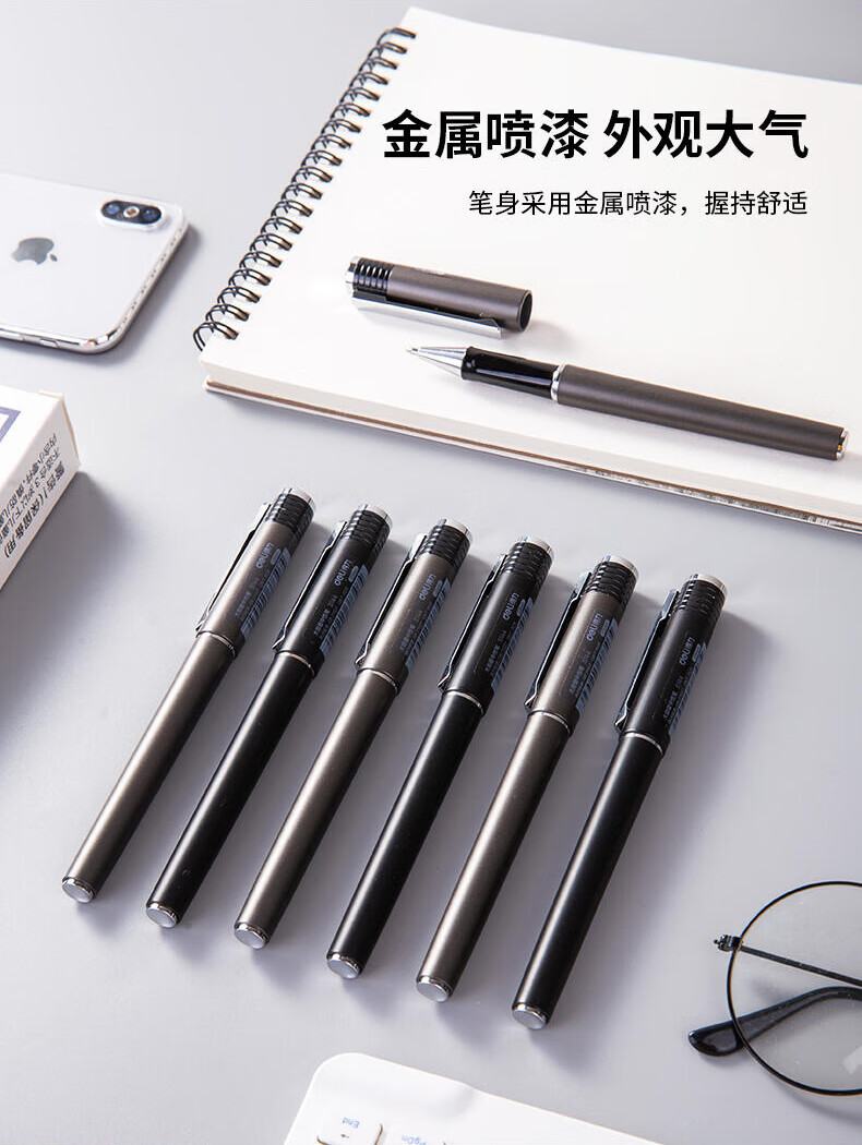 得力签字笔商务高档中性笔1.0mm签名笔大容量黑色粗芯水笔男士硬笔字书法练字笔学生子弹头拔帽粗头笔 【10支替芯】大容量 6936