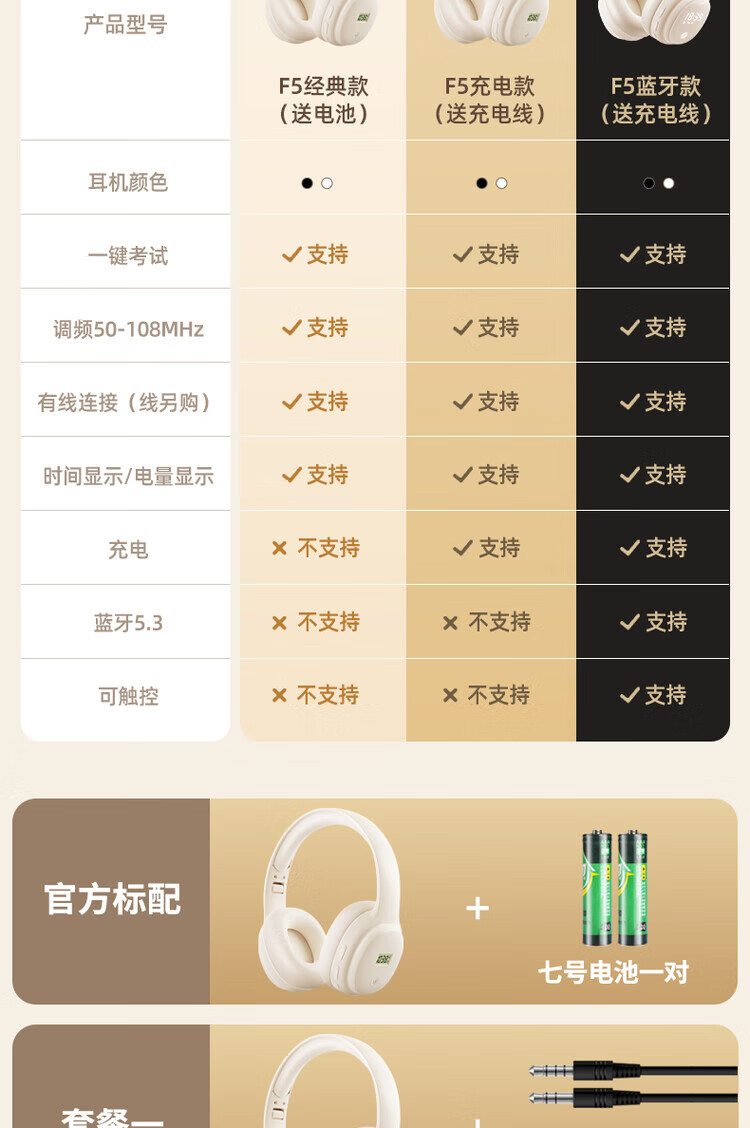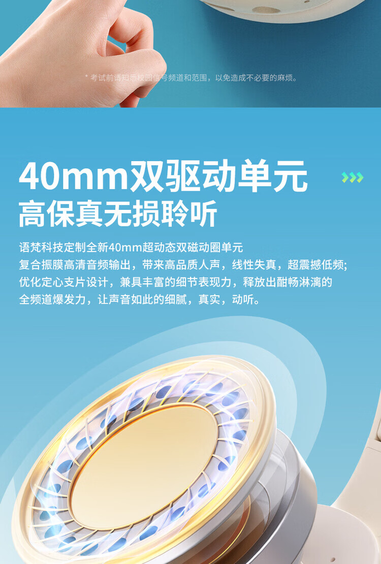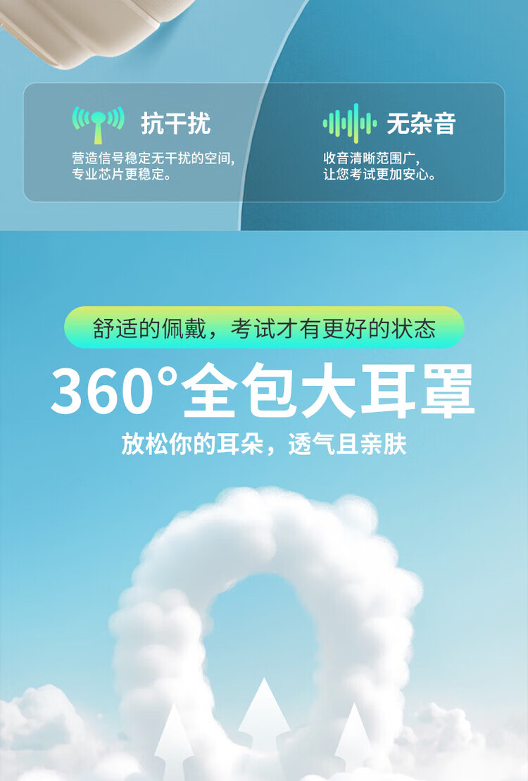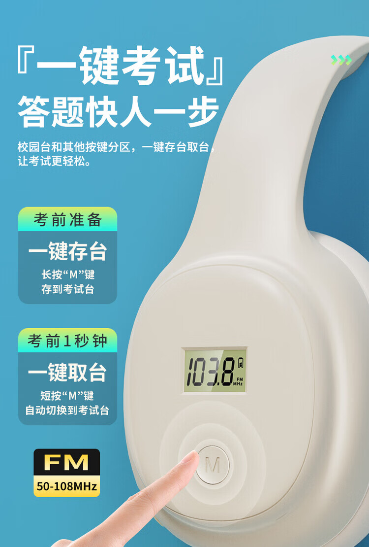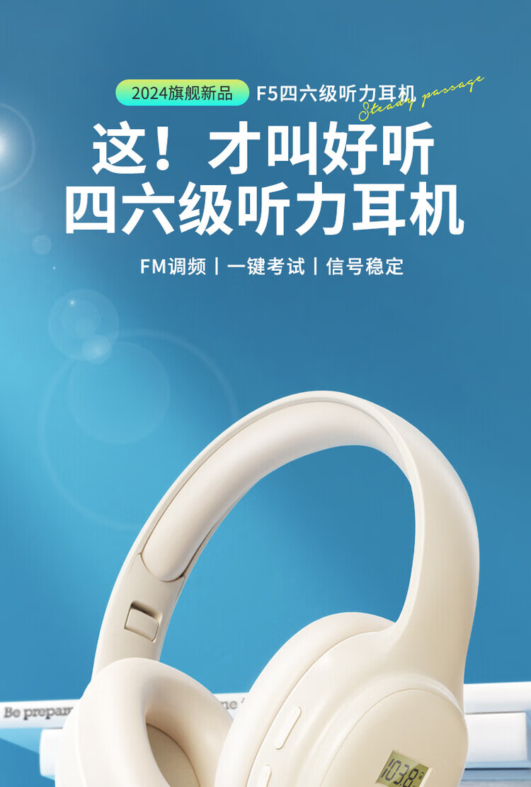 语梵(YUFFUN)英语四六级听力耳机四级大学生调频FM六级4级蓝牙考试头戴式 顶配旗舰款 米白【FM降噪+蓝牙V5.3】送充电线 标配 标配耳机