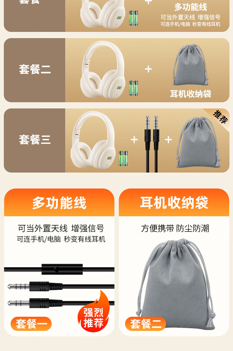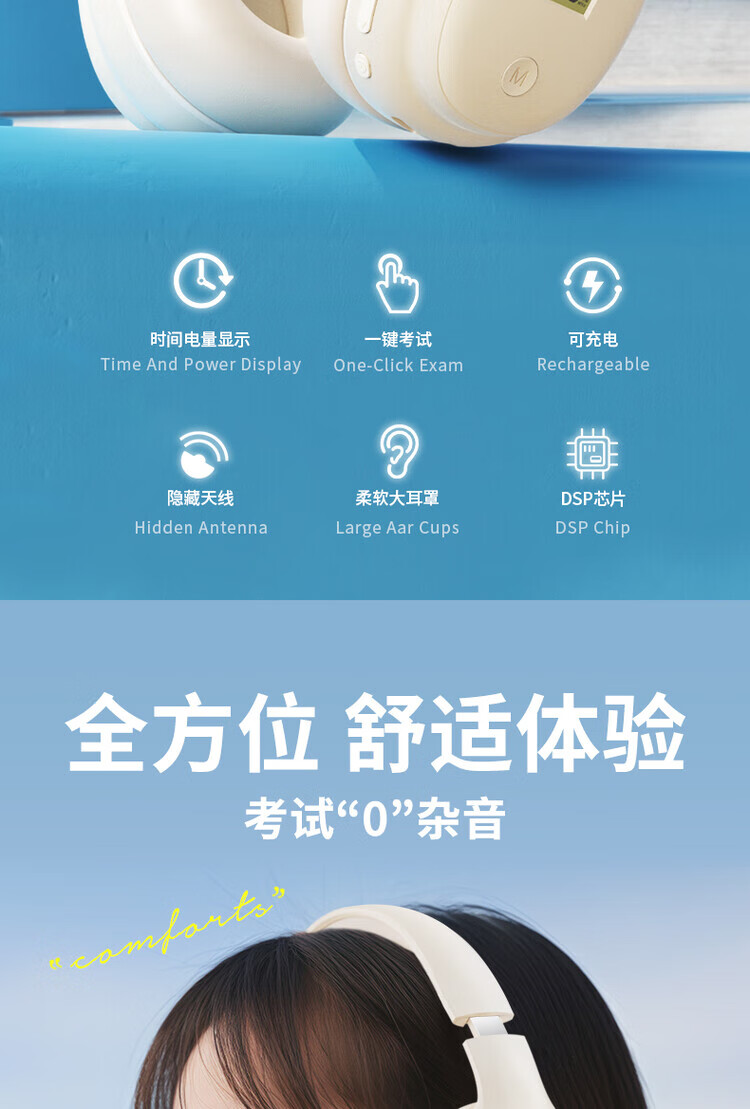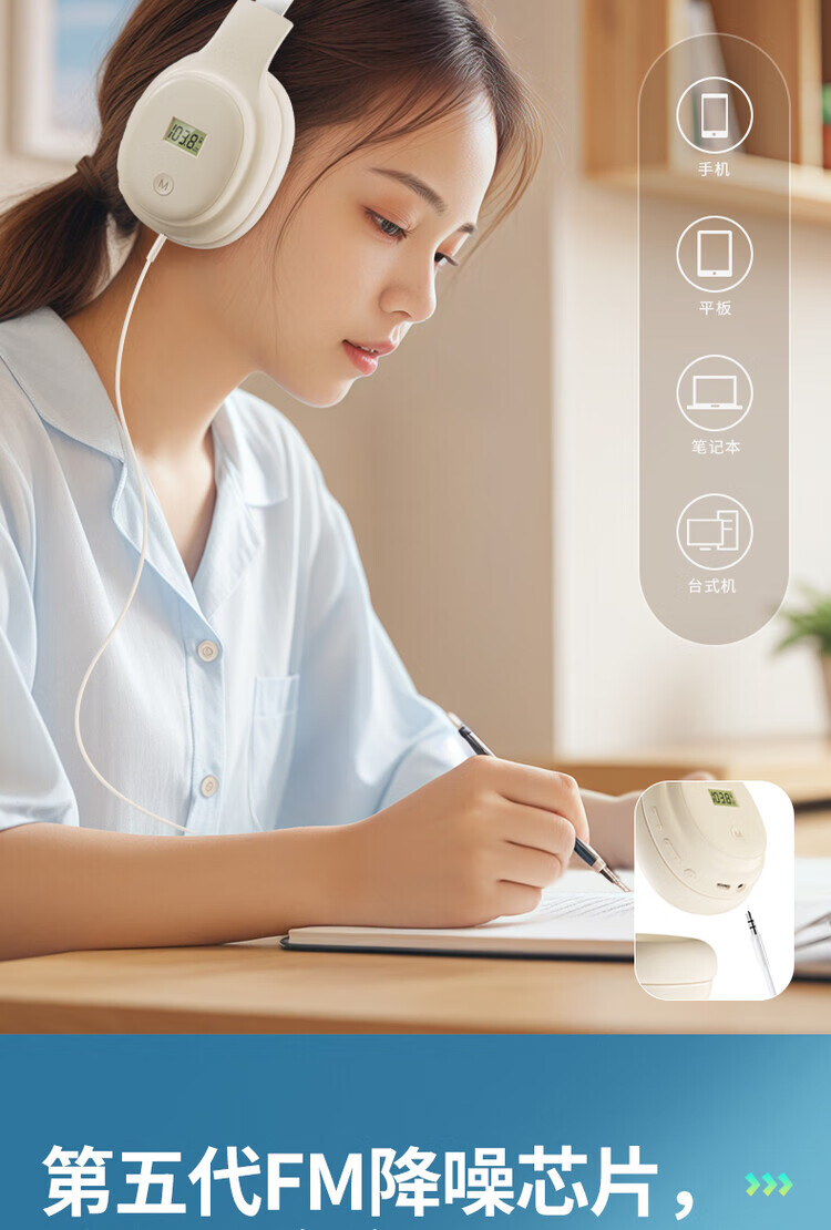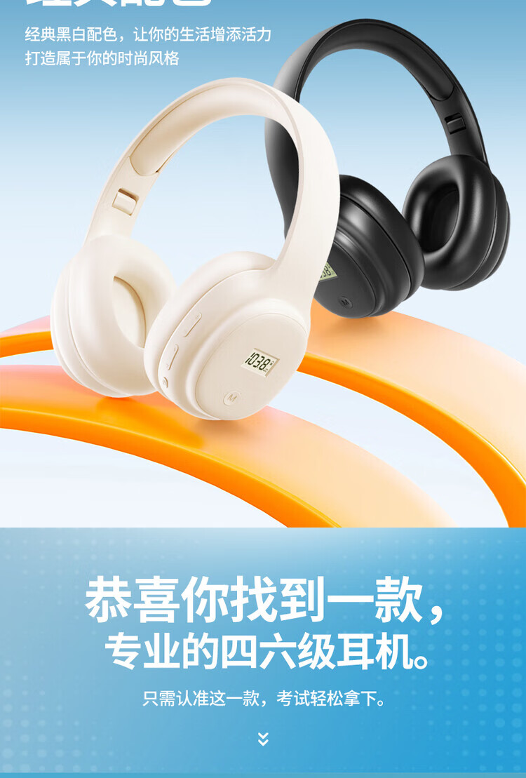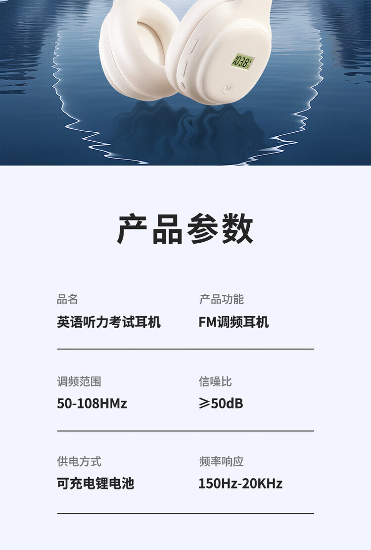 语梵(YUFFUN)英语四六级听力耳机四级大学生调频FM六级4级蓝牙考试头戴式 顶配旗舰款 米白【FM降噪+蓝牙V5.3】送充电线 标配 标配耳机