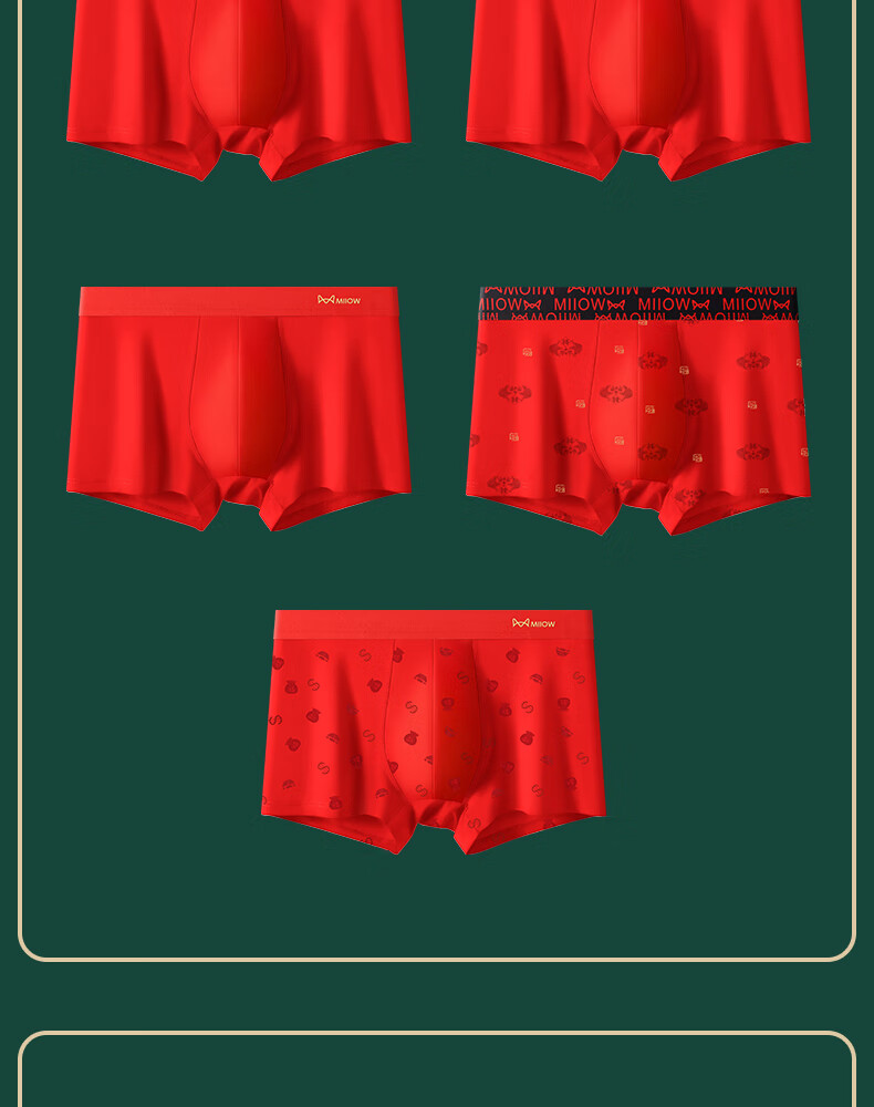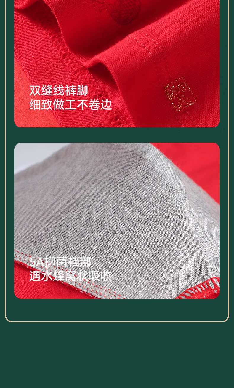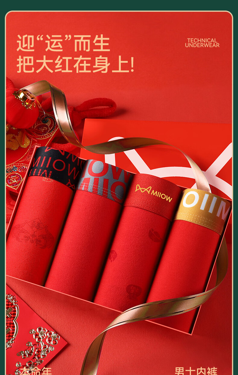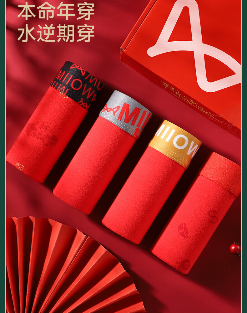 猫人男士内裤本命年新款纯棉中老年红色抑菌新年爸爸底裤短裤 净色/印花/黑巾/两双大红袜【3条装+2双袜子】 2XL 【推荐125-140斤】