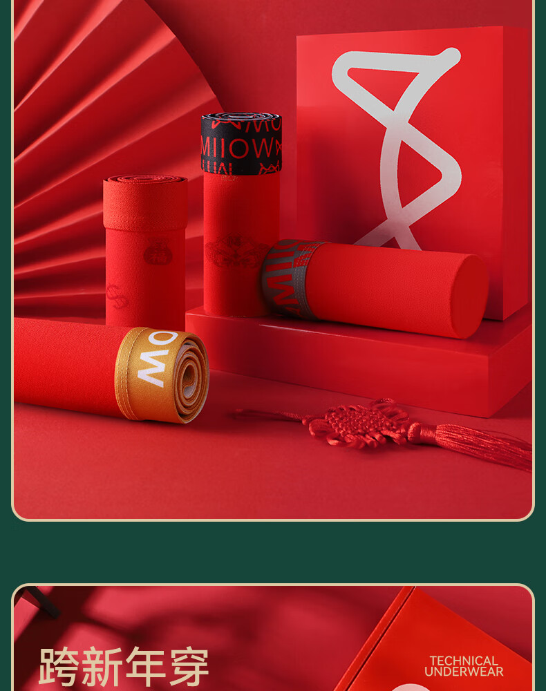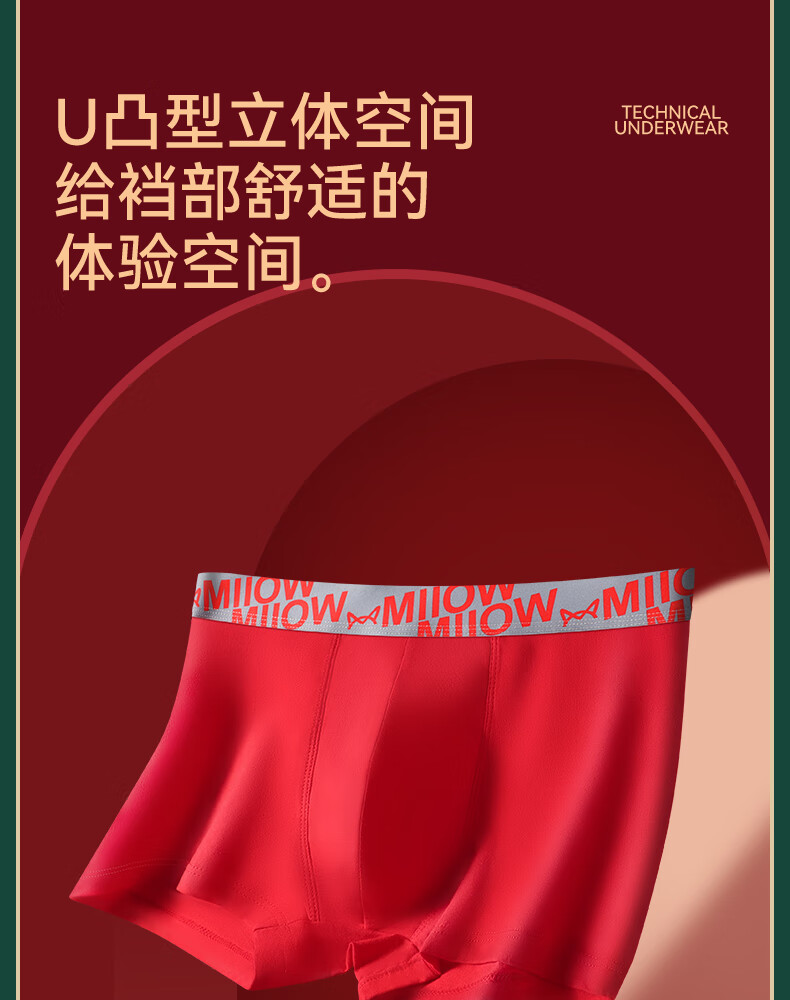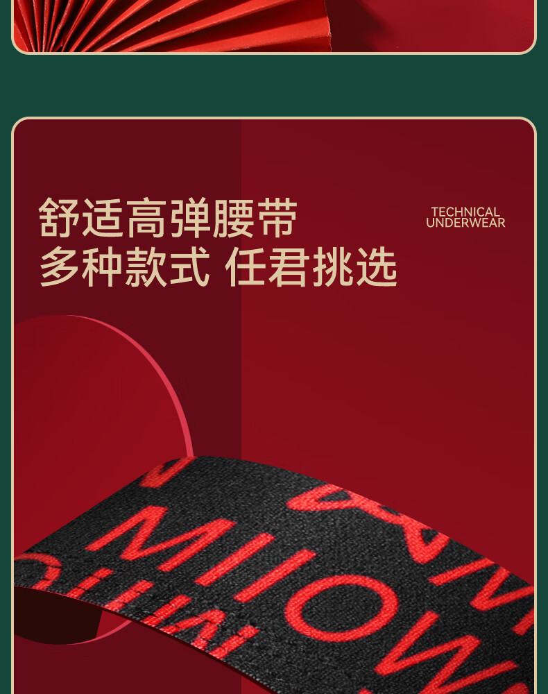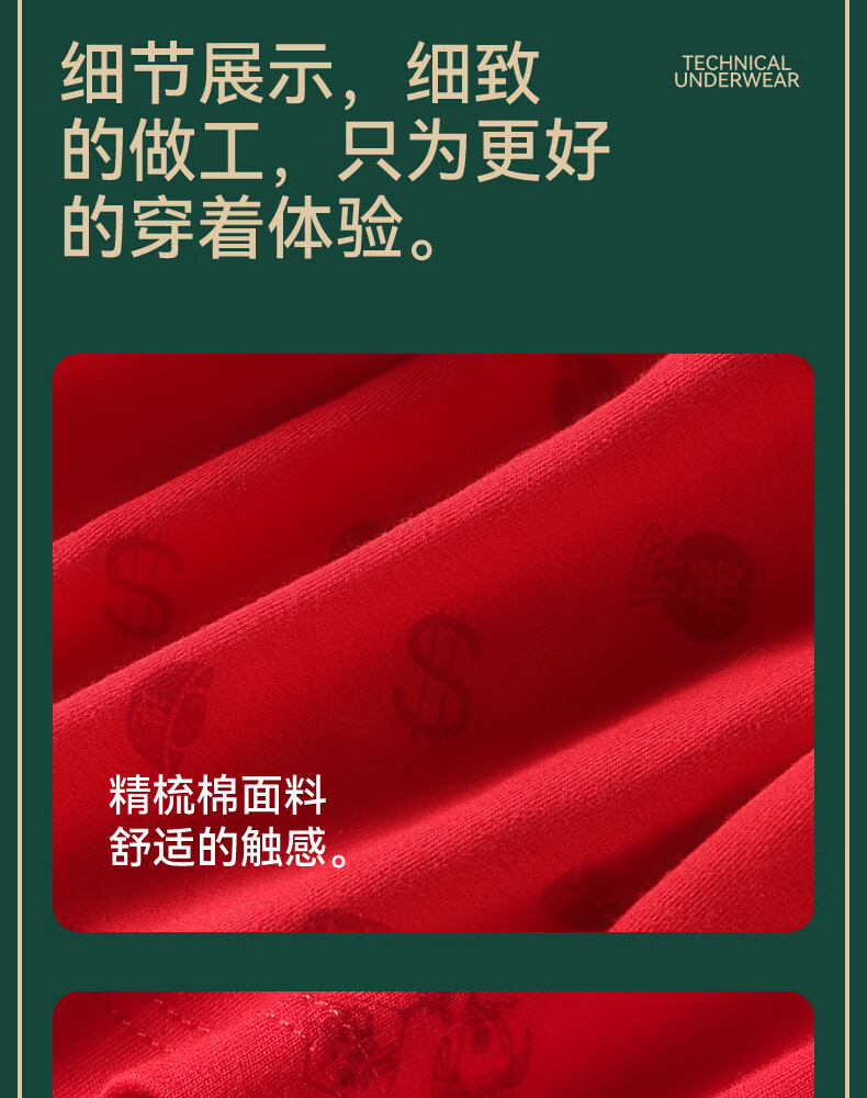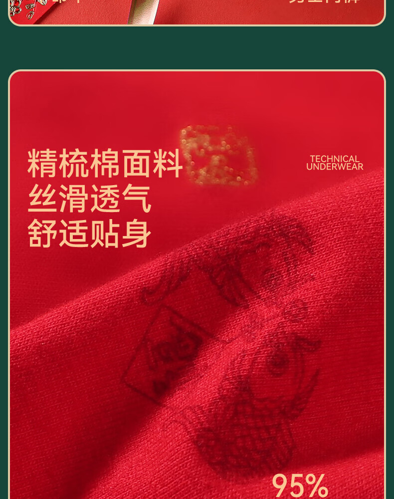 猫人男士内裤本命年新款纯棉中老年红色抑菌新年爸爸底裤短裤 净色/印花/黑巾/两双大红袜【3条装+2双袜子】 2XL 【推荐125-140斤】