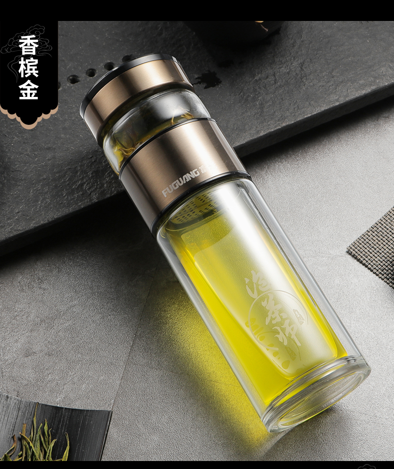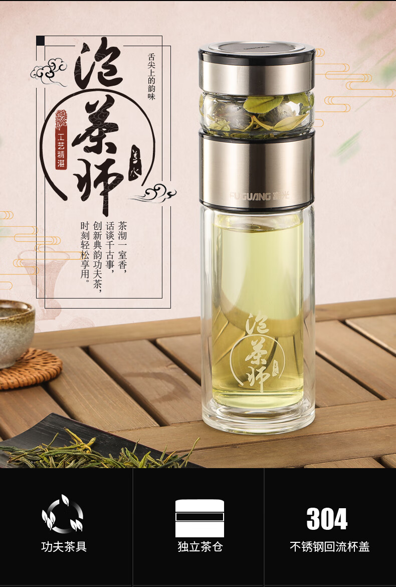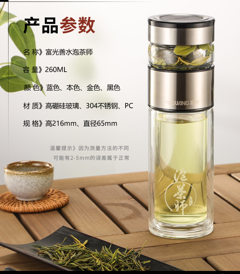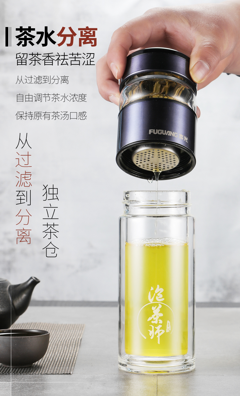 富光 玻璃杯 茶水分离杯 260ml男女泡茶便携水杯花茶杯过滤随手杯 蓝色260ml