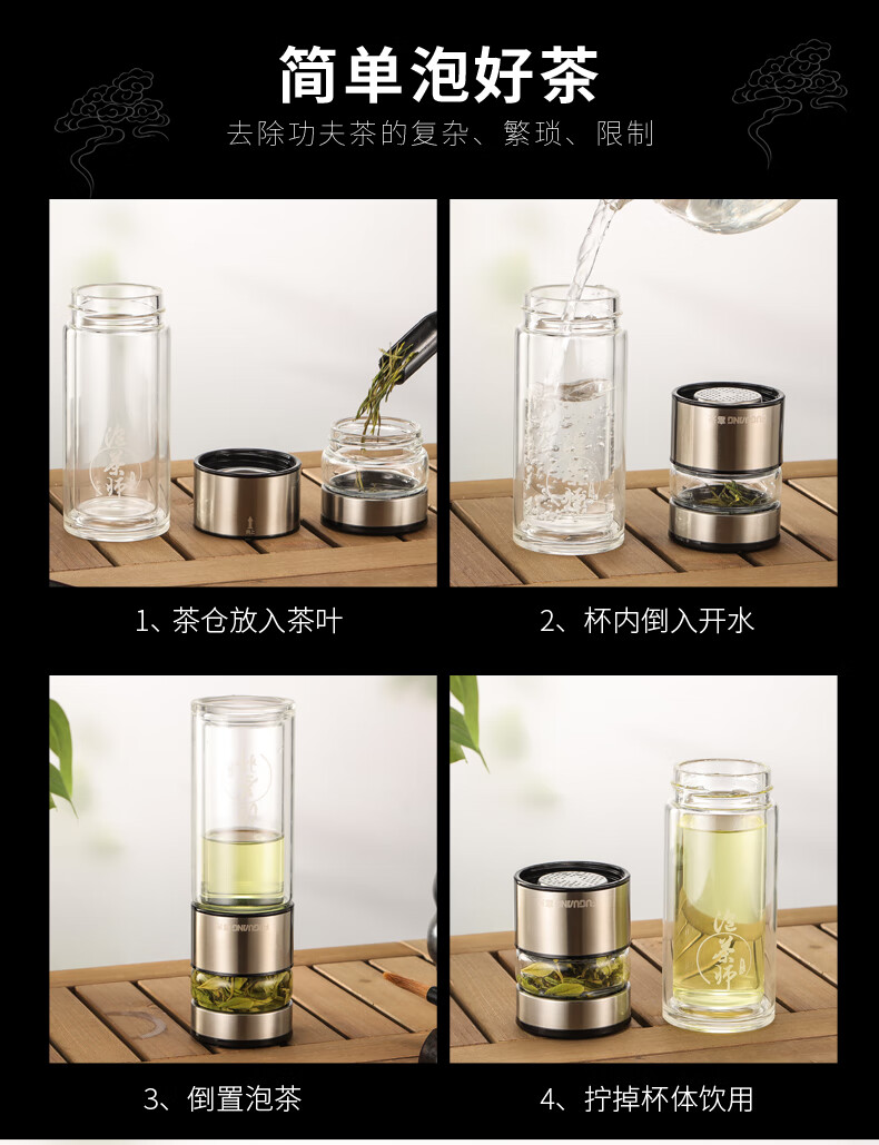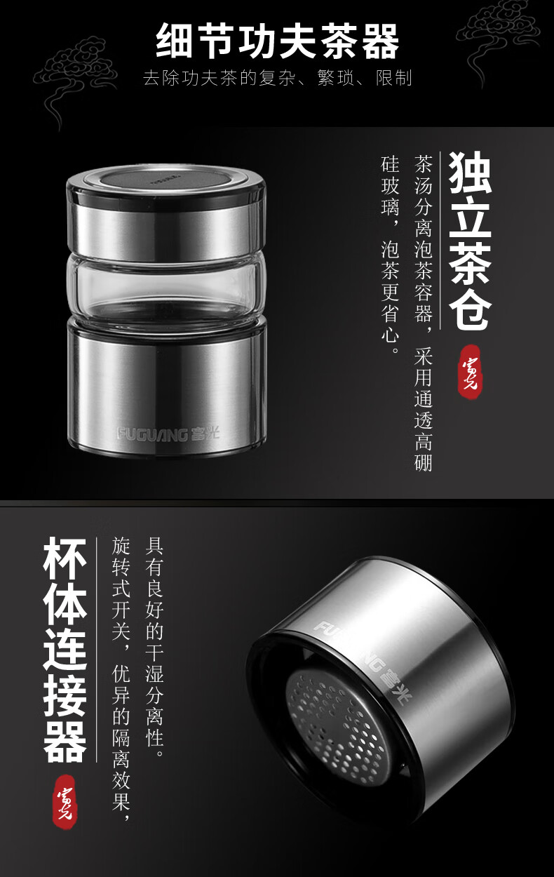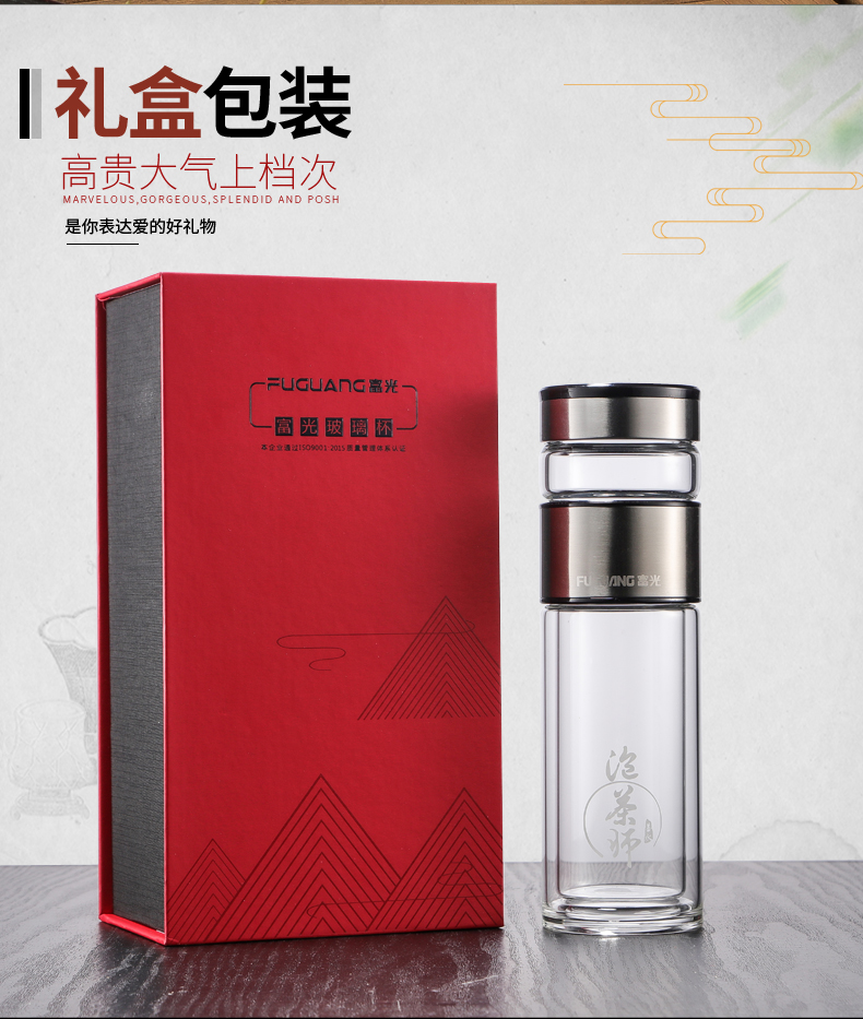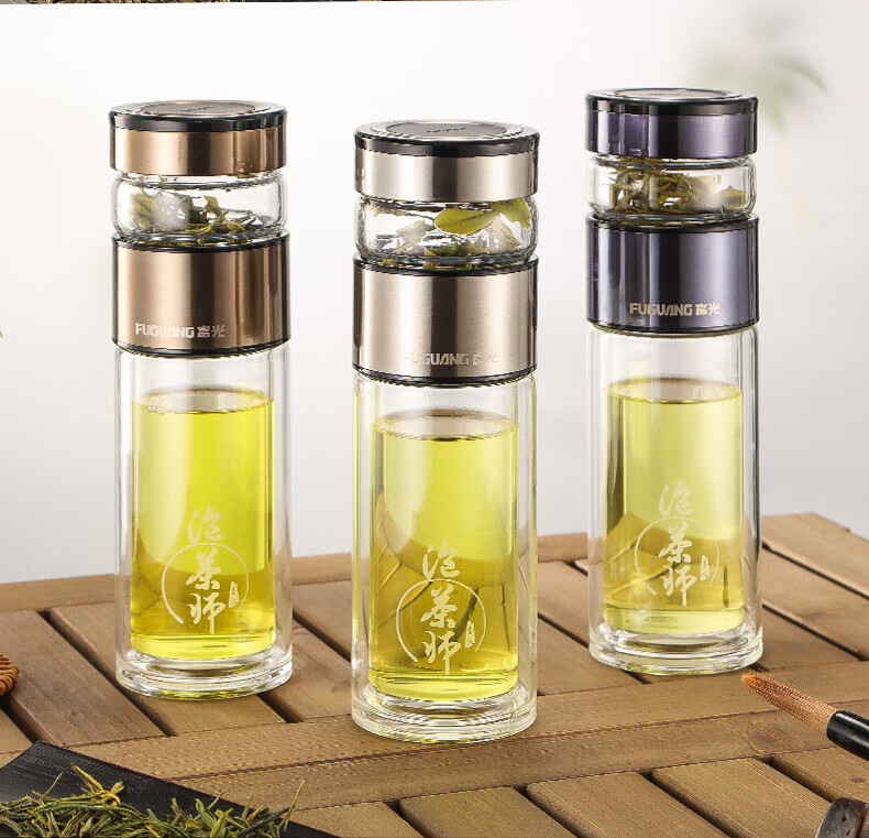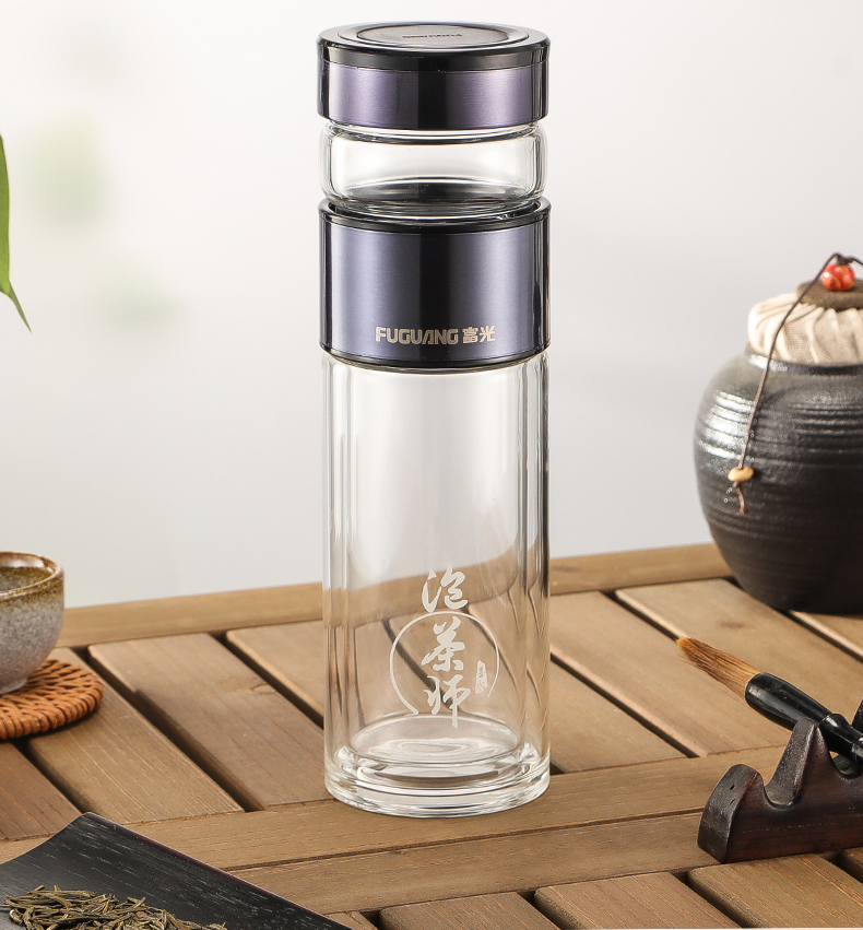 富光 玻璃杯 茶水分离杯 260ml男女泡茶便携水杯花茶杯过滤随手杯 蓝色260ml