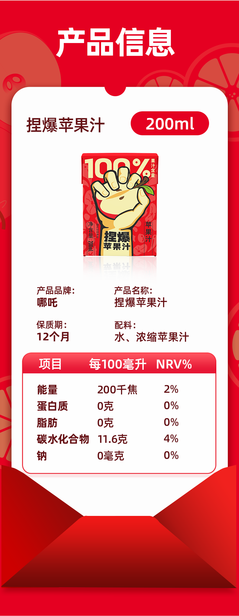 哪吒100%苹果甜橙青提雪梨蜜桃西梅椰子水早餐年货送礼盒维C饮料品 甜橙蜜桃苹果青提4口味各3盒共12盒 哪吒捏爆果汁