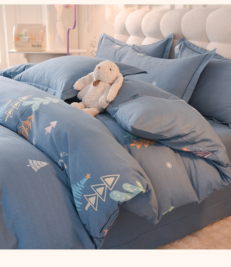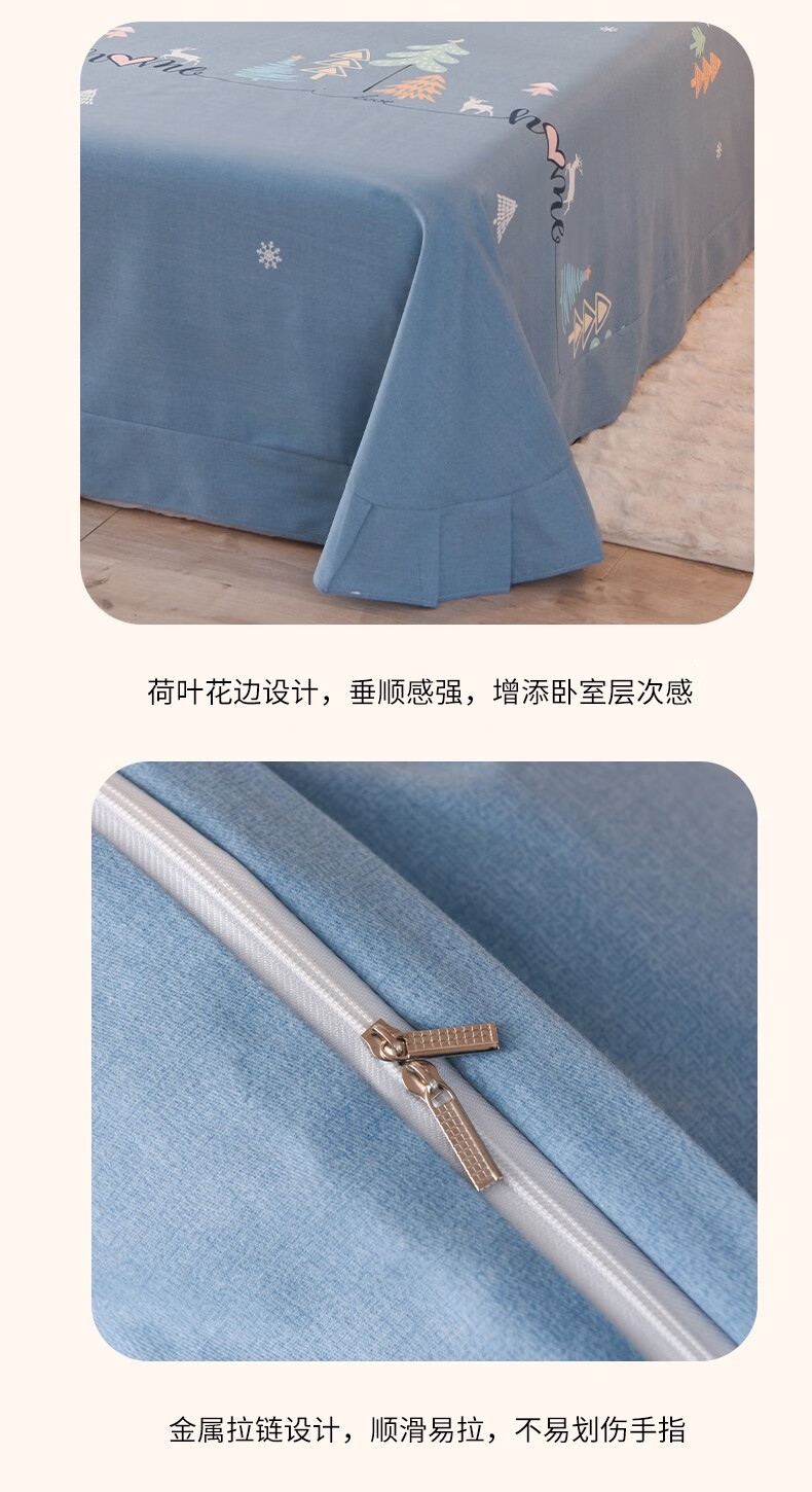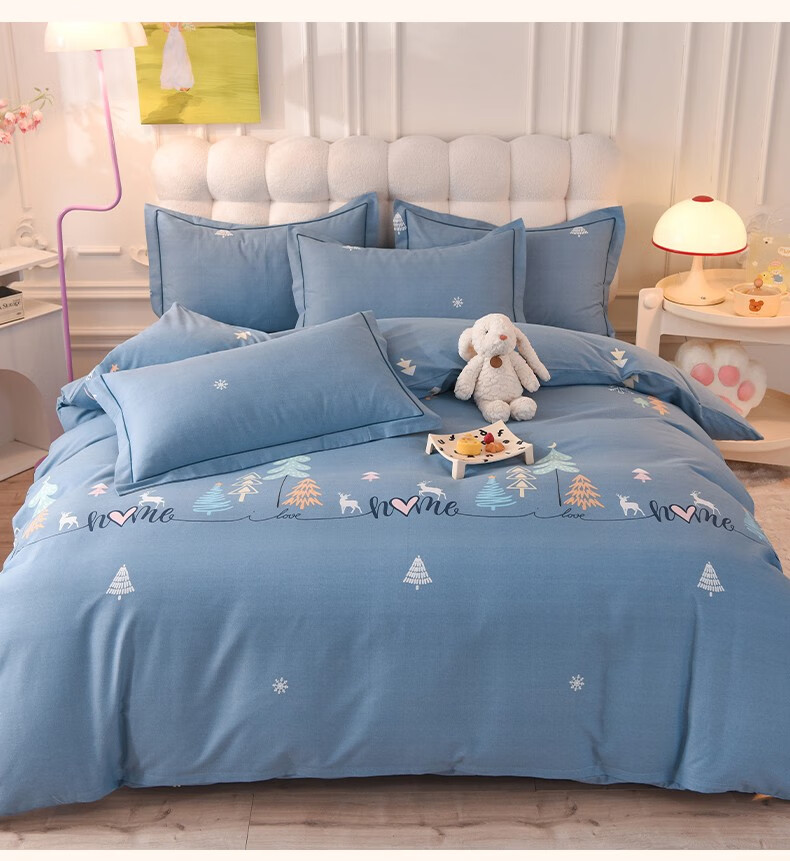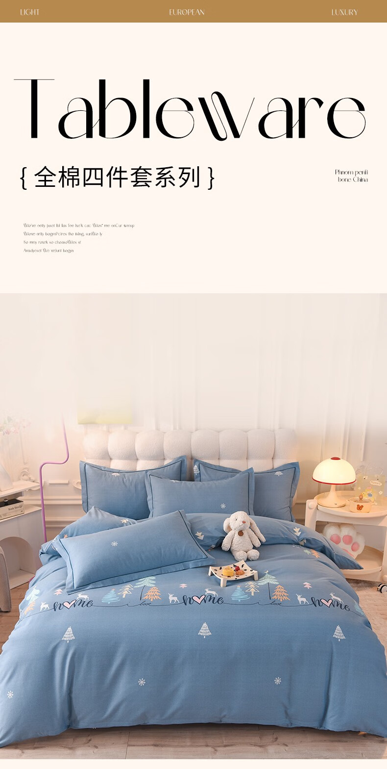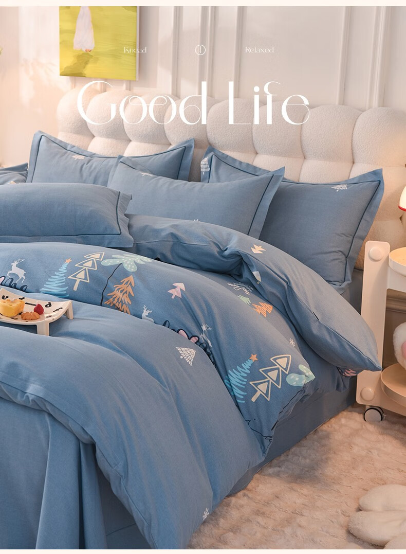 静之翔纯棉磨毛加厚床上四件套100全棉夏季宿舍床单被套双人秋冬被罩 小资生活-蓝 1.8m床四件套 床单款 被套200*230cm