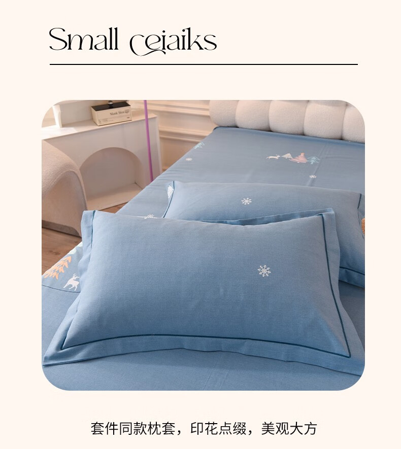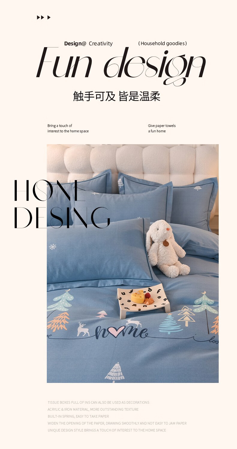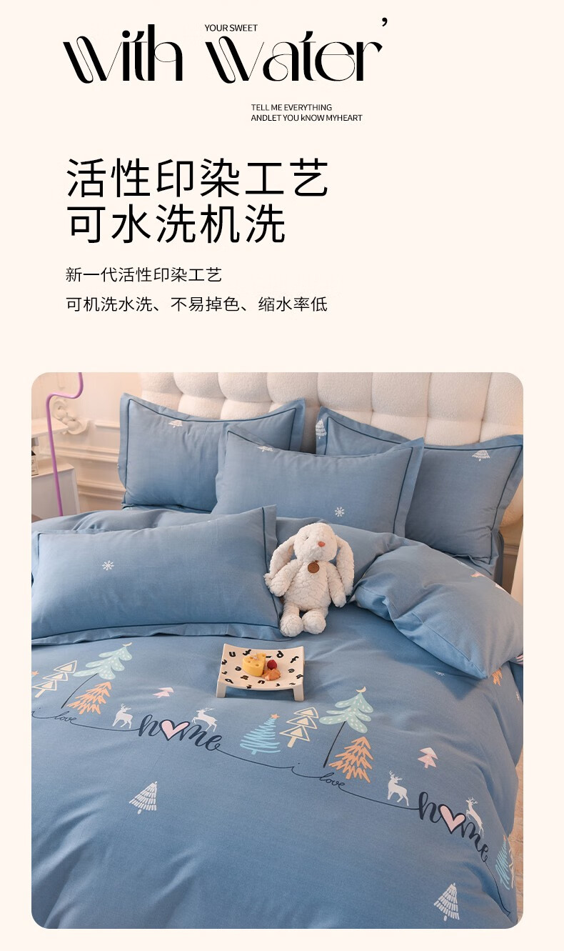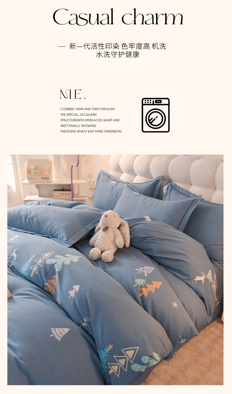 静之翔纯棉磨毛加厚床上四件套100全棉夏季宿舍床单被套双人秋冬被罩 小资生活-蓝 1.8m床四件套 床单款 被套200*230cm