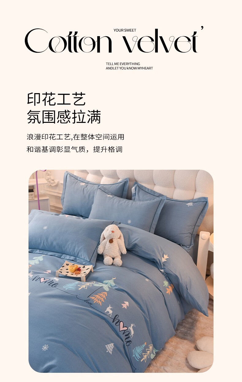 多喜爱家纺牛奶绒四件套 加厚保暖暖暖绒防静电秋冬套件绒床单被套 繁星入梦 1.5m 床单款 四件套被套203*229cm