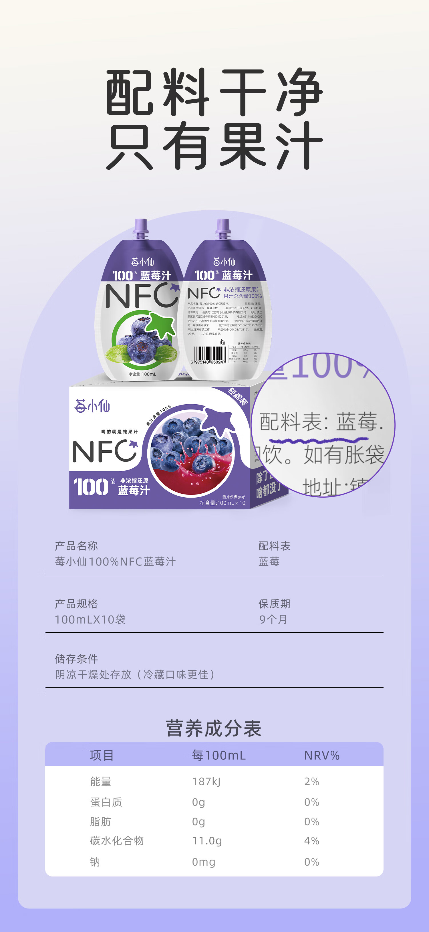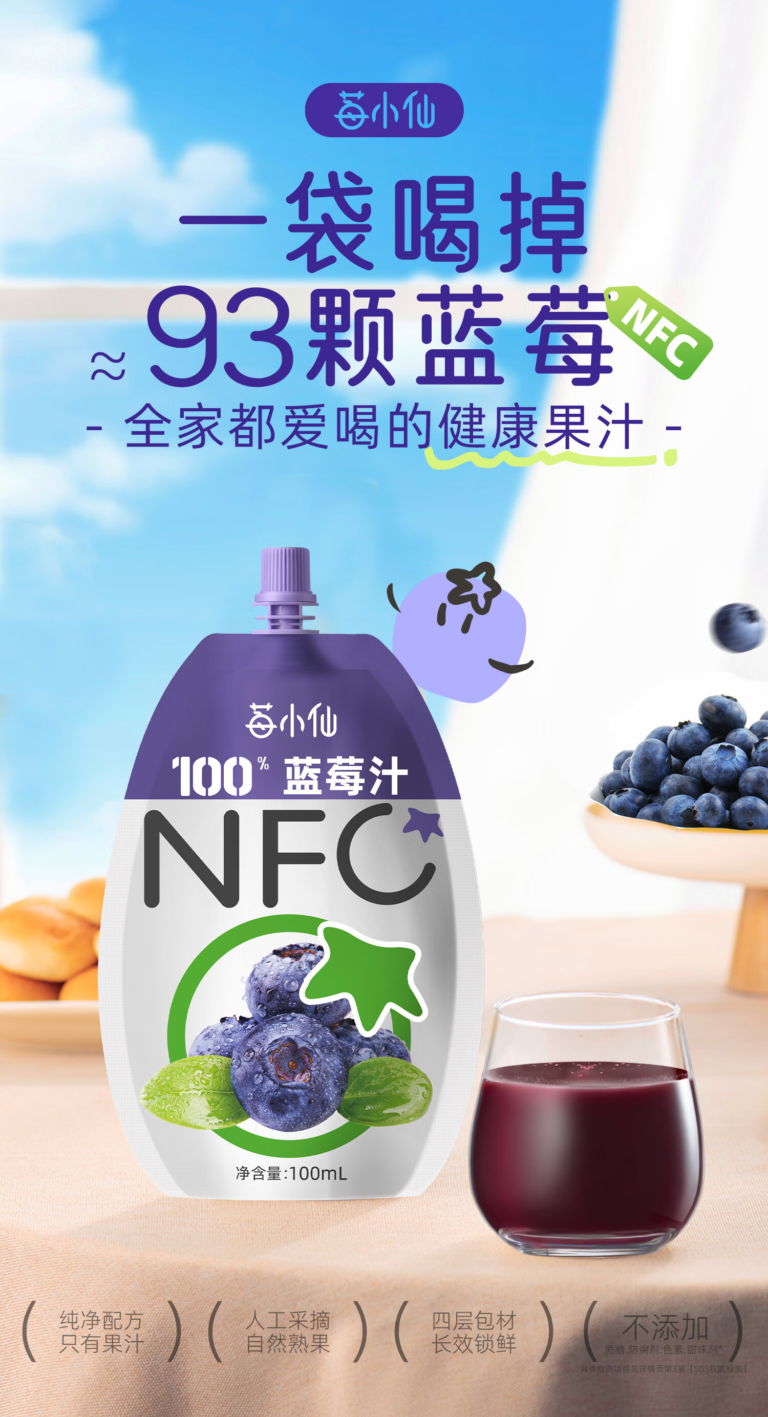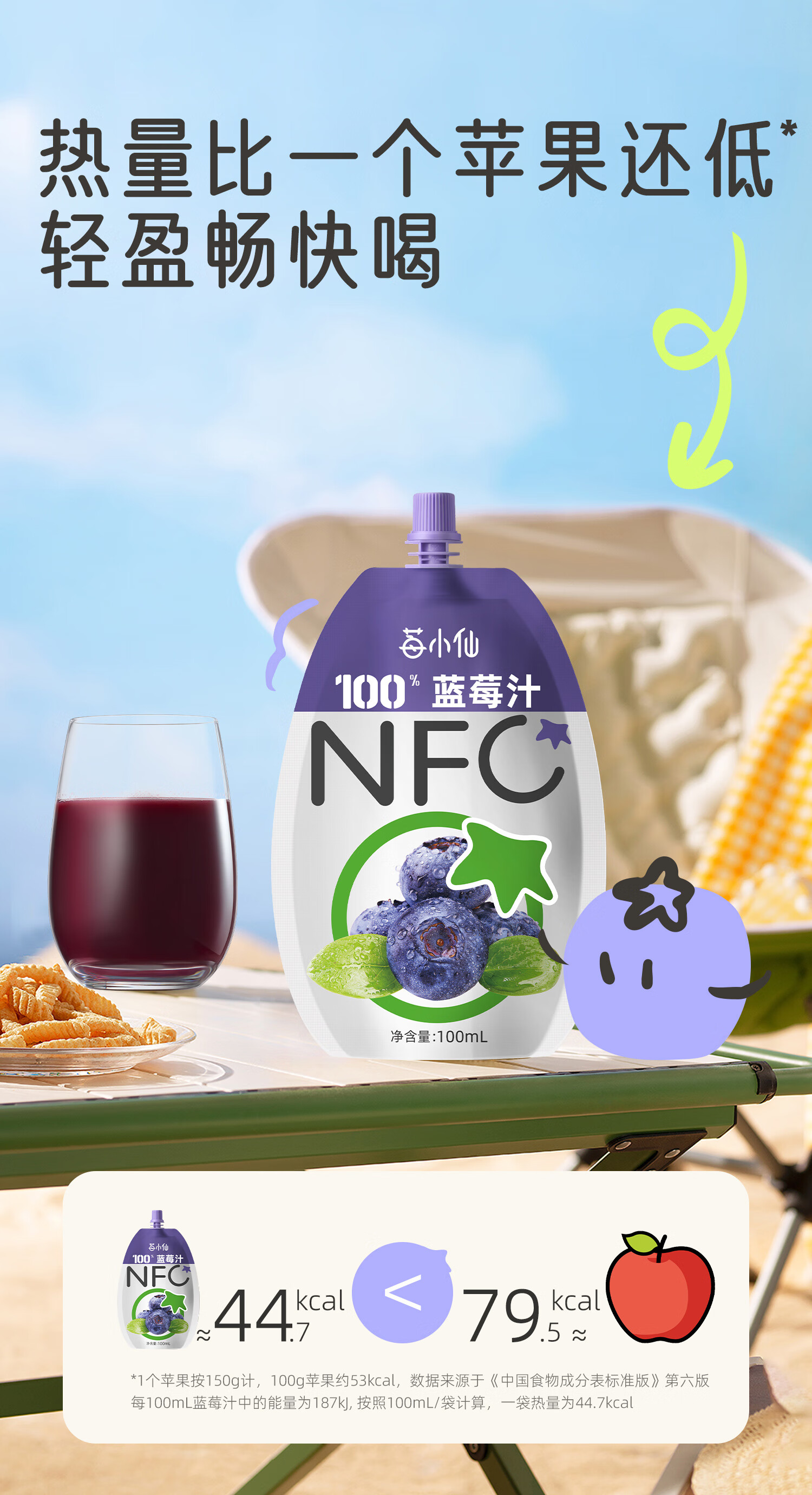 莓小仙NFC蓝莓汁100%纯果汁0脂0添加蔗糖花青素饮料无添加蓝莓原汁100ml 【2盒装】20袋+赠3袋