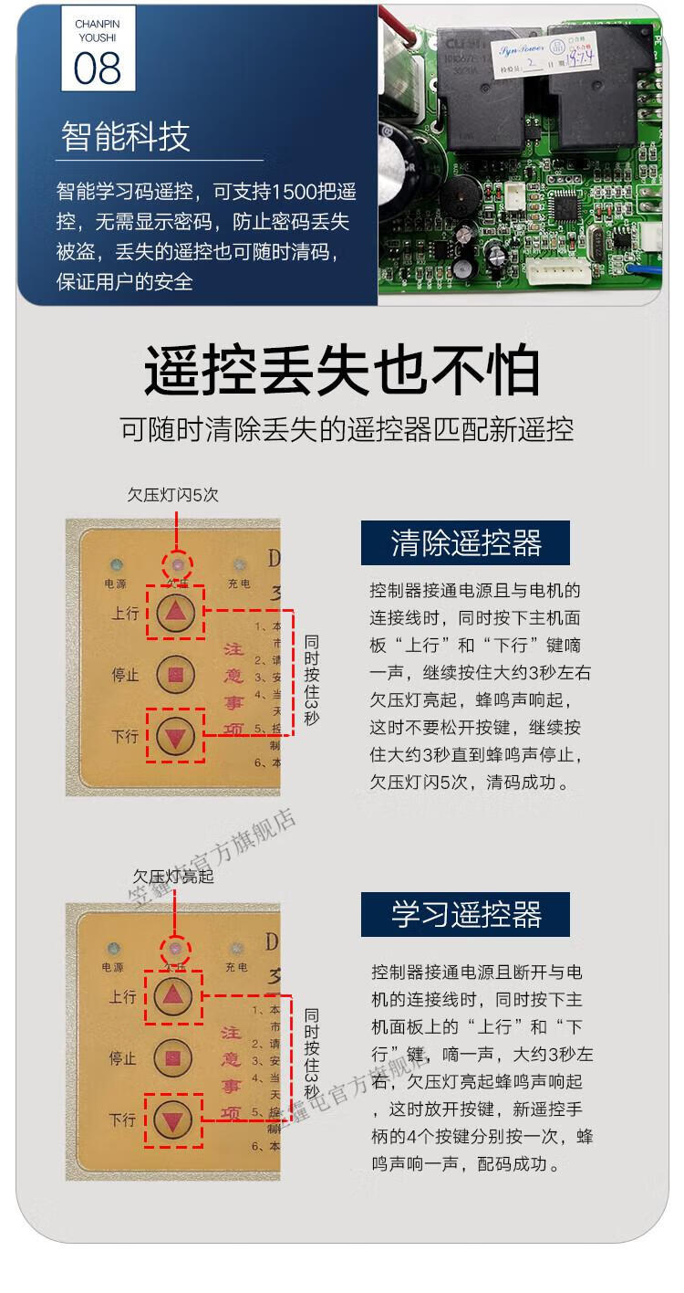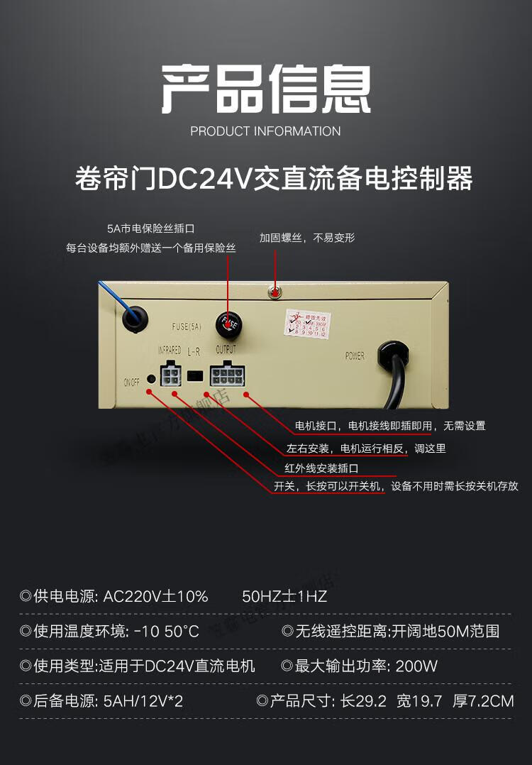 笠霾屯DC24V电动卷帘门直流电机开关控制器卷闸门车库门遥控器储备电源 升级款带蓄电池含3个金属遥控器