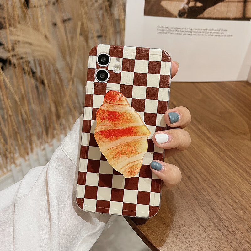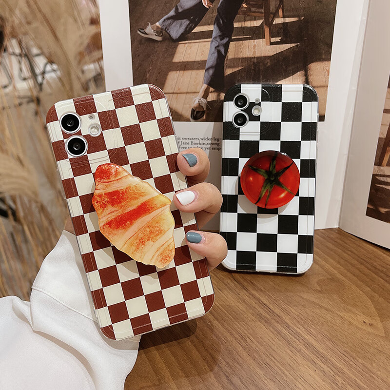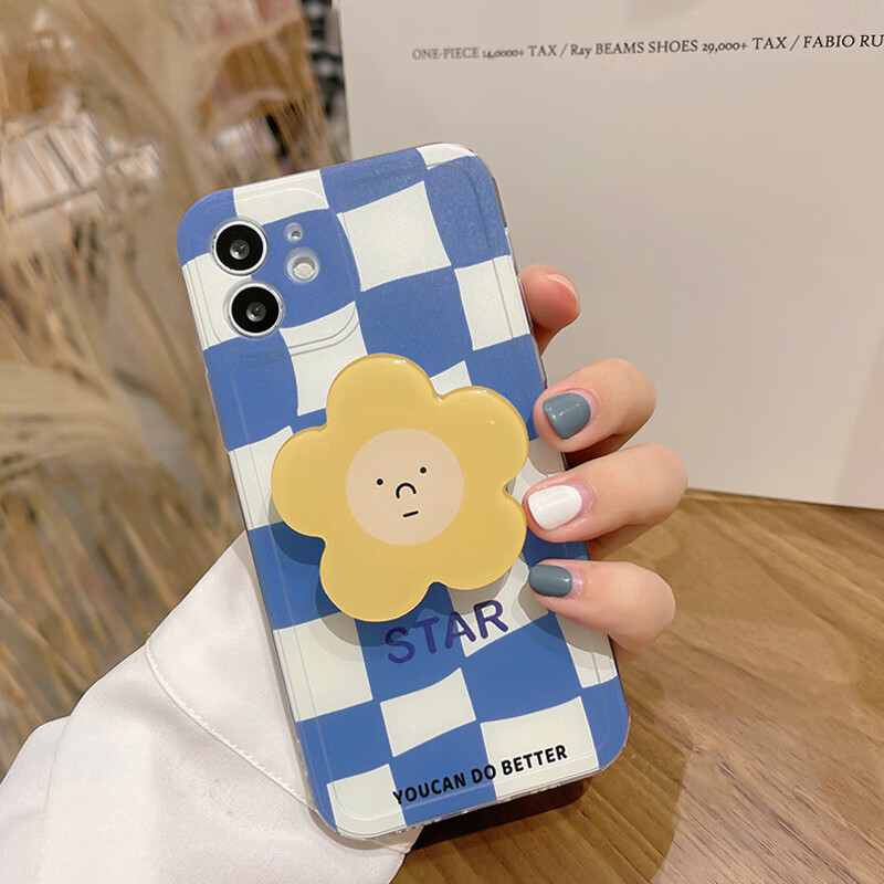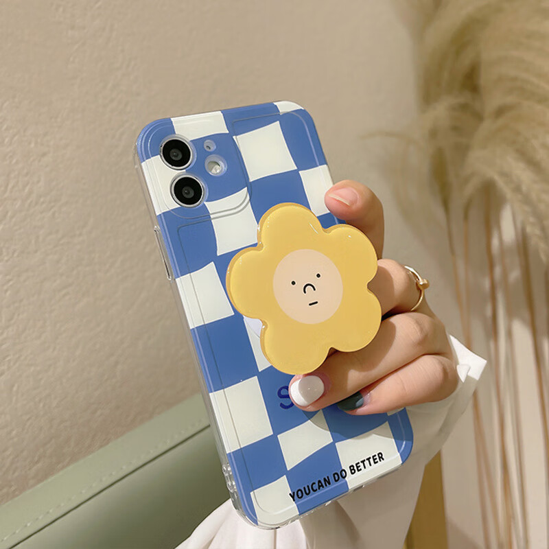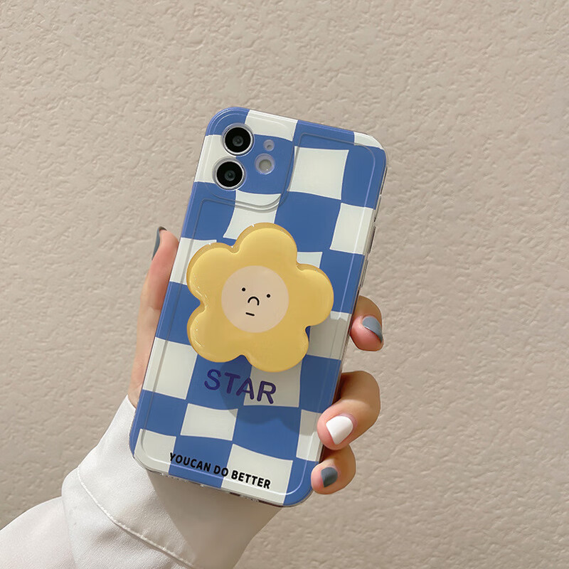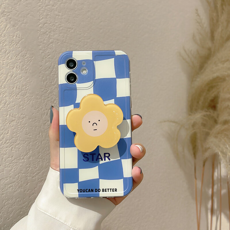 【实用】蓝棋盘花朵支架15ProMax苹果16手机壳iphone套XS14适用8 蓝棋盘+太阳花支架 16promax