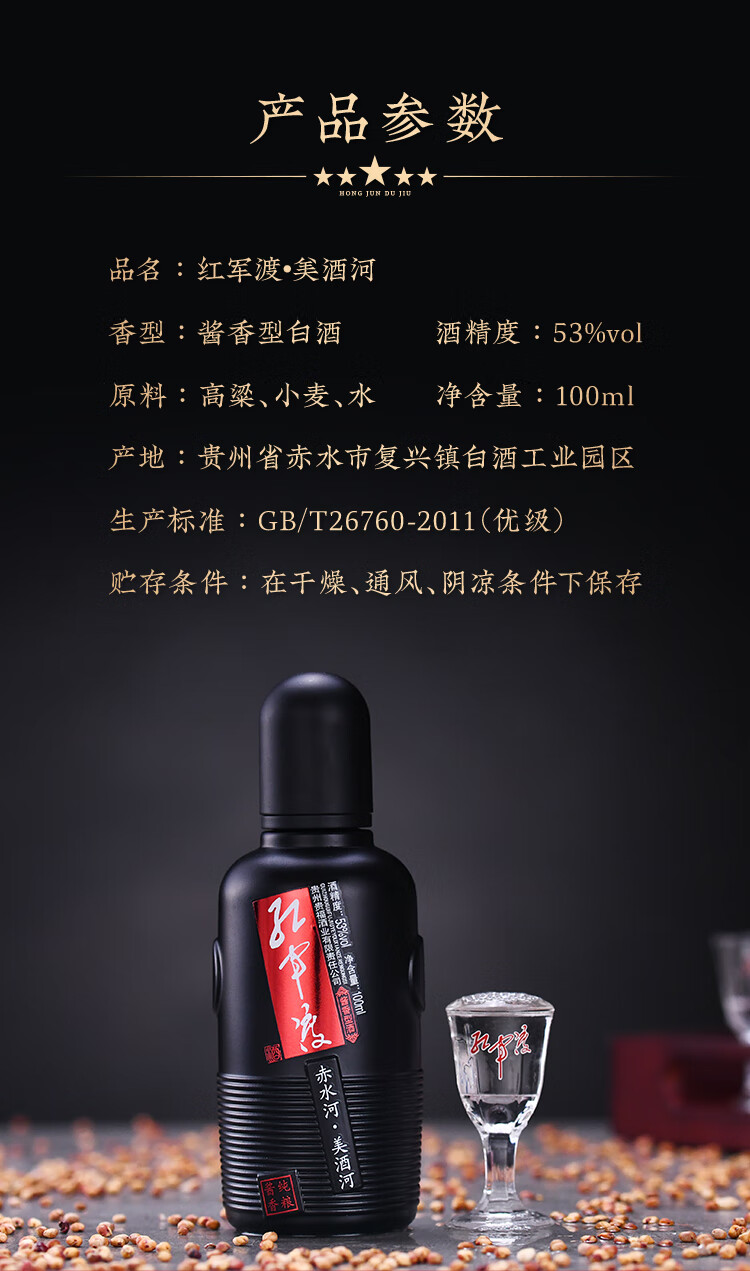 红军渡美酒河品鉴装贵州酱香型白酒53度纯粮酿造大曲老酒自饮口粮小酒 53%vol 100mL 6瓶 100ml