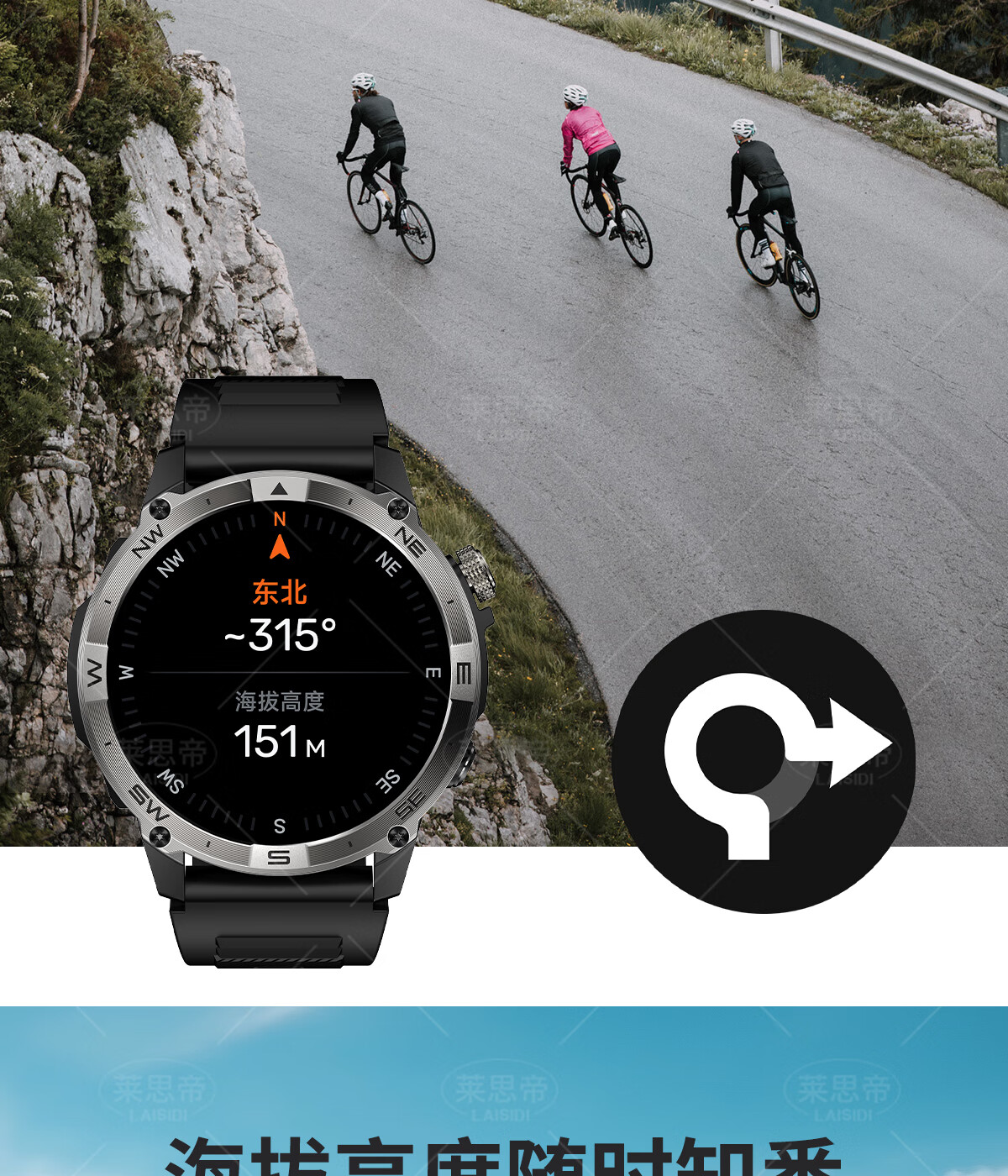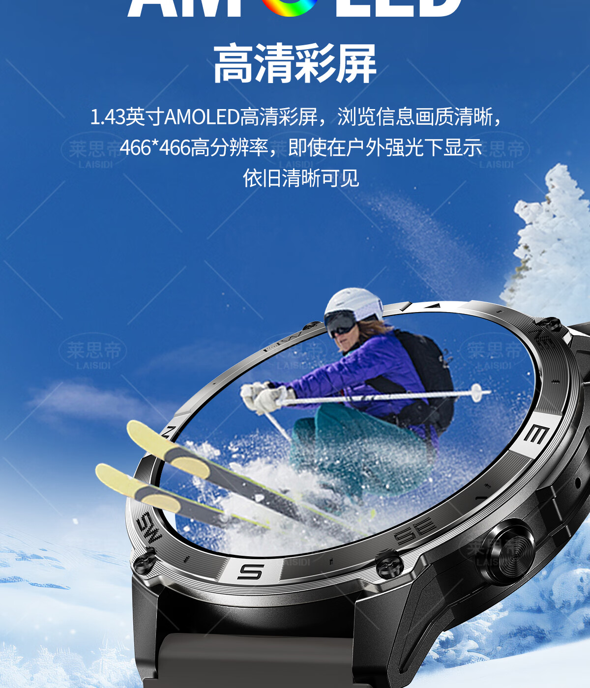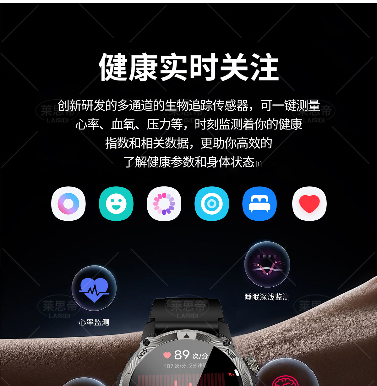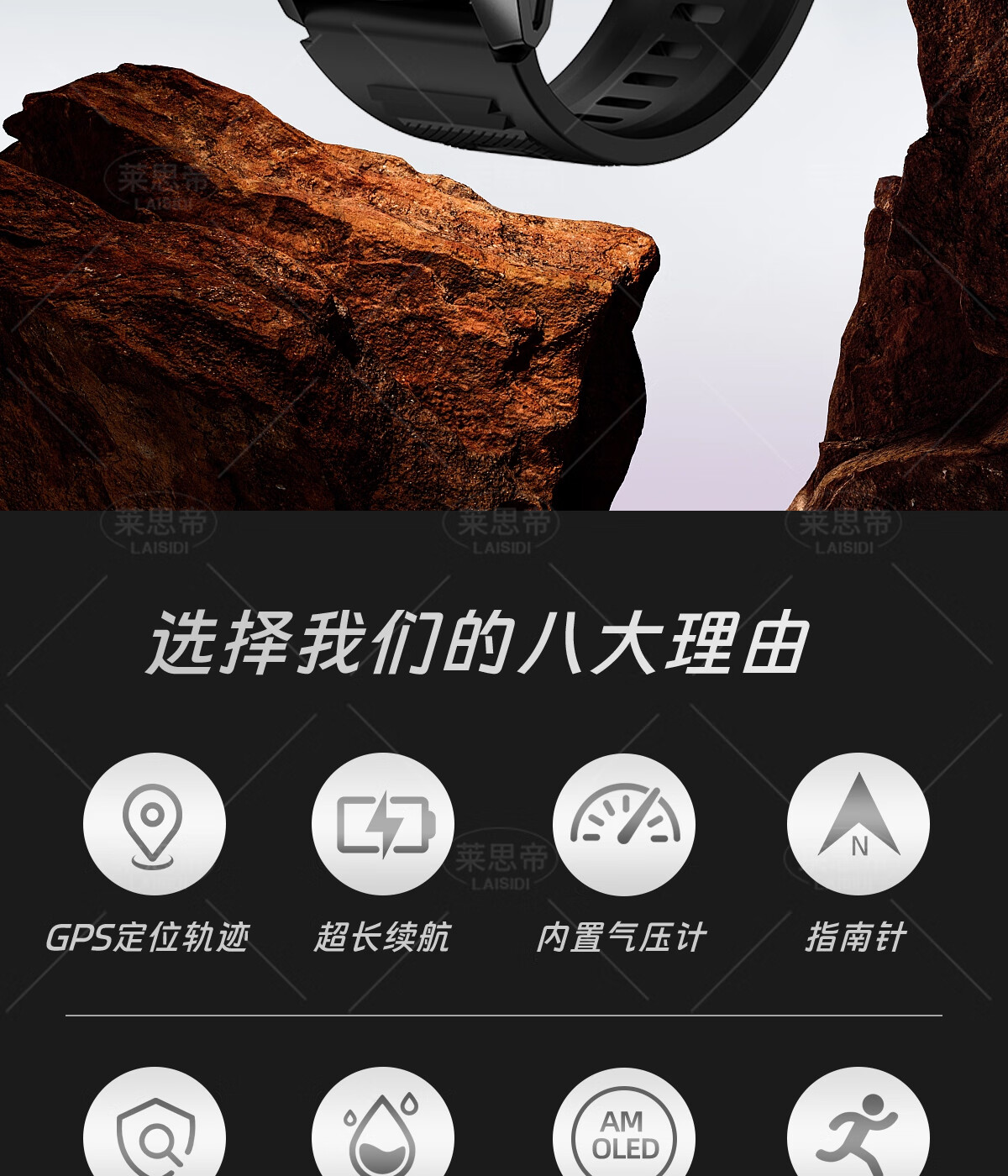 莱思帝运动手表智能马拉松专业GPS定位轨迹跑步心率配速海拔气压指南针血氧睡眠监测防水长续航消息提醒 高贵黑